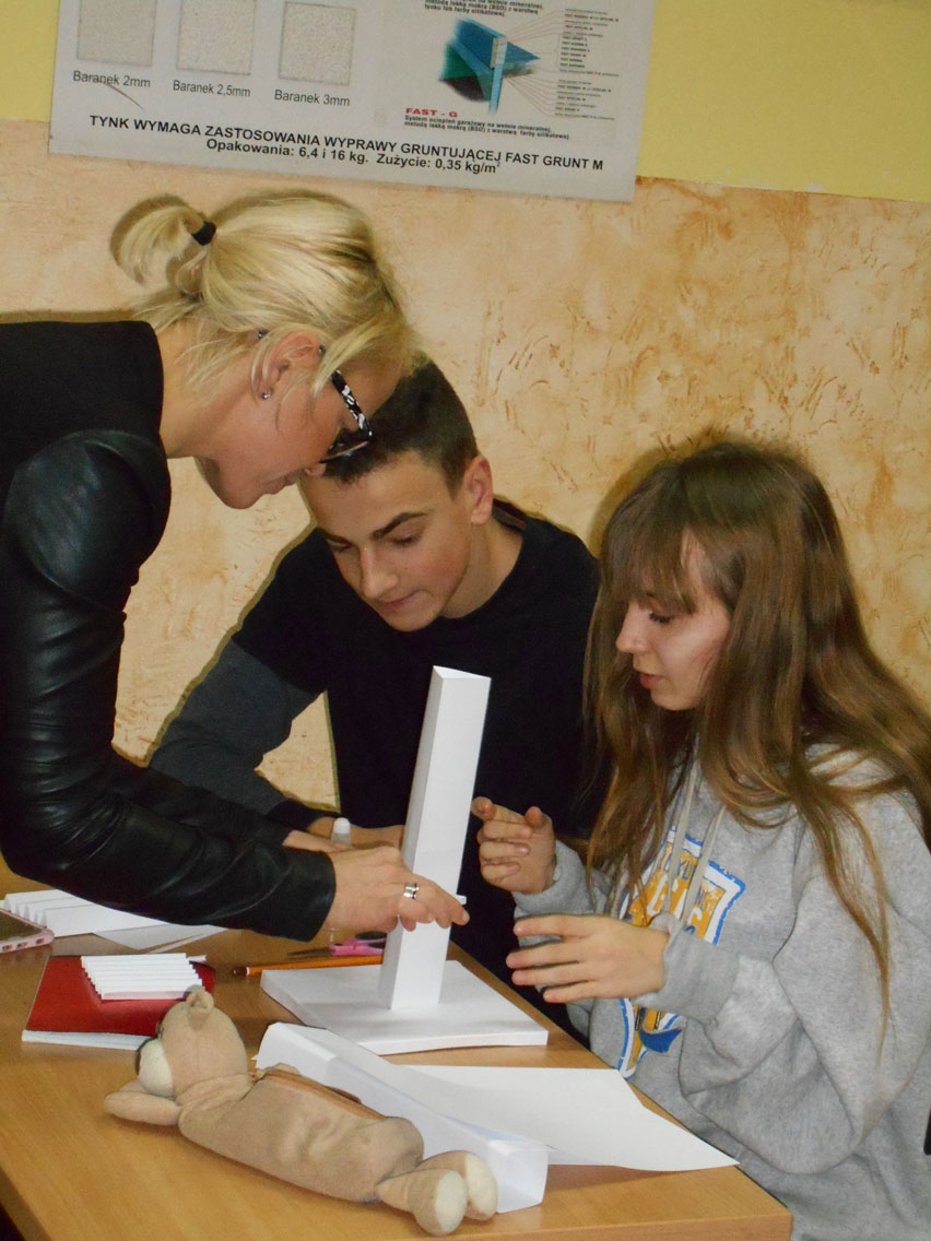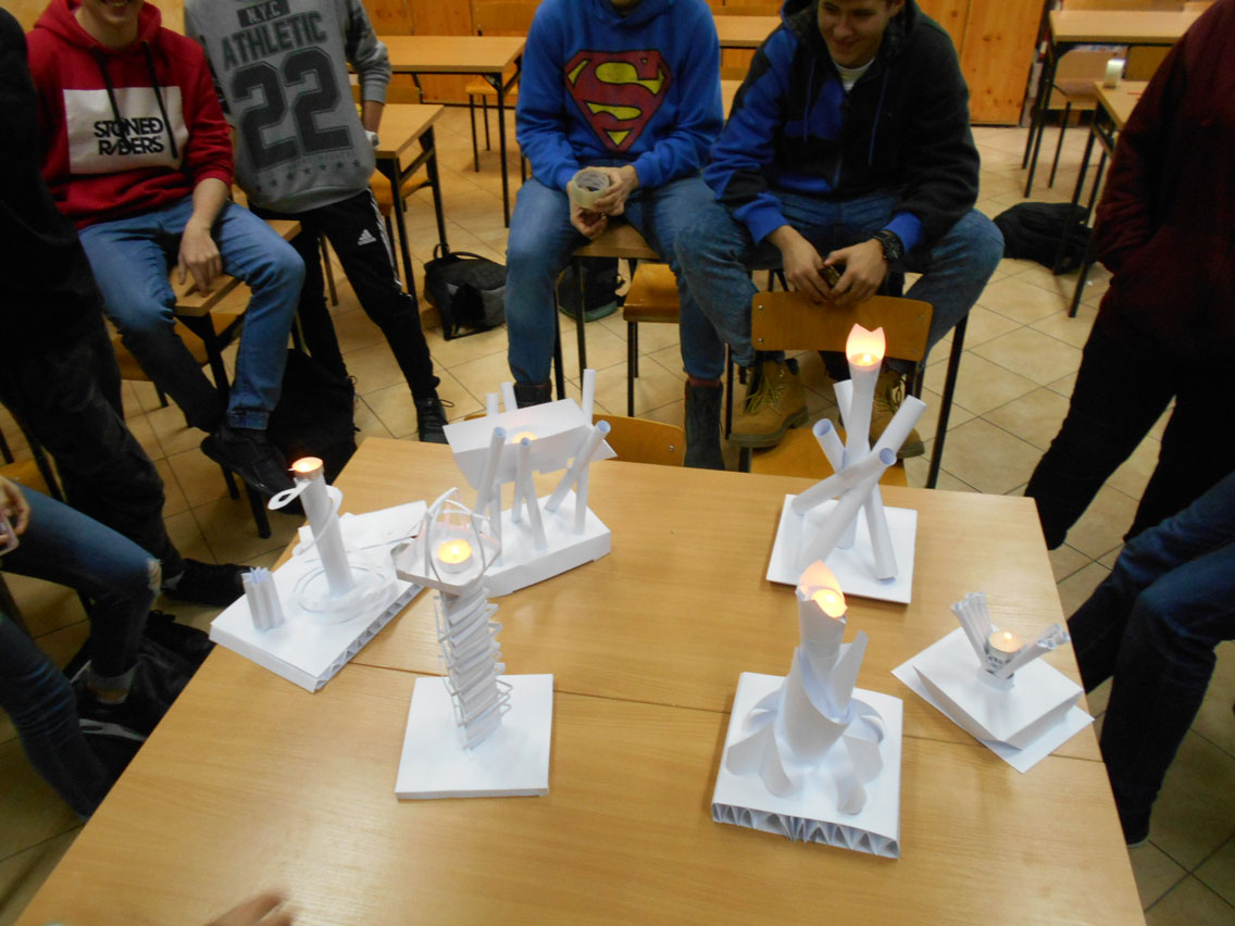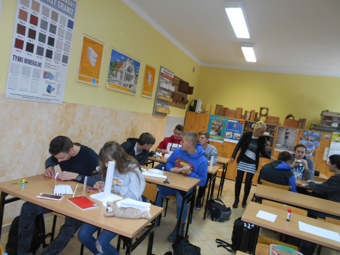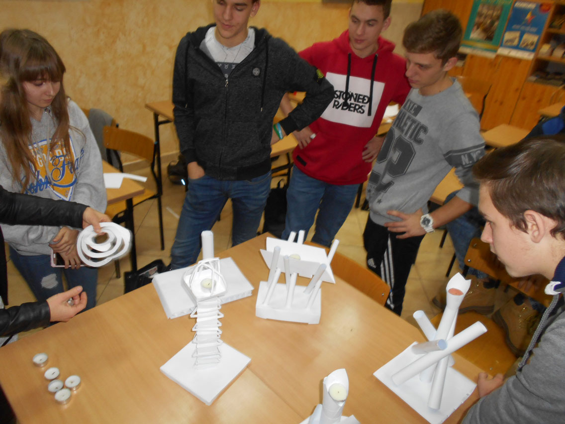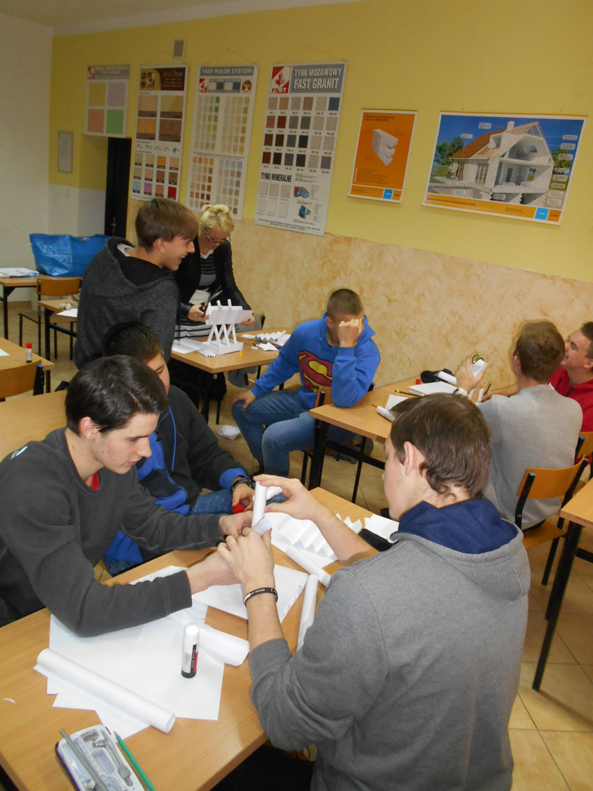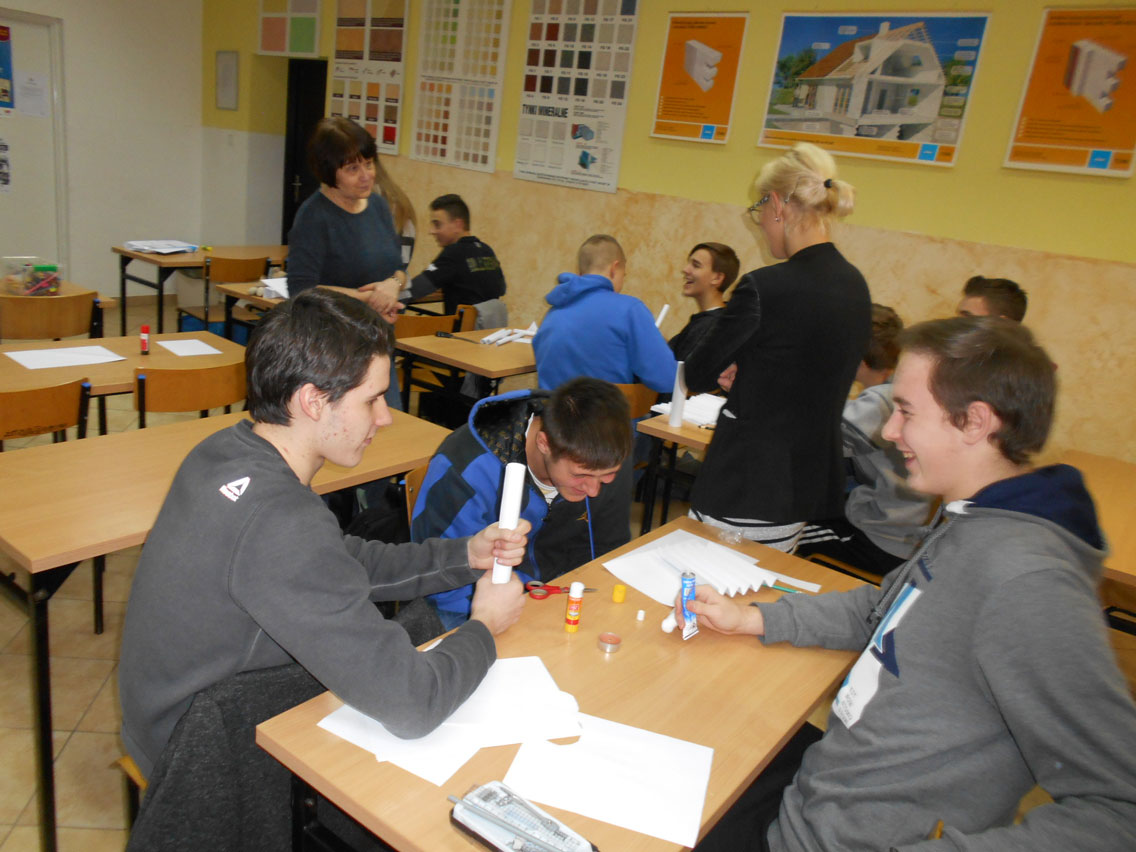 Zazwyczaj materiał konstrukcyjny kojarzy się nam z kamieniem, drewnem czy betonem. Tym razem w ramach warsztatów prowadzonych przez wykładowcę Wyższej Szkoły Technicznej 4 grudnia 2017 r uczniowie klasy 1 A mieli możliwość przekonania się, że papier też może być materiałem konstrukcyjnym.