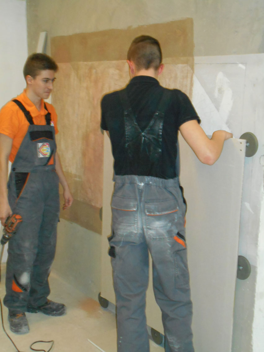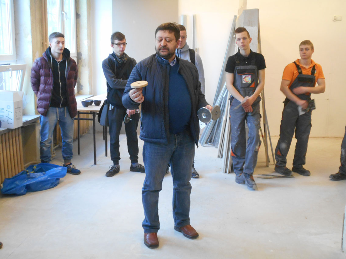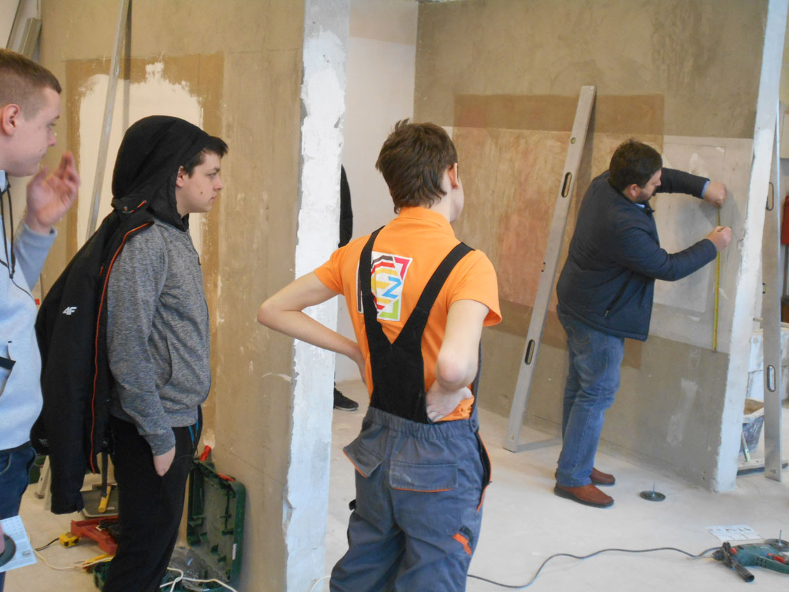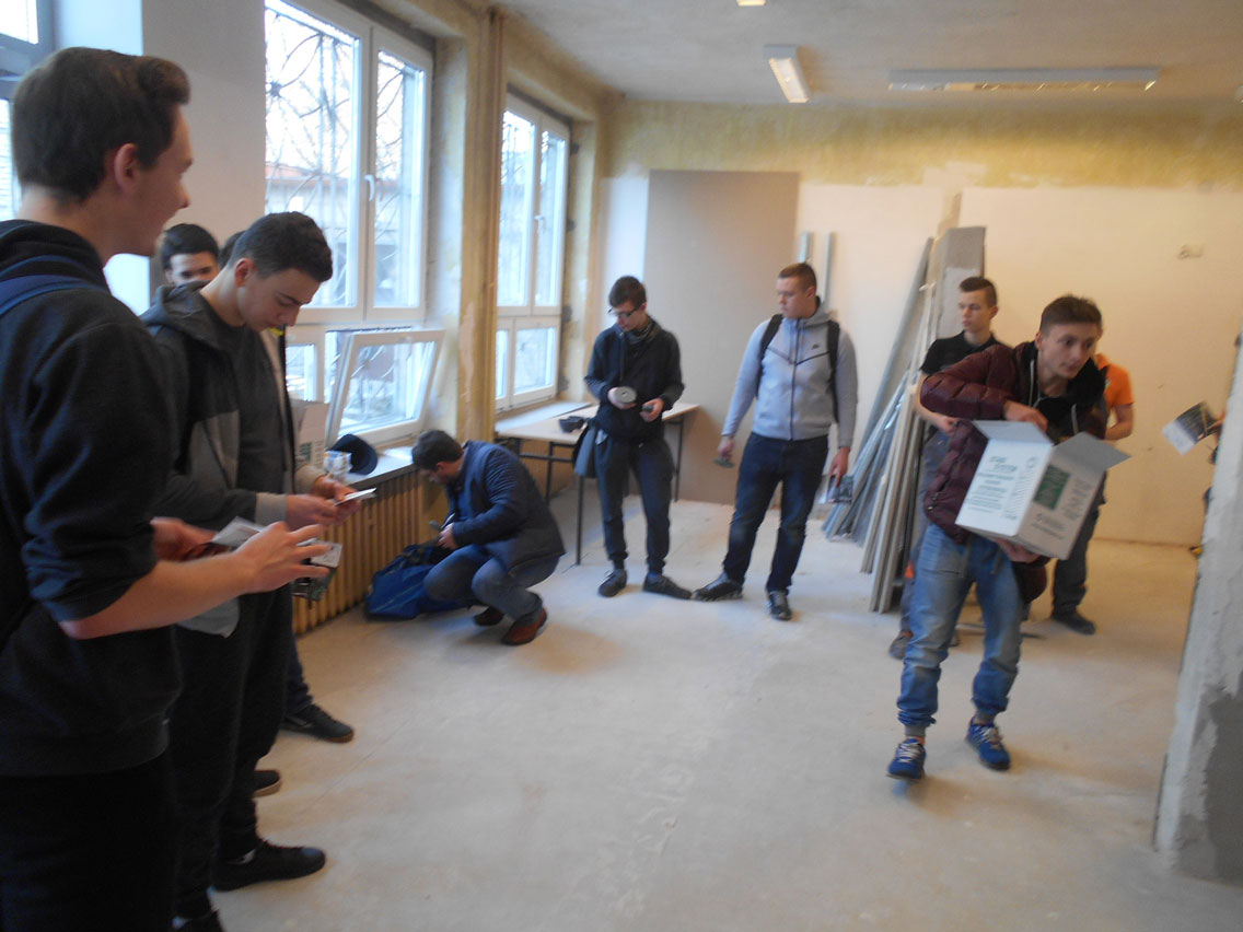 5.03.2018 r. w czasie Dnia Otwartego KCEZ odbyło się szkolenie dla klas budowlanych (1a BZIS, 2 a BZIS, 1 A) z innowacyjnego systemu montażu płyt gipsowo – kartonowych:
