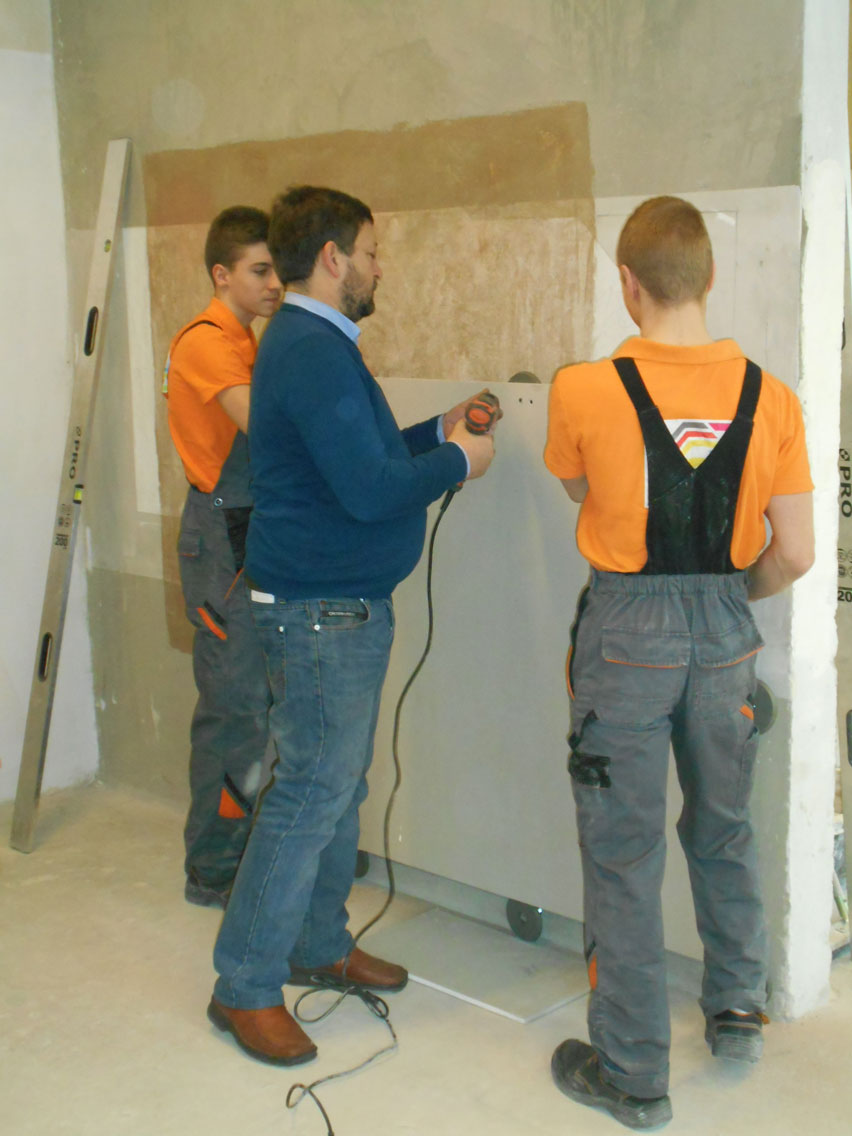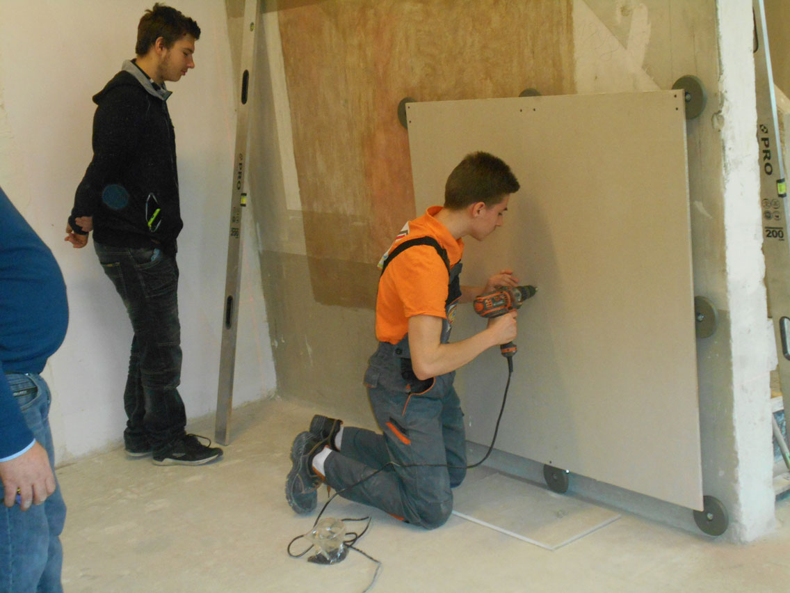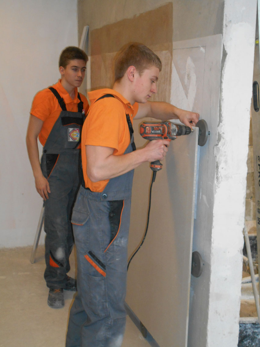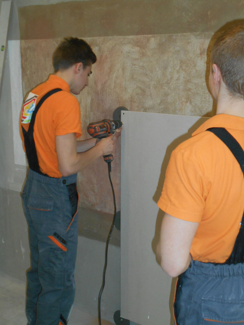 5.03.2018 r. w czasie Dnia Otwartego KCEZ odbyło się szkolenie dla klas budowlanych (1a BZIS, 2 a BZIS, 1 A) z innowacyjnego systemu montażu płyt gipsowo – kartonowych: