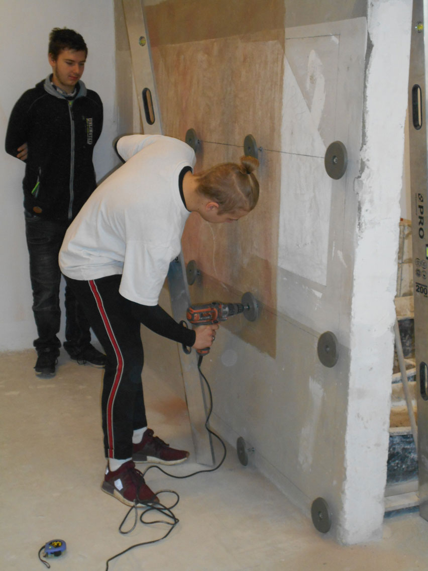 Zamontowana płyta jest w stanie przenieść znacznie większe obciążenia niż w tradycyjnych systemach montażu płyt g – k co sprawdziła uczennica z klasy 1 A uczestnicząca w szkoleniu. :)