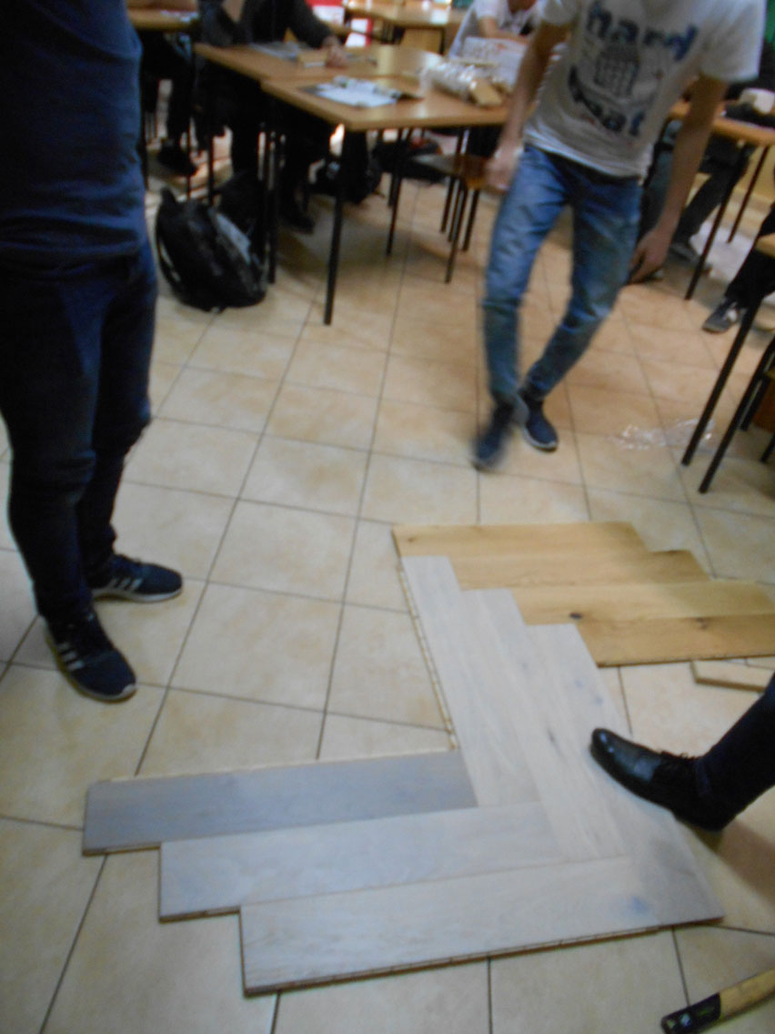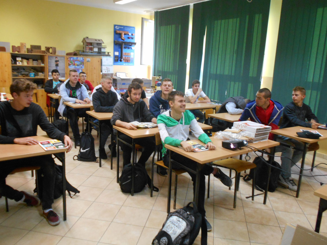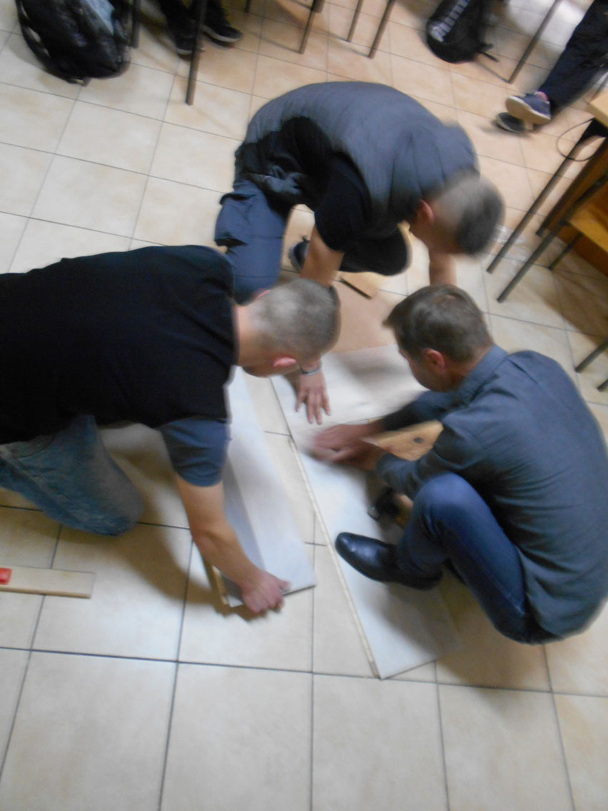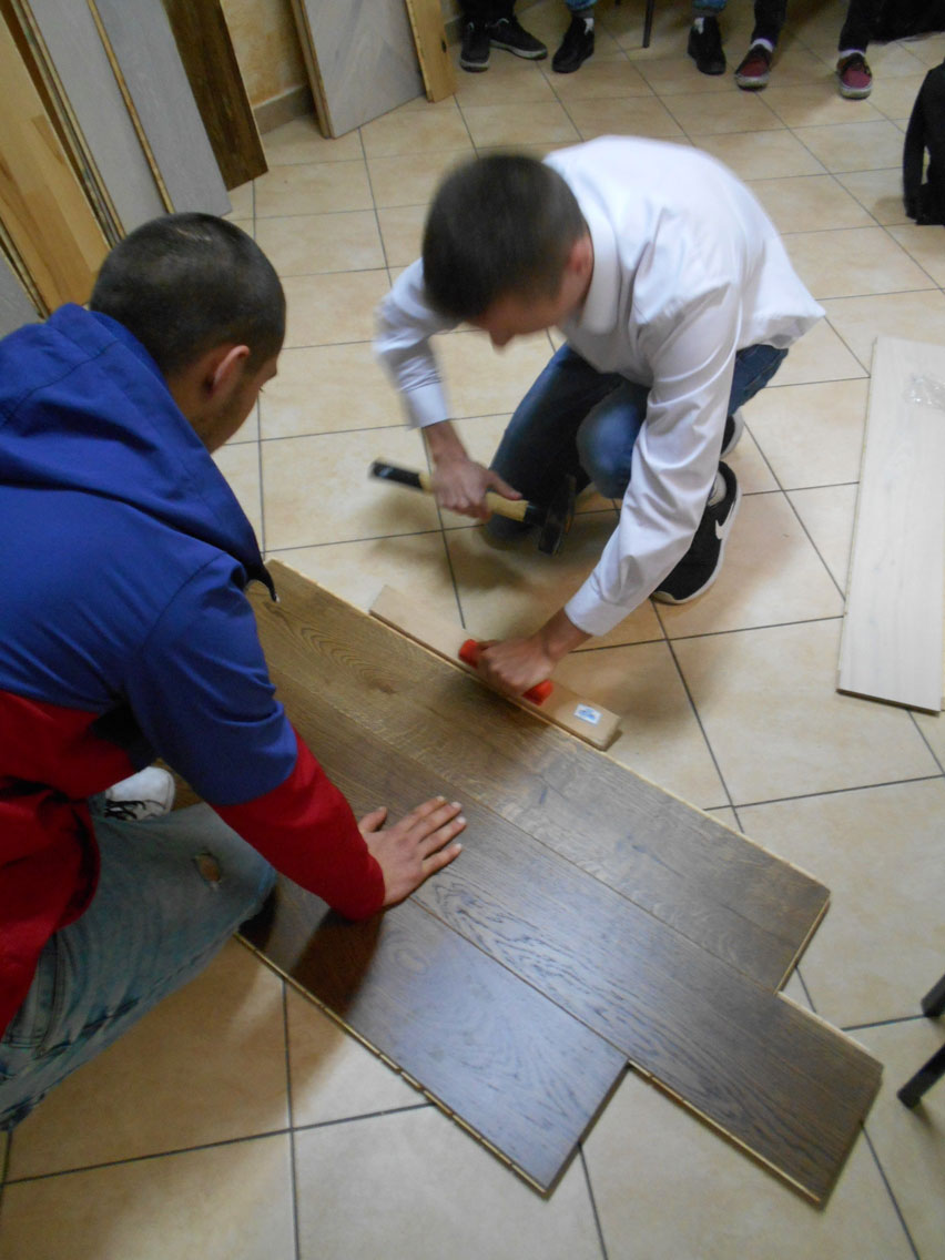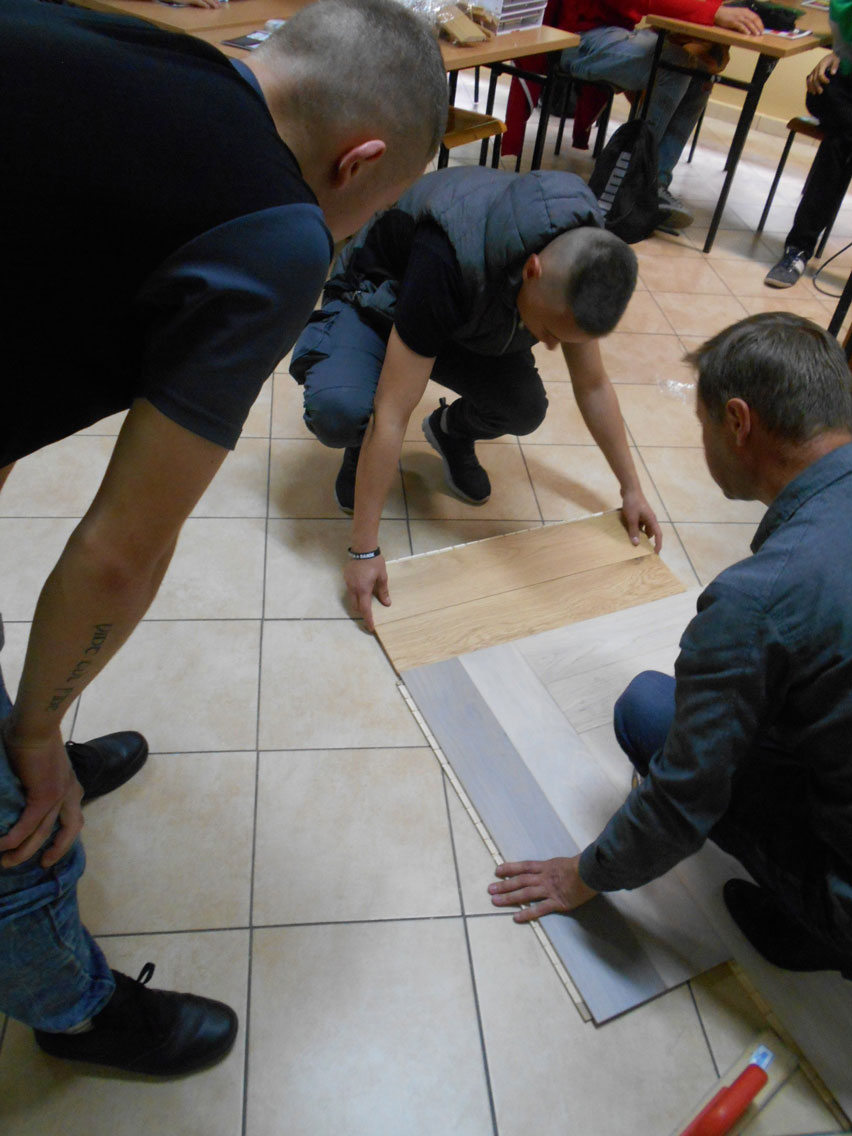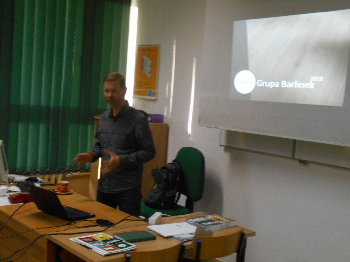 17 października 2018 r. uczniowie z klas 2 a i 3 a BZIS uczestniczyli w szkoleniu prowadzonym przez prelegenta z firmy Barlinek – największego producenta podłóg warstwowych w Europie. Szkolenie obejmowało część teoretyczną, w której uczniowie zostali zapoznani z historią firmy i jej rozwojem, rodzajami desek warstwowych i wykonywanych podłóg, a także część praktyczną, gdzie ochotnicy mogli spróbować swoich sił przy montażu fragmentów podłogi. Zaangażowanie przy słuchaniu i działaniu zostało nagrodzone firmowymi upominkami – czapkami, koszulkami i kubkami. Prelegent pozostawił także dla uczniów naszej szkoły przywiezione katalogi i deski warstwowe z różnych asortymentów. Będą one wykorzystane na zajęciach praktycznych w ramach przygotowań przed egzaminem. Dziękujemy.