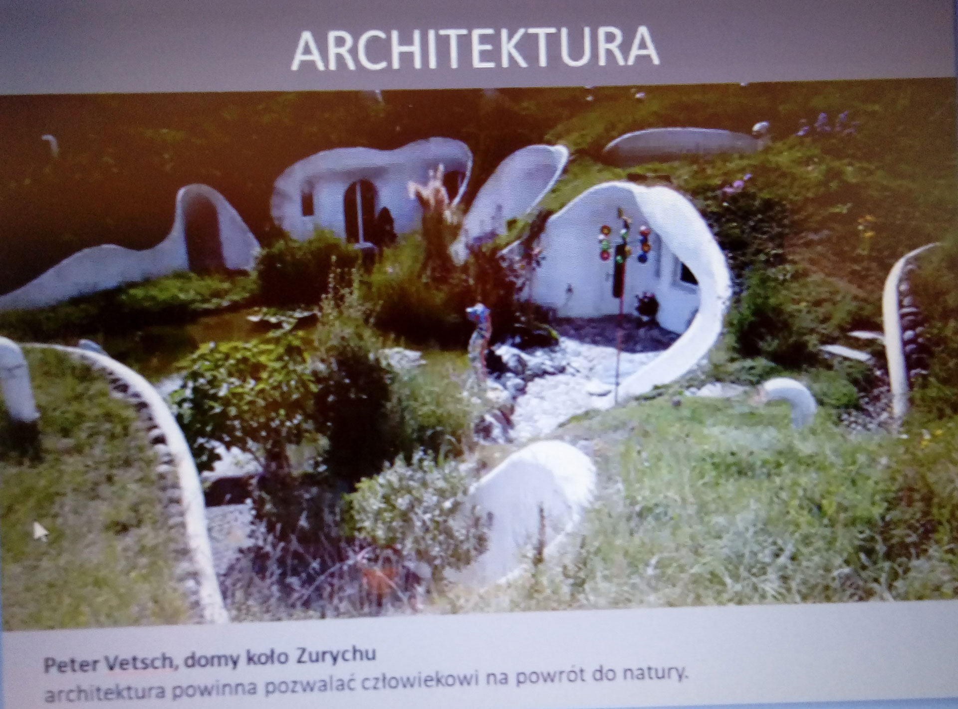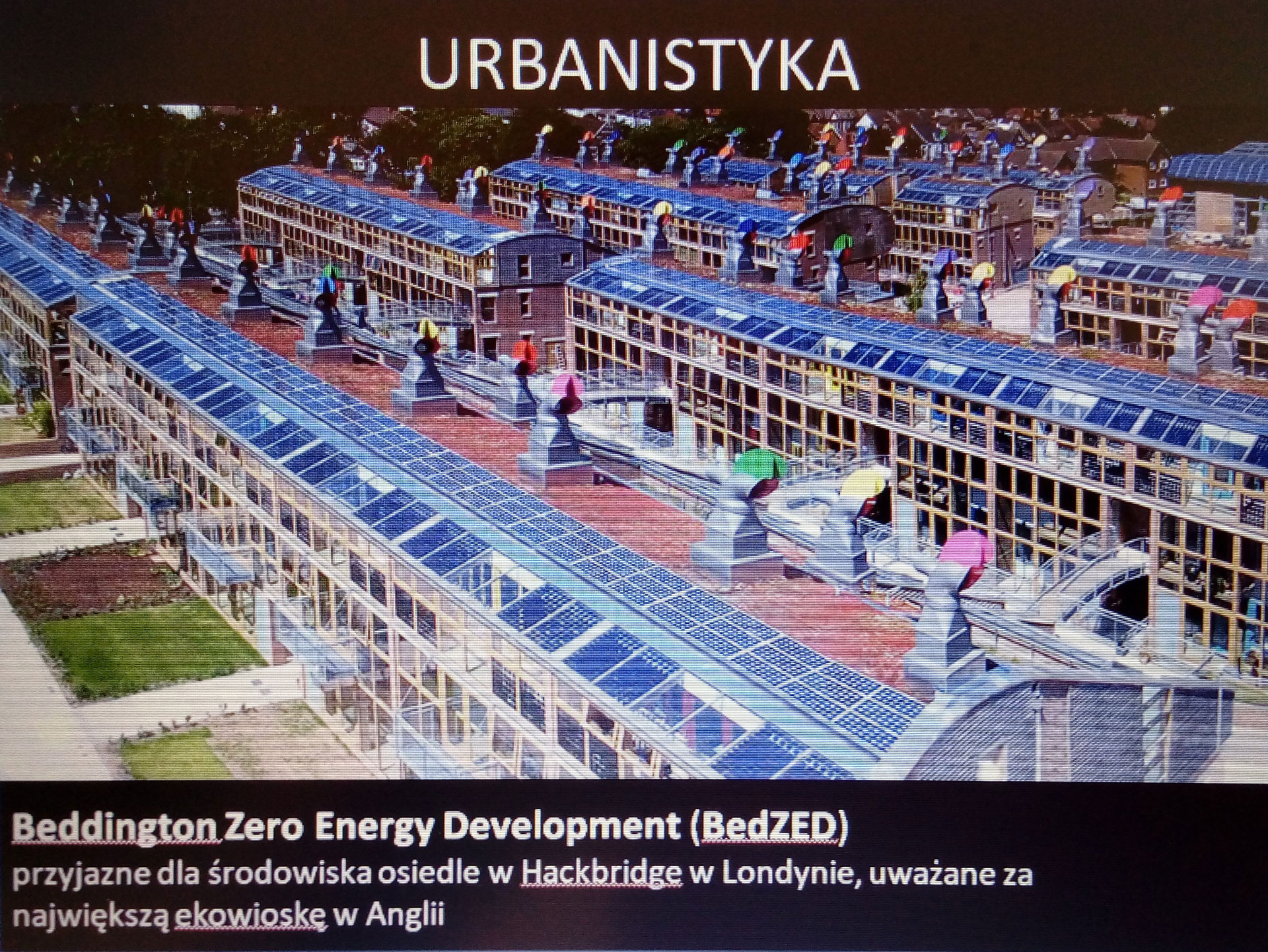 Pod względem urbanistycznym także można dążyć do ekologii i mądrego korzystania z różnych źródeł energii. Tu jako przykład posłużyła ekowioska z Anglii, polskie osiedle Eko Natolin czy też będące w fazie projektu osiedle pod Gliwicami. Na zakończenie tego ciekawego wykładu prowadzonego w sposób zdalny (przez TEAMS) pani dr inż. architekt pokazała młodzieży przykłady nagrodzonych realizacji budynków czy to na rzucie koła czy ze szklanymi elewacjami z odpowiednimi „żaluzjami” na zimniejsze dni czy też domy powiązane z naturą z zielonymi dachami. Ten sposób przedstawienia tematu odnawialnych źródeł energii i budownictwa energooszczędnego spotkał się z dużym zainteresowaniem i pobudził do przemyśleń.