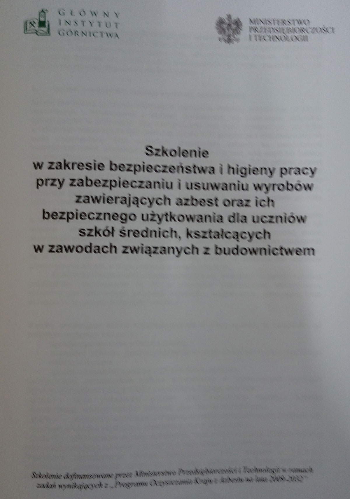 szkolenie w zakresie BHP przy zabezpieczaniu i usuwaniu wyrobów zawierających azbest oraz ich bezpiecznego użytkowania.