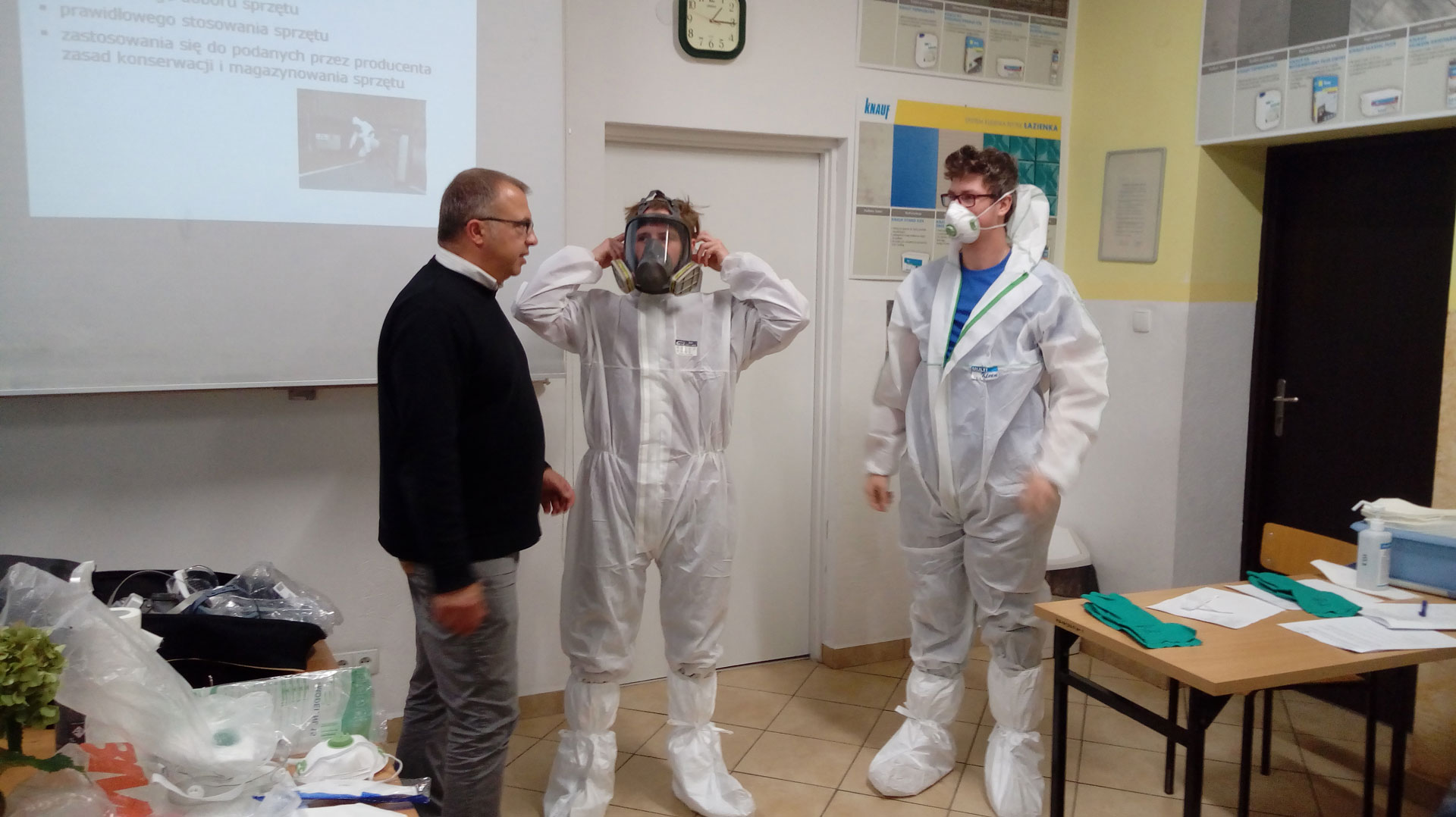 24 września 2021 r. gościliśmy w szkole po raz kolejny prelegentów z Głównego Instytutu Górnictwa w Katowicach. Było to szkolenie dotyczące zastosowania azbestu, prac w kontakcie z azbestem i sposobach jego bezpiecznego usuwania. Uczestniczyli w nim uczniowie klas budowlanych (4 A, 3 Ap, 2 Ap, 3 ap i 1 Ap). Program szkolenia obejmował interaktywny wykład, wykonanie ćwiczenia związanego z oceną szkodliwości azbestu w obiekcie oraz zademonstrowano jak stosować środki ochrony osobistej przy pracach z azbestem. Na zakończenie przeprowadzono test, który będzie podstawą do wydania certyfikatu dla uczestników. Spotkanie odbyło się w sympatycznej atmosferze a zadawane pytania przyczyniały się do zwiększenia wiedzy i świadomości w temacie szkodliwości azbestu i sposobach jego eliminacji.