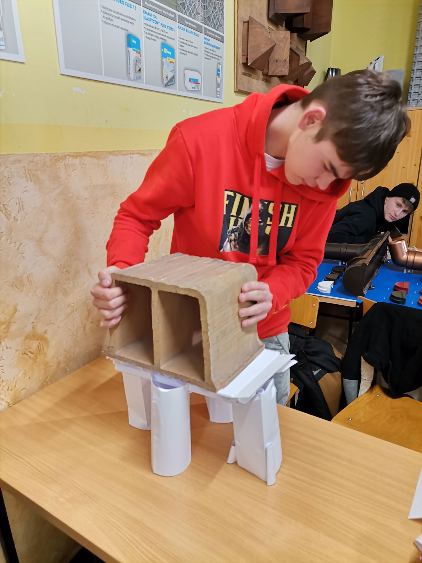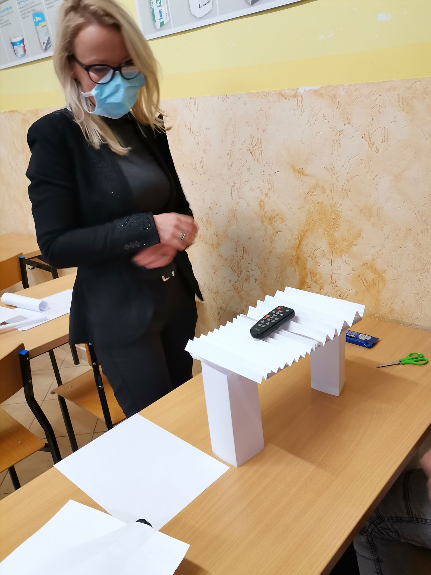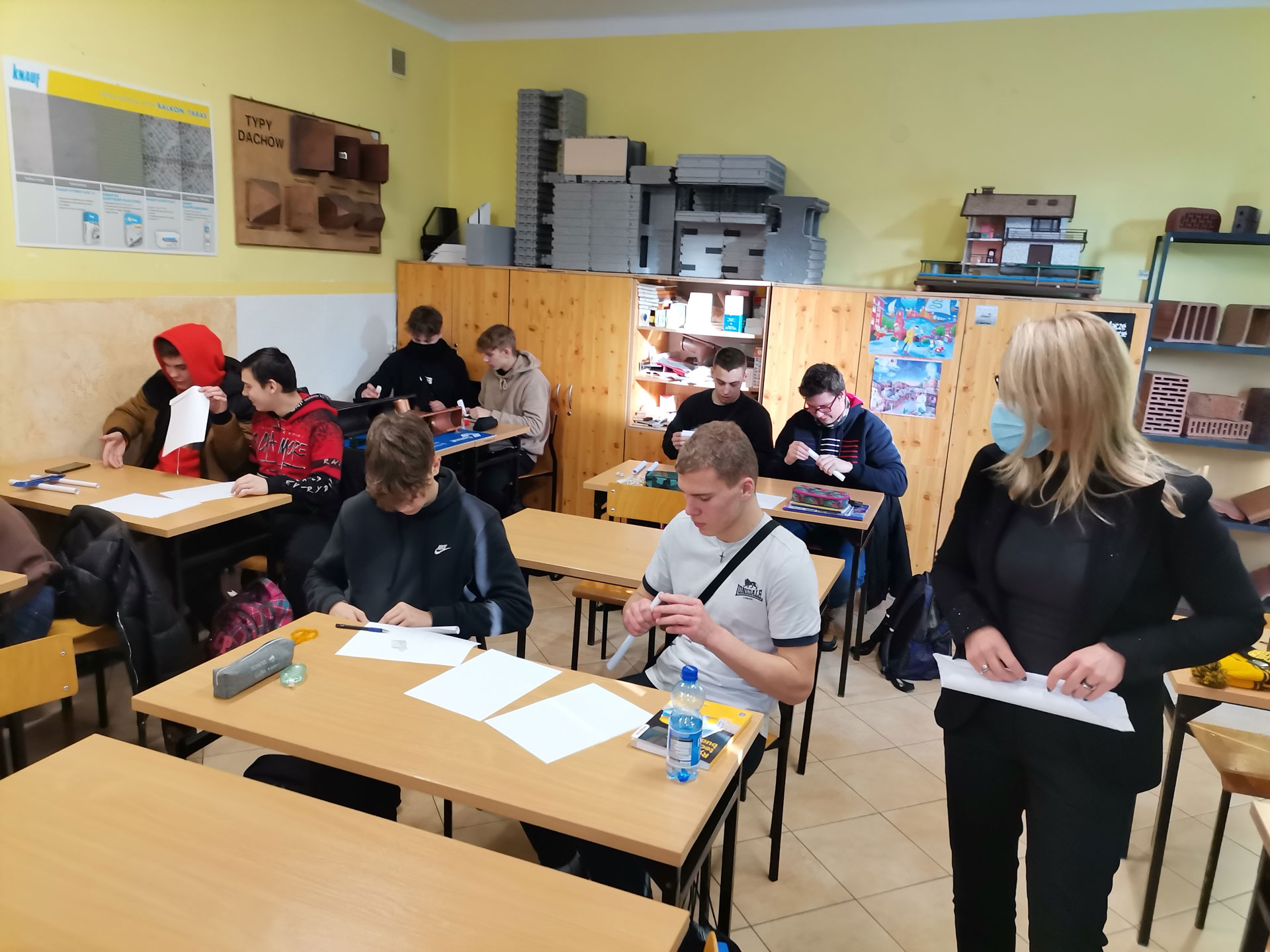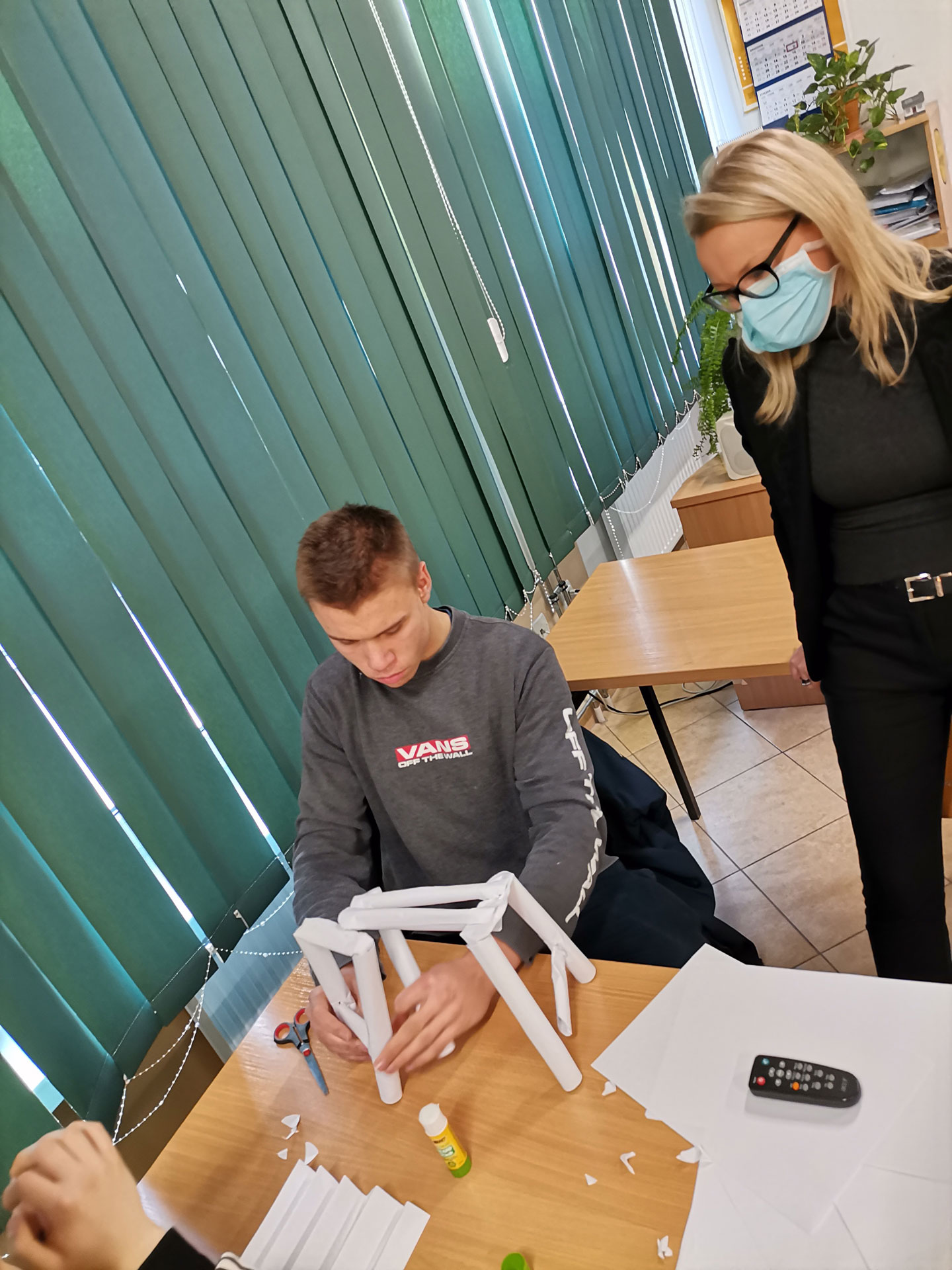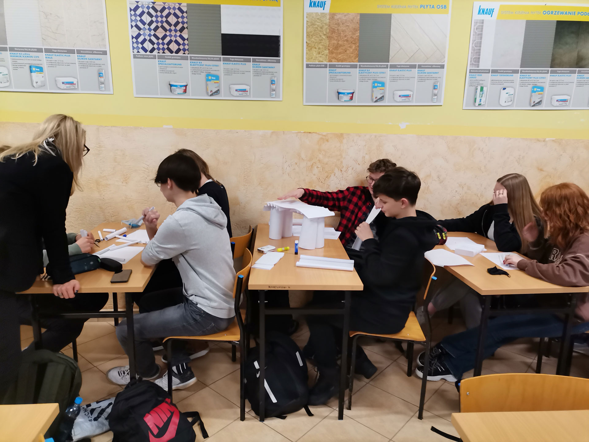 W piątek 10 grudnia 2021 r uczniowie klas: 1Ap TB, 3 A TRW i 3 ap BS1S uczestniczyli w warsztatach dotyczących materiałów budowlanych - „Papier jako materiał konstrukcyjny”. Zaproszony gość, wykładowca z Wyższej Szkoły Technicznej w Katowicach - pani Barbara Bradecka- Uherek po krótkiej, wprowadzającej prezentacji ukazującej możliwości papieru (zachęcając również młodzież do wypowiedzi) zaproponowała wykonanie w grupach dwuosobowych – mostu z papieru, o zadanych parametrach, który utrzymał by pilot od rzutnika (markował on samochód). Po części koncepcyjnej uczniowie przystąpili do wykonania zadania mając do dyspozycji kartki papieru A4 oraz klej. Jak widać na zdjęciach powstałe konstrukcje sprostały zadaniu.