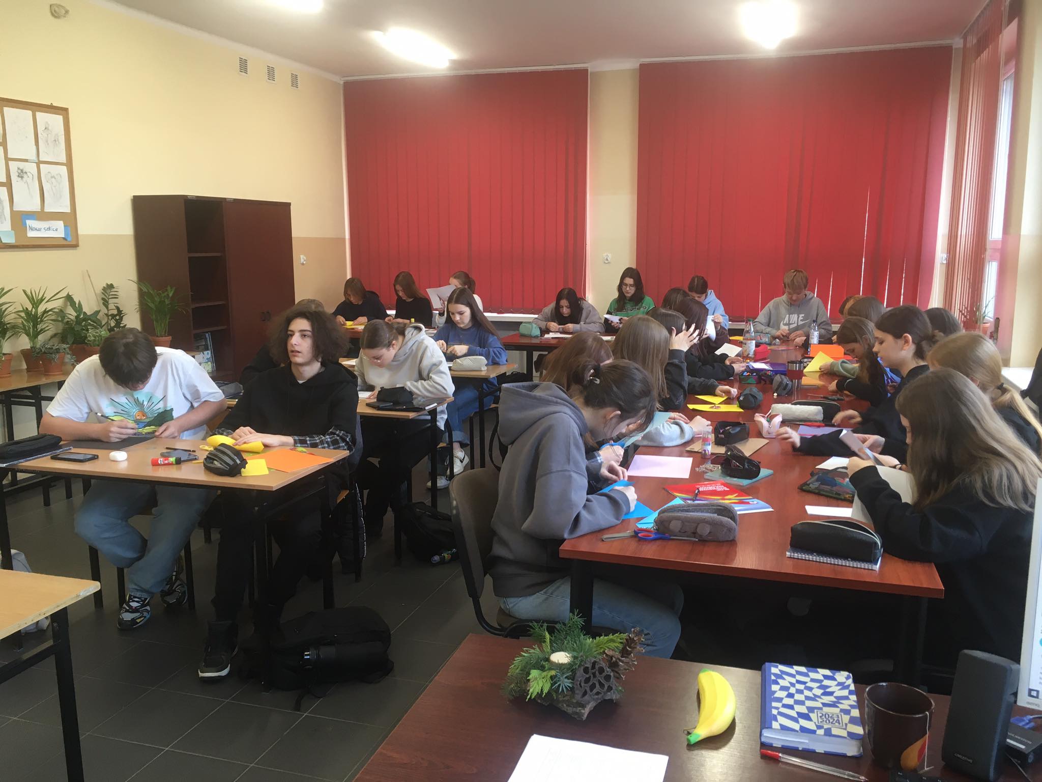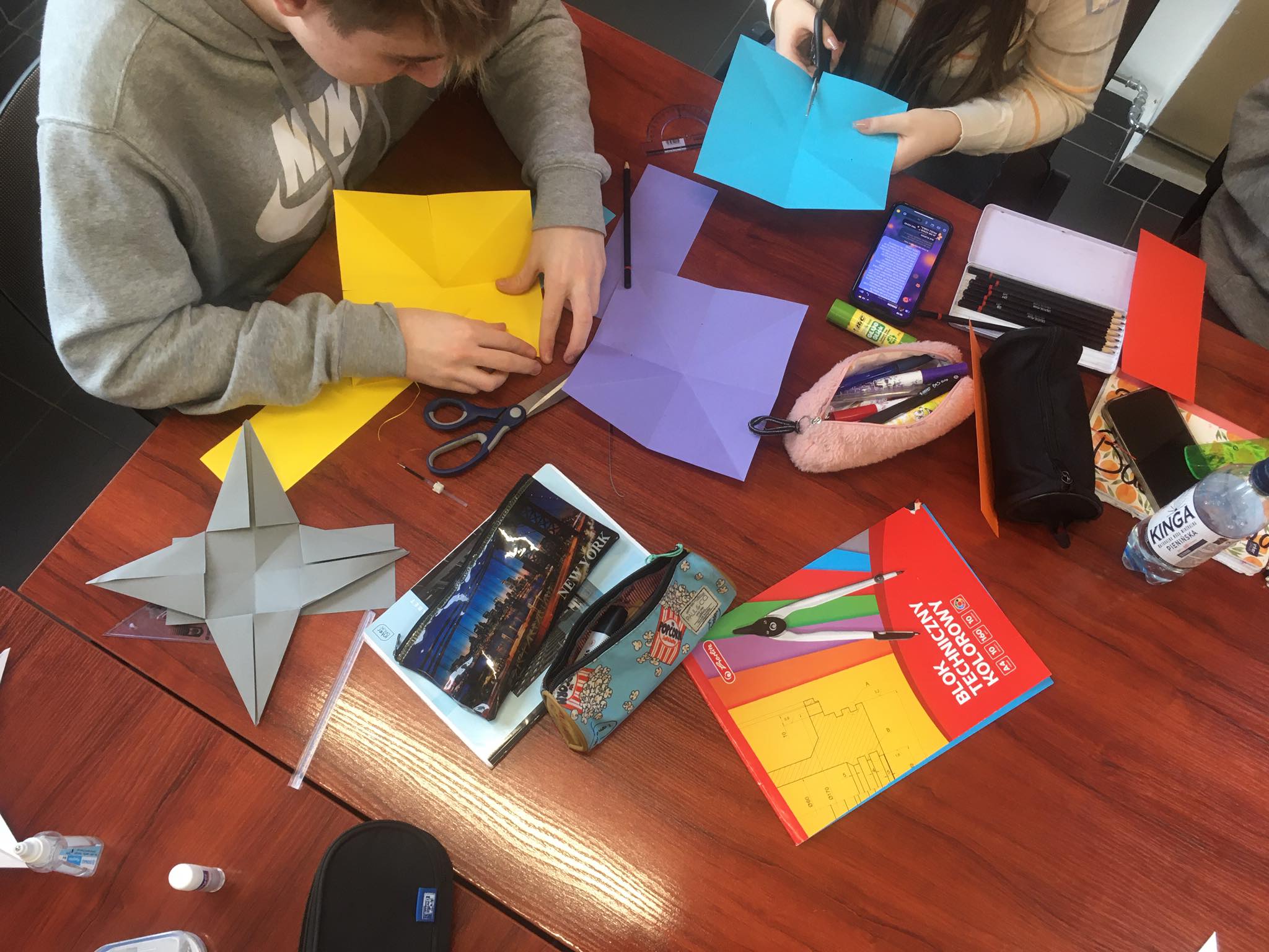 Nasi przyszli technicy aranżacji wnętrz 😃którzy poznają techniki geometrii wykreślnej 📐📏✏️🔺działali dzisiaj z figurami geometrycznymi ale w trochę innej formie. 🤣🤪Przestrzenne gwiazdki⭐️, które stworzyli mogą być wykorzystane jako ozdoby mieszkań w różnej formie. Ciekawe gdzie znajdą swoje miejsce po powrocie do domu 🤔😍