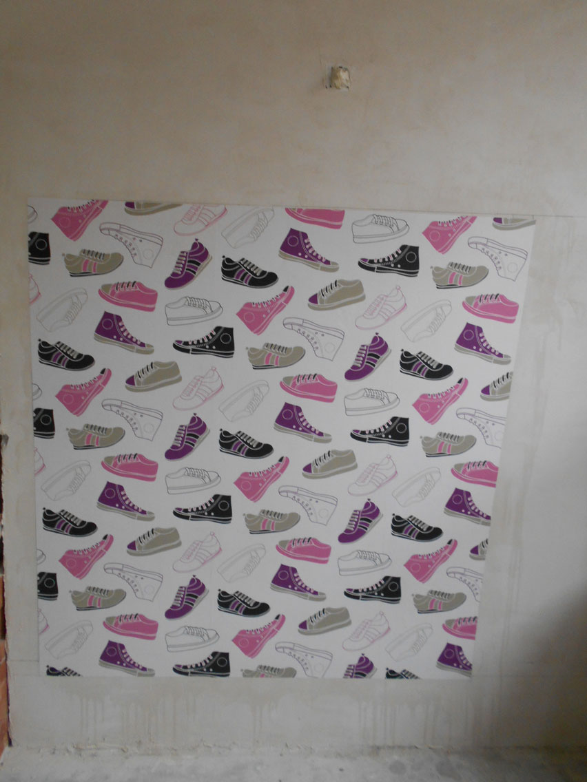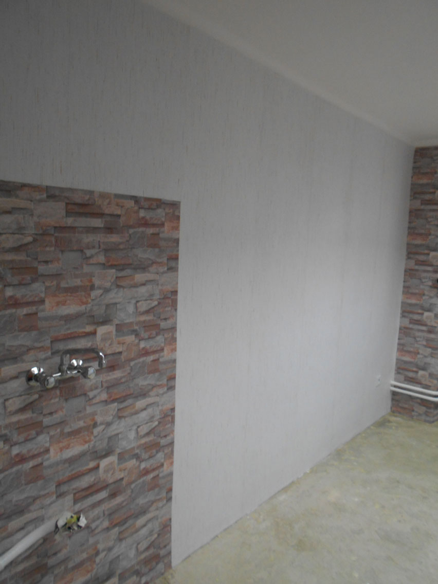 Następnym krokiem było malowanie sufitu i położenie tapety- jednego typu w kąciku sanitarnym oraz na ścianie wejściowej i z oknem i drugiego typu na pozostałych 2 ścianach.Efekty pracy można podziwiać.