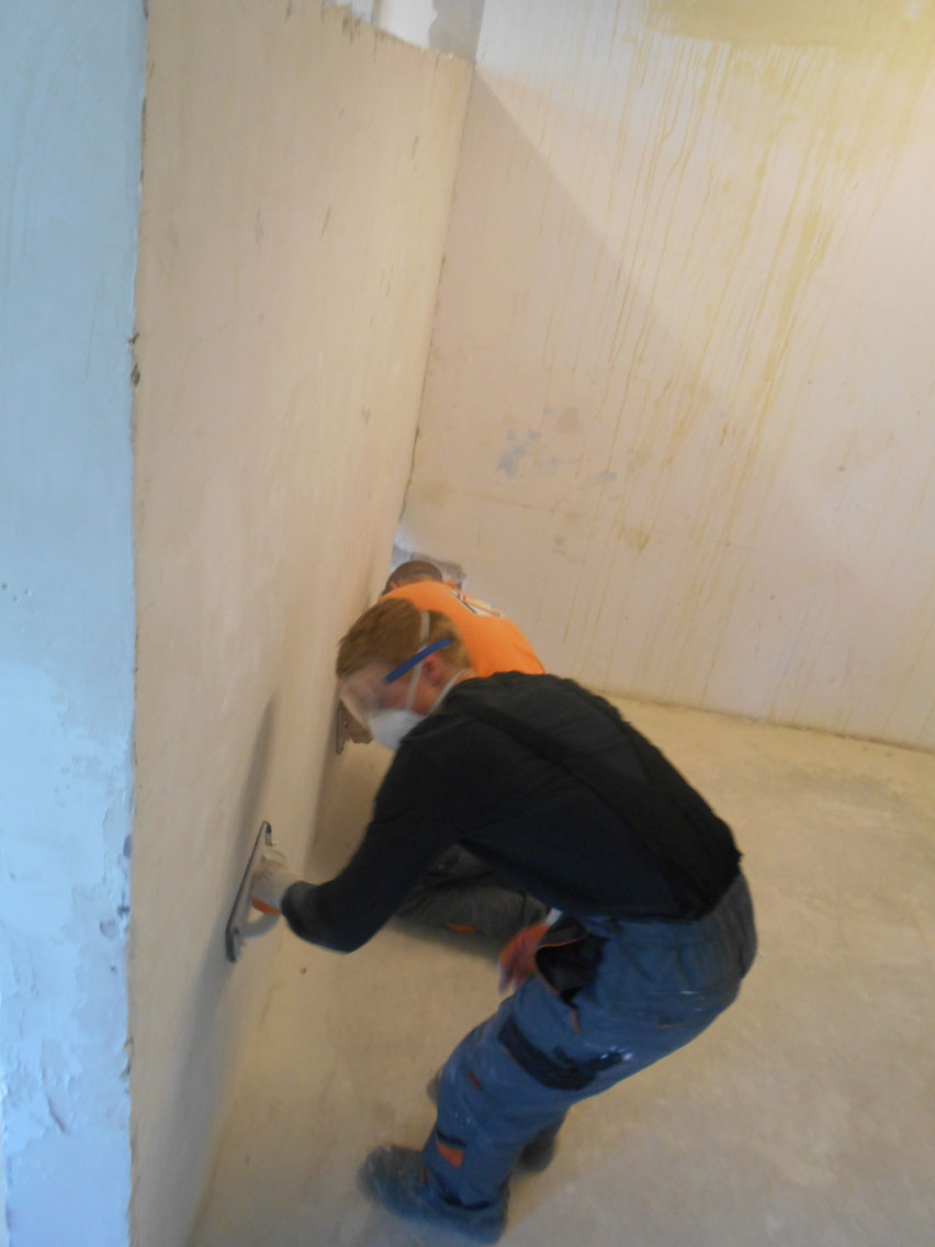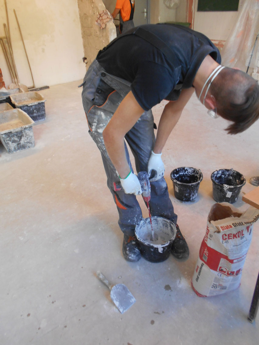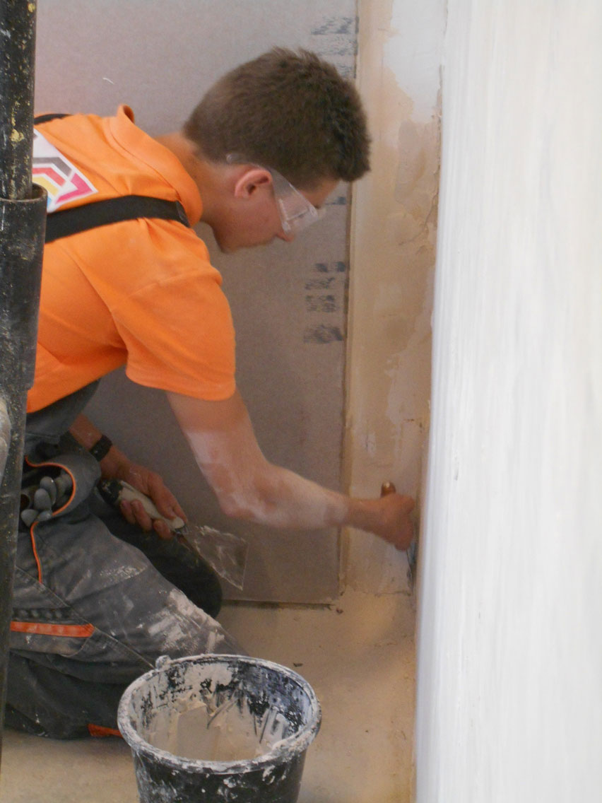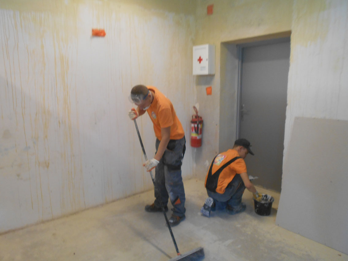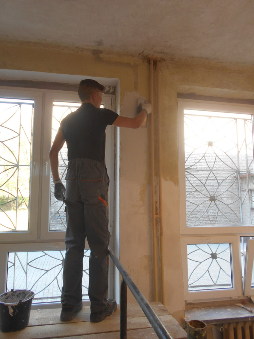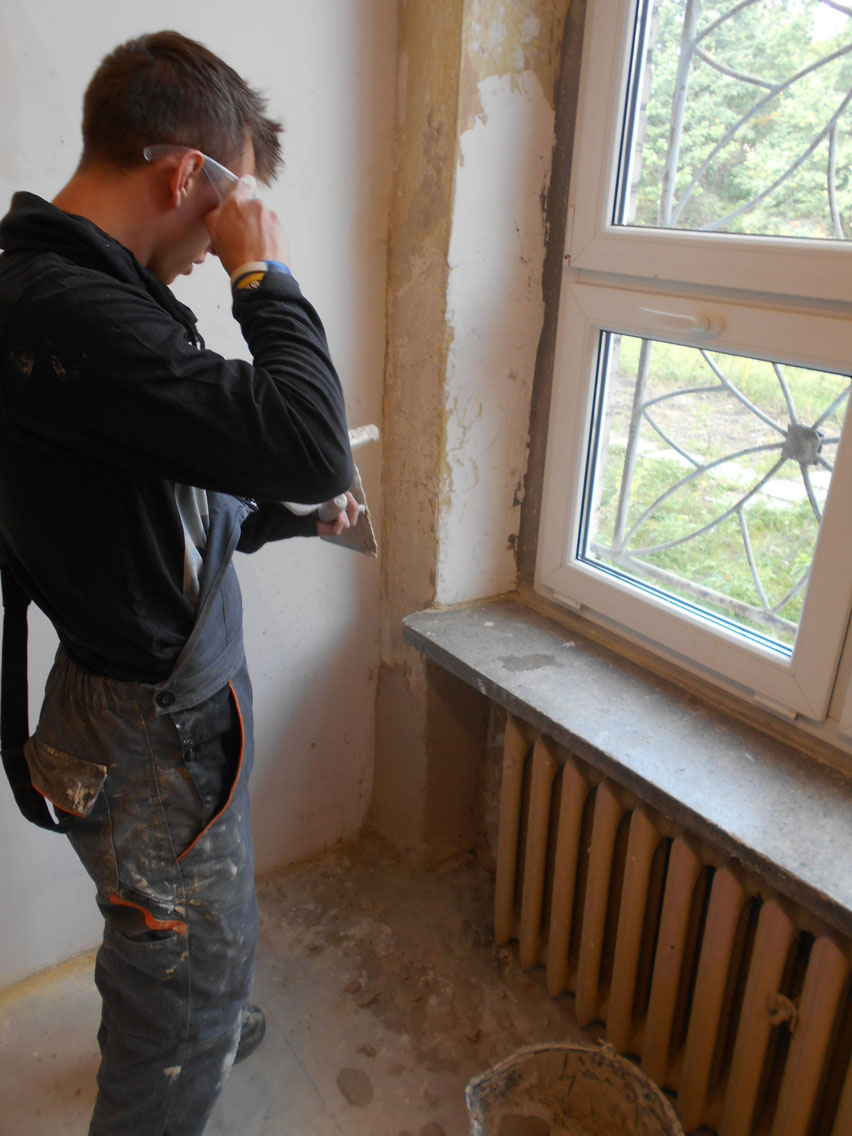 Klasy 1 a i 2 a szkoły branżowej zdobywają umiejętności w zakresie wykonywania elementów suchej zabudowy, przygotowania ścian i sufitów do malowania, tapetowania czy też wykonywania prac okładzinowych.