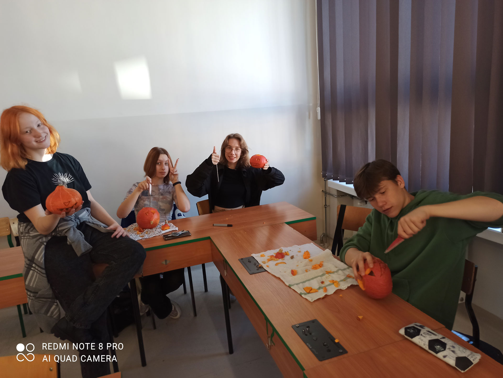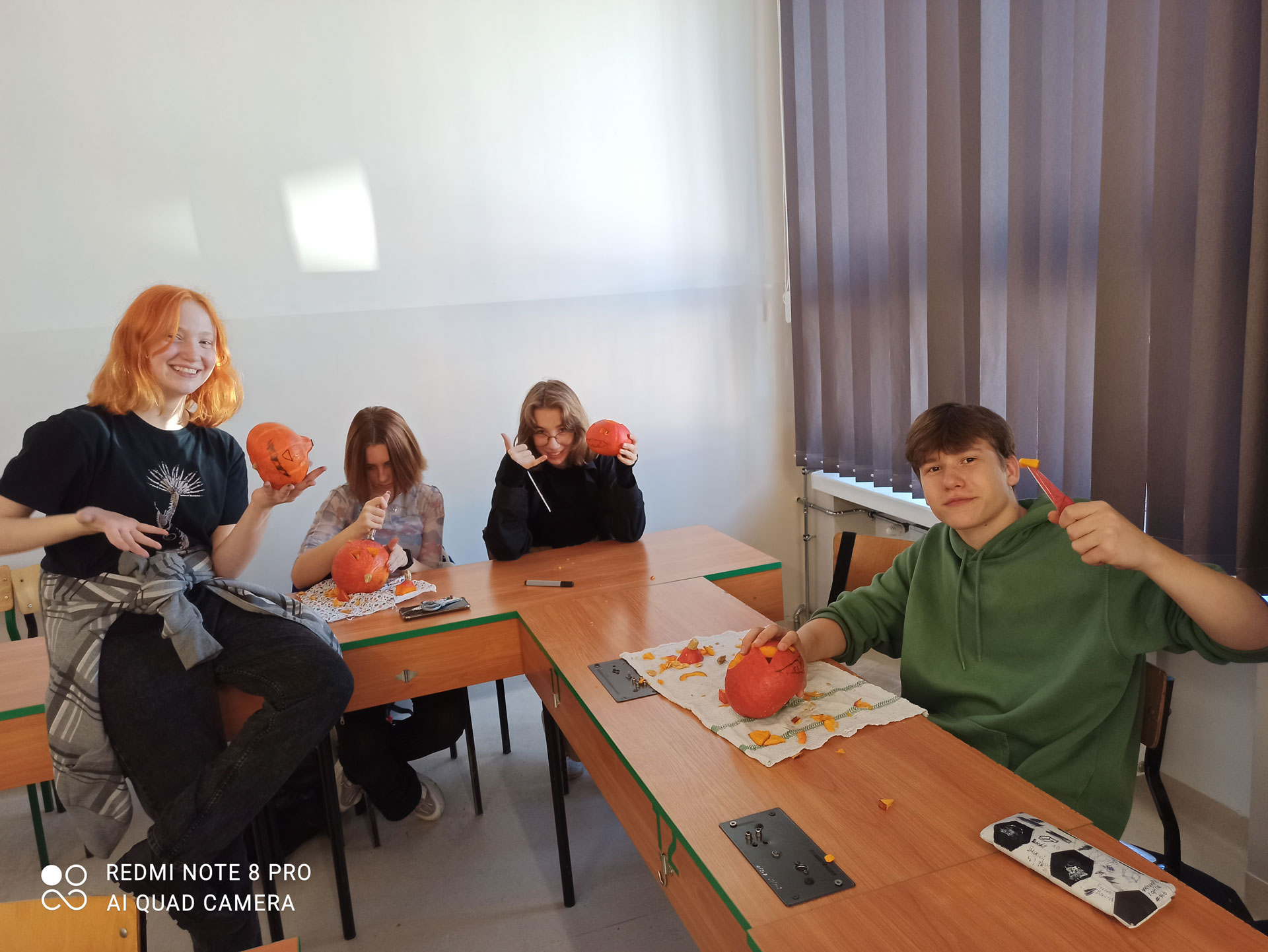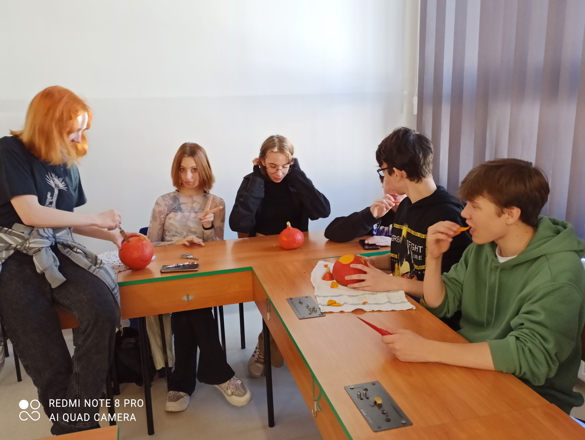 Klasa 1Dp postanowiła znaleźć kreatywny wyraz dla październikowej zadumy i przygotowała ekologiczne dekoracje do sali 216A. W trakcie zajęć nie ucierpiała żadna z dyń. 😁