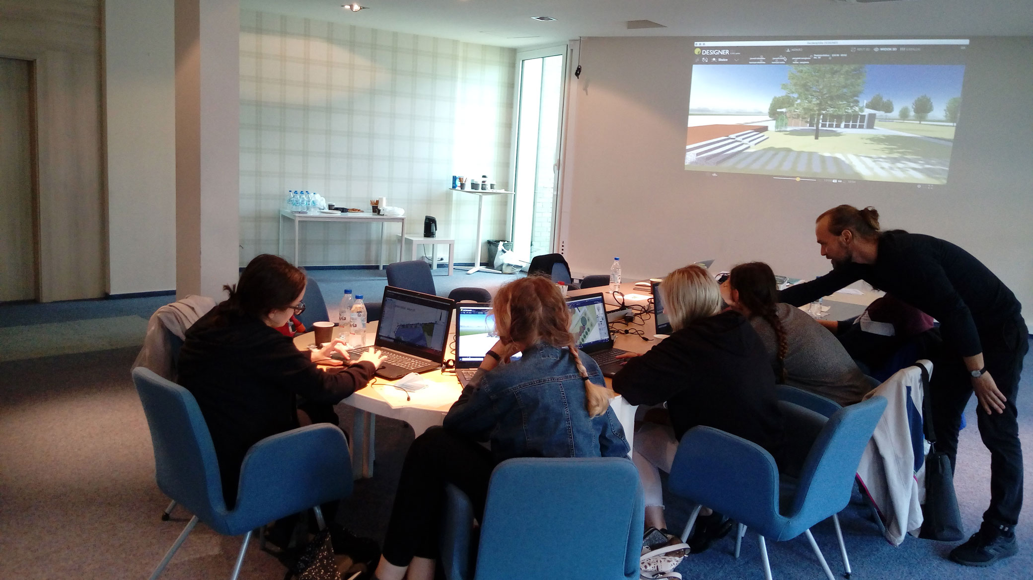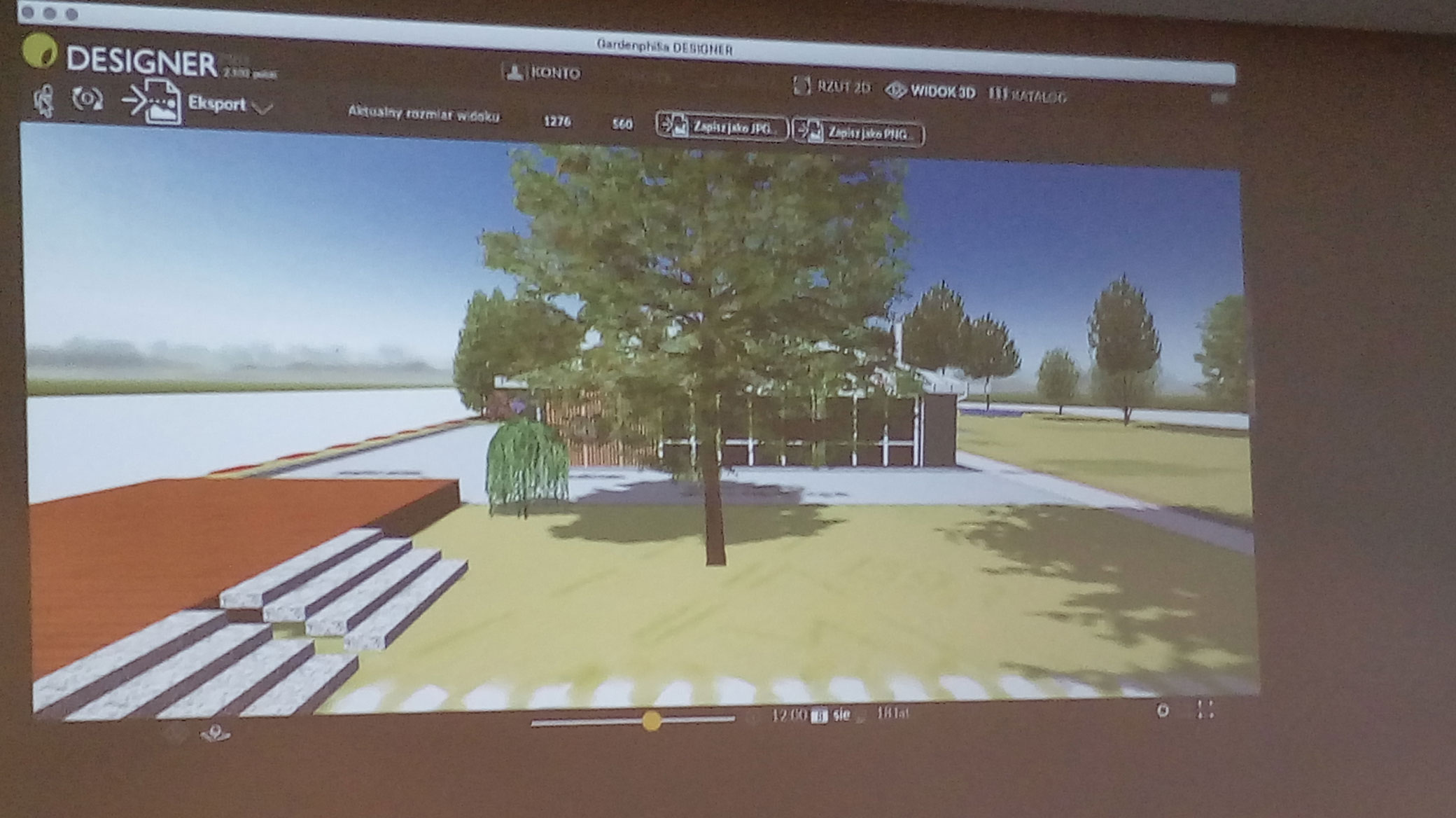 Szkolenie obejmowało podstawowy cykl projektowania, współczesne narzędzia do projektowania zieleni, zasady pracy w programie oraz stworzenie przykładowego projektu z wykorzystaniem modelu 3 D budynku oraz zeskanowanej mapy do celów projektowych.