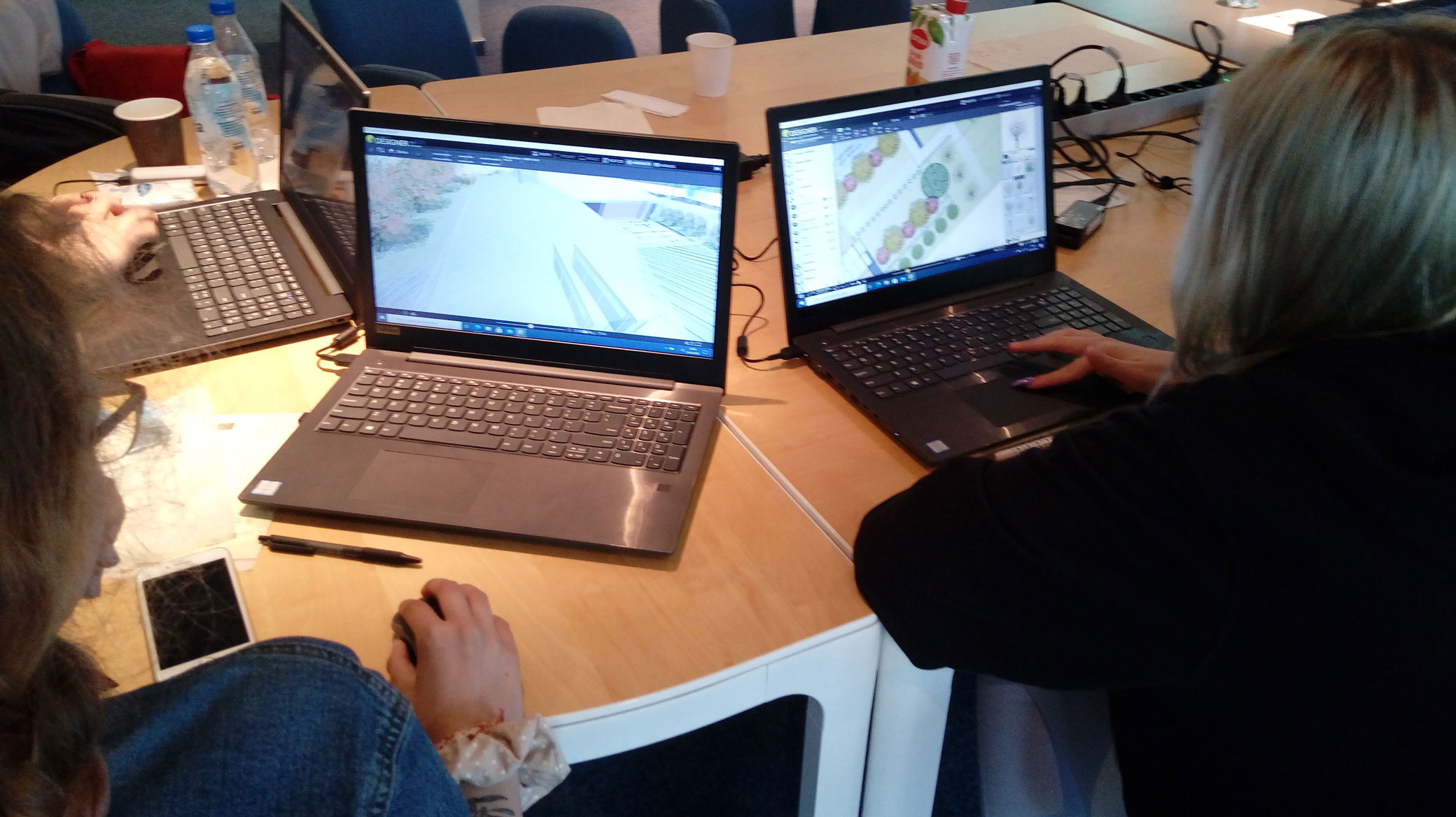Po zapoznaniu się uczestniczek szkolenia z funkcjami programu i wykorzystaniu plików szkoleniowych pod kierunkiem inż. Andrzeja Komakowskiego utworzyły zestawienia roślin i materiałów wykorzystanych w projekcie i wykonały stosunkowo najtrudniejszy element- ukształtowanie terenu.
