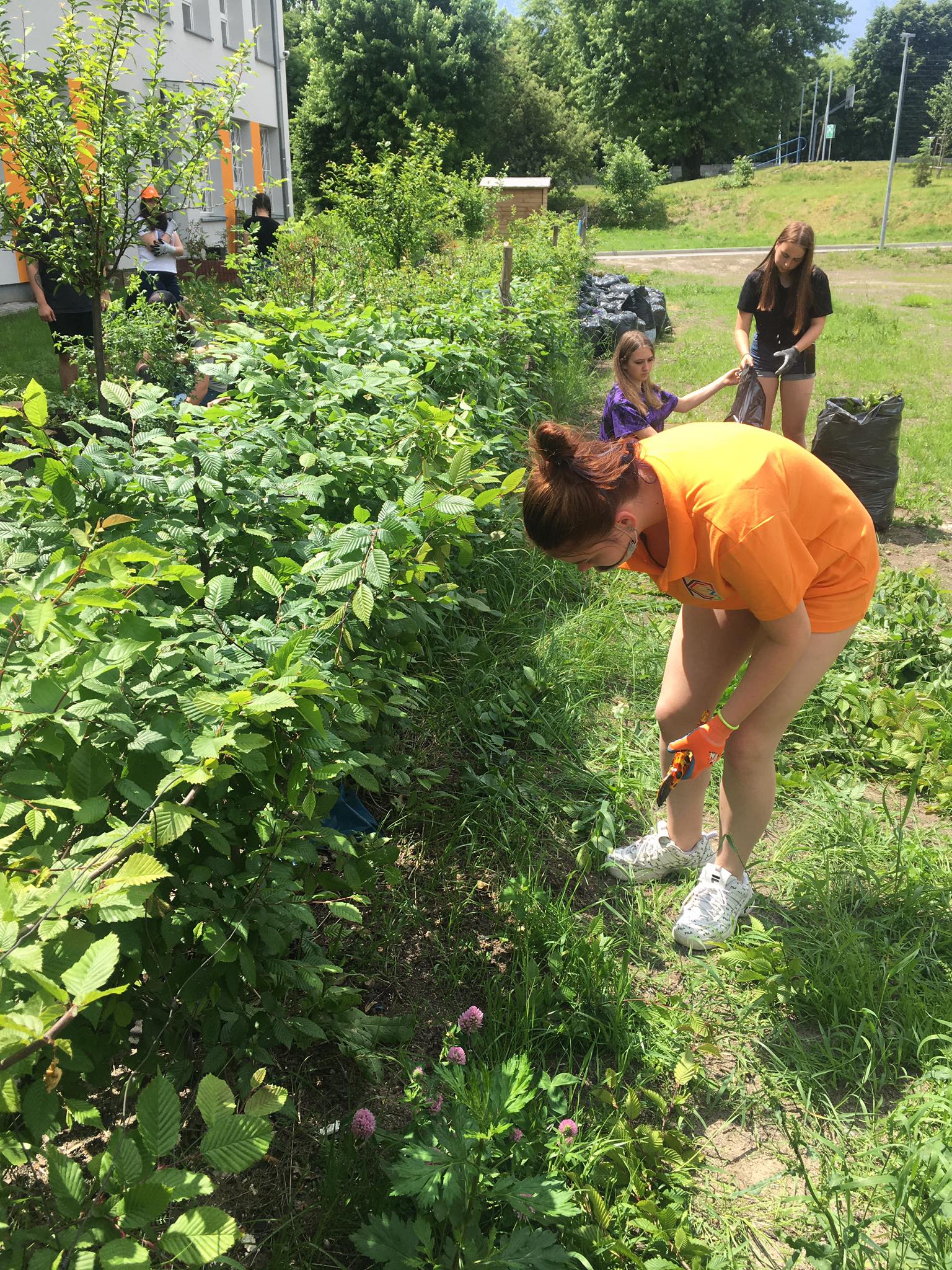 Przedwakacyjne porządki w naszym ogrodzie szkolnym. Sama radość wrócić do lekcji w terenie.