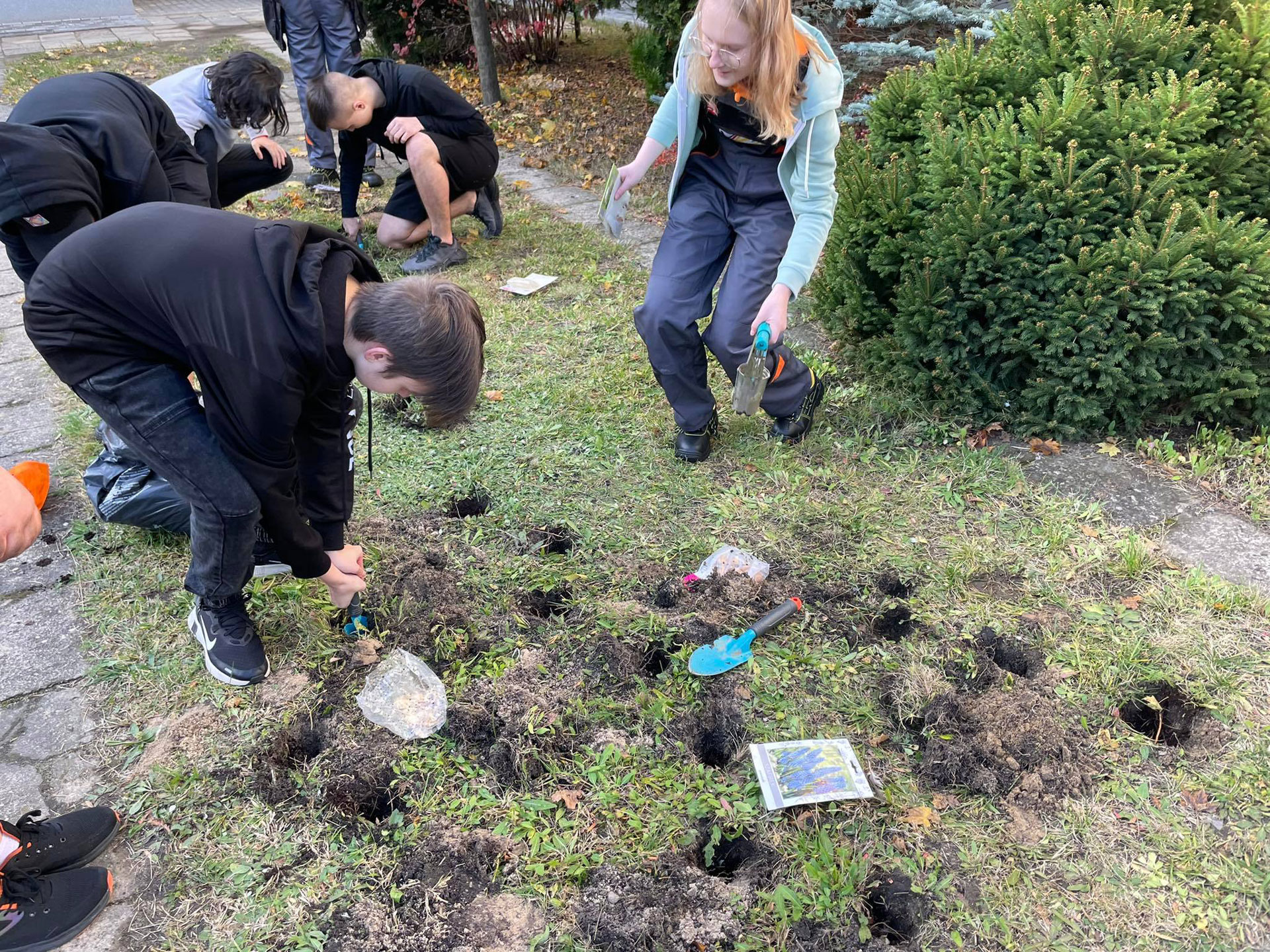 Część naszych roślin? przechodzi w okres spoczynku?, ale żeby kwiaty? mogły cieszyć nasze oko? już od wiosny trzeba zaplanować i zasadzić je już teraz.? Uczniowie klasy IBp TAK w ostatnim czasie sadzili cebulki kwiatów na naszym szkolnym patio. Teraz tylko czekamy na wiosnę i na efekt końcowy. ?☺️??