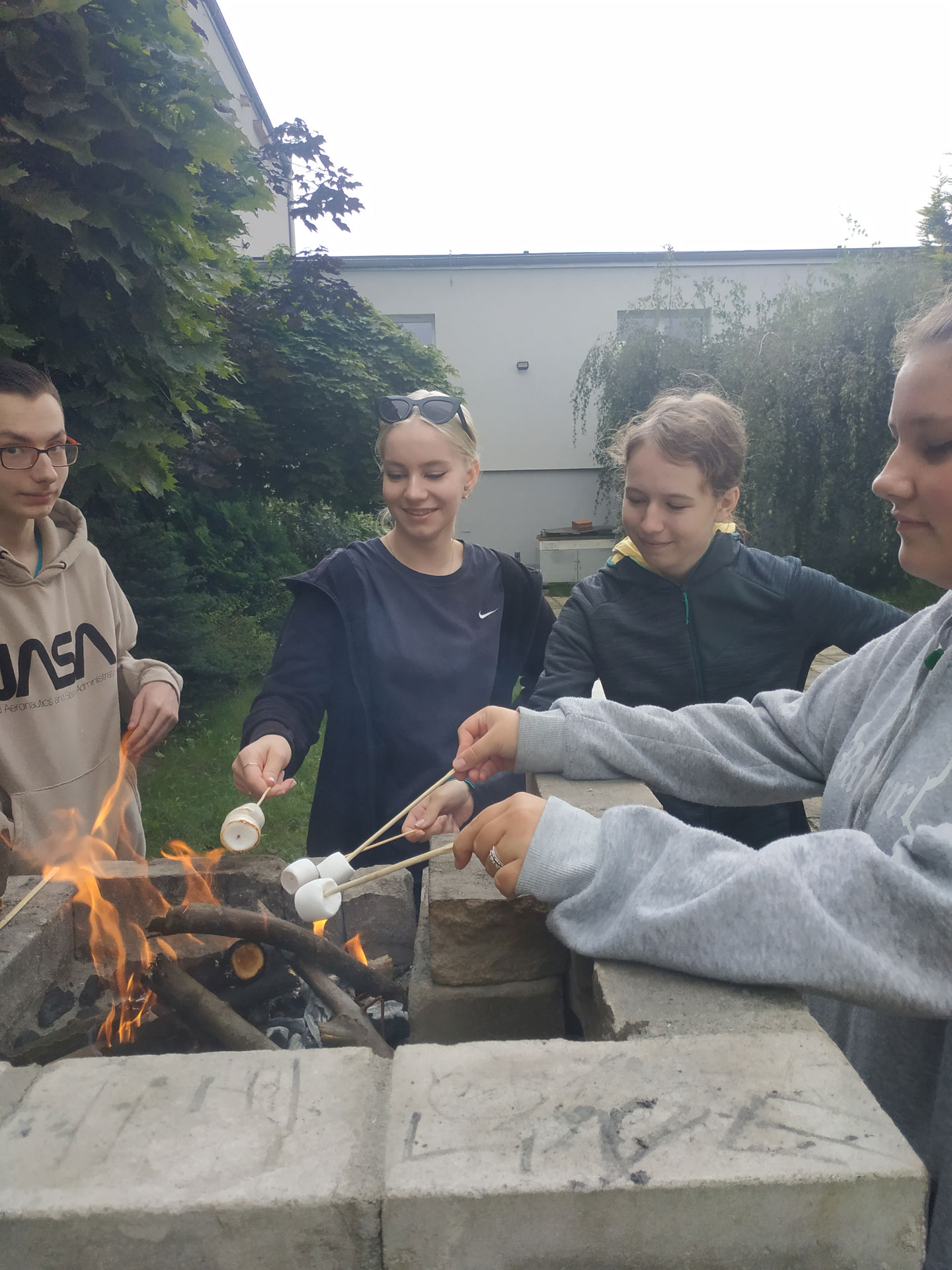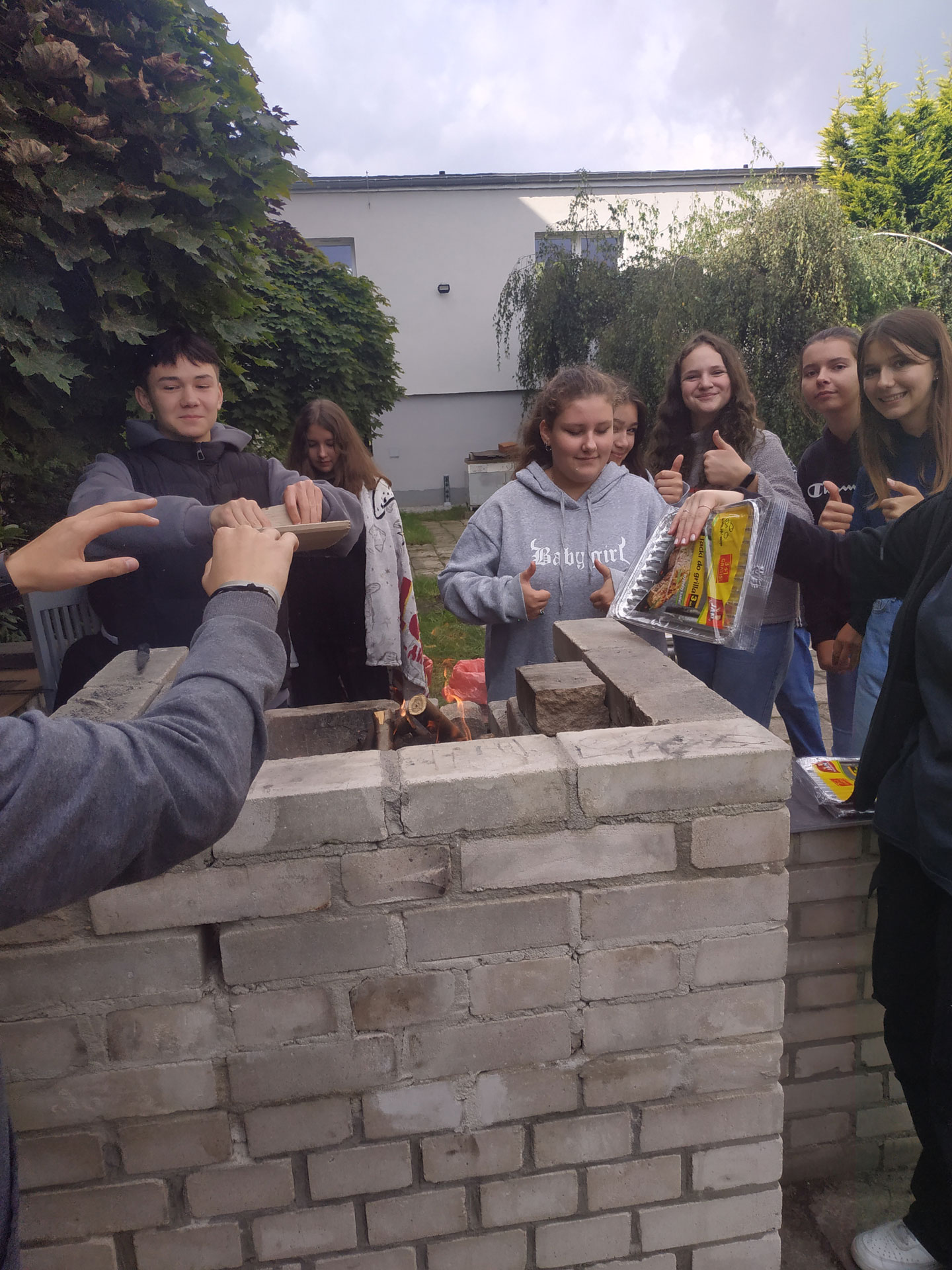Przez kilka ostatnich dni nasze szkolne patio było miejscem bardzo przyjaznym dla uczniów klas pierwszych. Słoneczna aura sprzyjała spotkaniom przy grillu. W piątek, z uśmiechem i na luzie, integrowała się klasa 1Bp. Stół był suto zastawiony. Ciasta, ciasteczka, szaszłyki, zapiekanki to tylko niektóre propozycje z menu. To był czas przeznaczony tylko na zacieśnianie relacji. Okazało się, że uczniowie klasy 1Bp całkiem nieźle zaadaptowali się już w nowej szkole. Humory dopisywały. Niektórzy ujawnili swoje nieoczywiste talenty, np. taneczne. Integracja to długi proces, ale wszystko wskazuje na to, że klasa 1Bp ma zadatki na zgrany zespół.