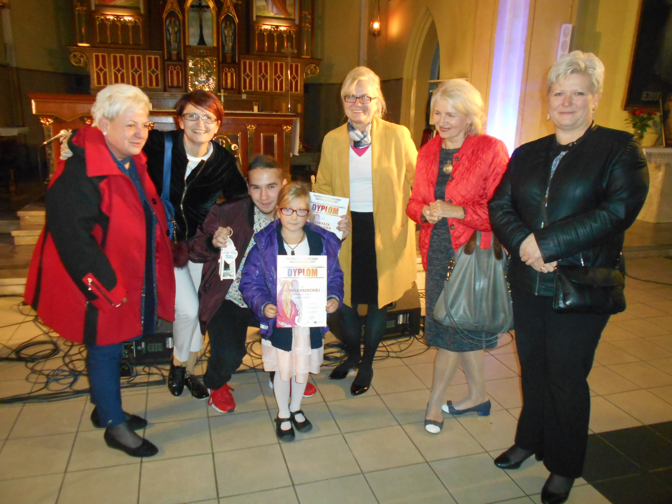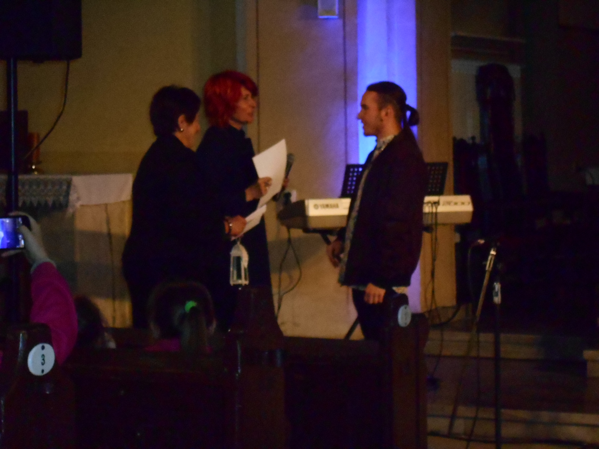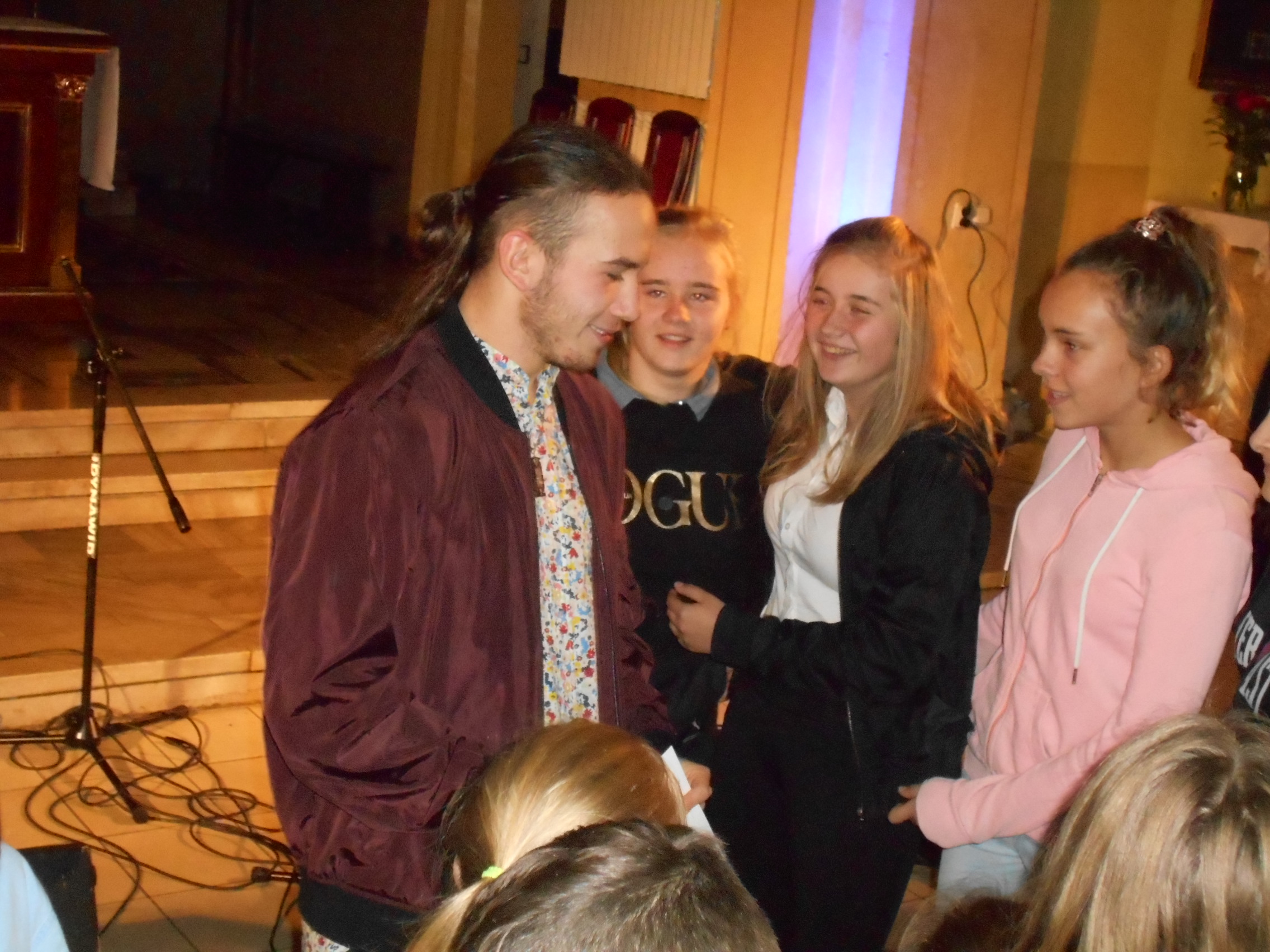 Laureaci konkursu 15.10.2017 r. w Kościele pw. św. Augustyna w Świętochłowicach-Lipinach zaprezentowali po jednej piosence – pieśni w kategoriach: chór, schola, zespół, soliści oraz otrzymali nagrody ufundowane przez CKS w Świętochłowicach i proboszcza parafii św. Augustyna. „Rozmowa z Bogiem” zaprezentowana przez Łukasza w rytmie rapu zdobyła uznanie zarówno jury, jak i zgromadzonej publiczności. Niekonwencjonalne podejście do tematyki religijnej zaprezentowane przez Łukasza zwróciło uwagę organizatorów kolejnych imprez muzycznych więc należy oczekiwać, że będziemy mogli go oklaskiwać już niedługo i pewnie nie raz. Gratulacje odbierał nie tylko od mamy i promotorki – p. A. Koniarek, ale również od reprezentacji Grona Pedagogicznego na czele z p. V- wicedyrektor – V. Puchała, wychowawczynią – p. A. Sarną oraz p. H. Chlebowską i U. Strugała. Życzymy Łukaszowi kolejnych nagród oraz powiększającej się rzeszy fanek i fanów.