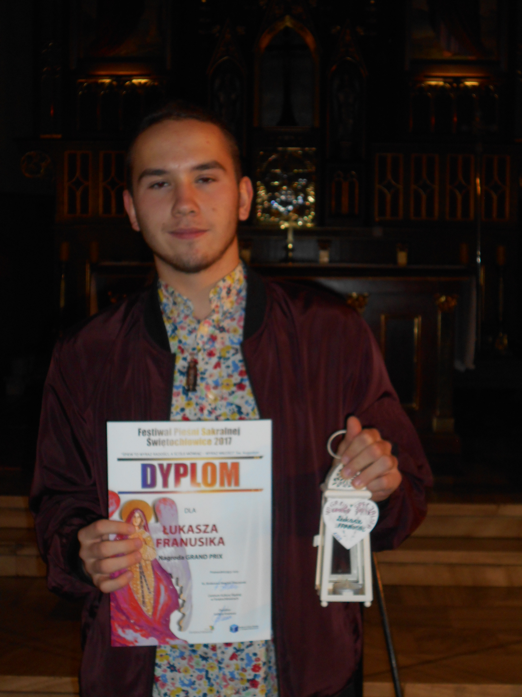 Uczeń naszej szkoły- Katowickiego Centrum Edukacji Zawodowej - ŁUKASZ FRANUSIK w VIII Festiwalu Pieśni Sakralnej organizowanym przez Centrum Kultury Śląskiej w Świętochłowicach oraz Parafię św. Augustyna wyśpiewał nagrodę Grand Prix.