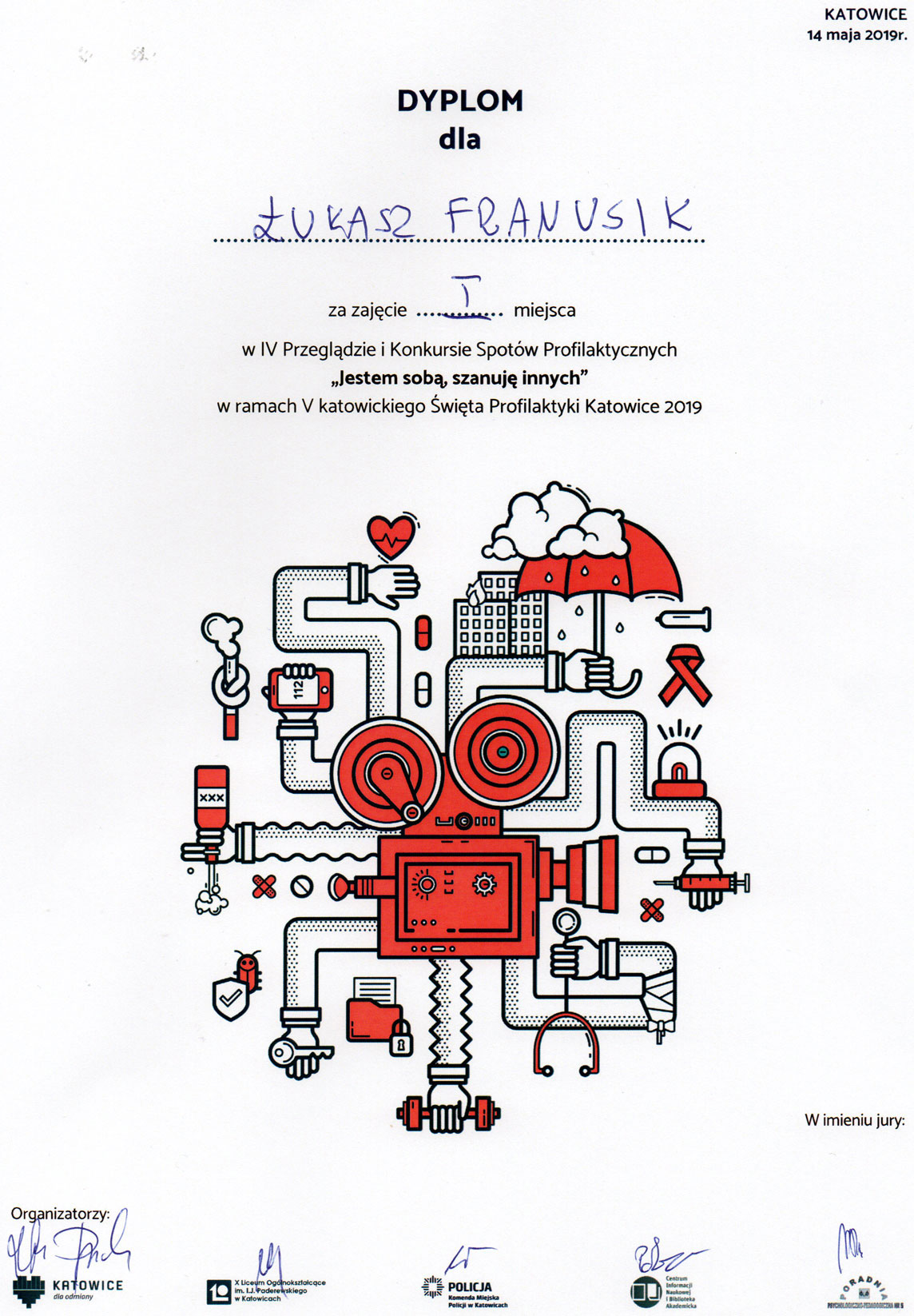 w Katowicach, Poradnia Psychologiczno – Pedagogiczna nr 5 w Katowicach oraz X LO im. I.J. Paderewskiego w Katowicach. Zwycięzcom składamy serdeczne gratulacje i życzymy dalszych sukcesów