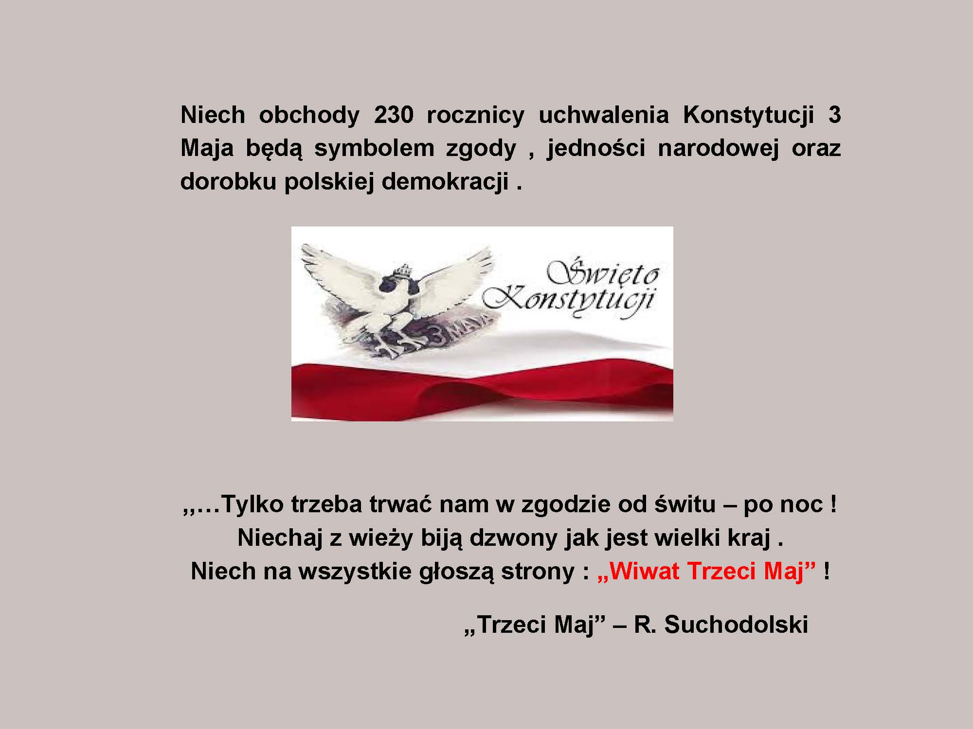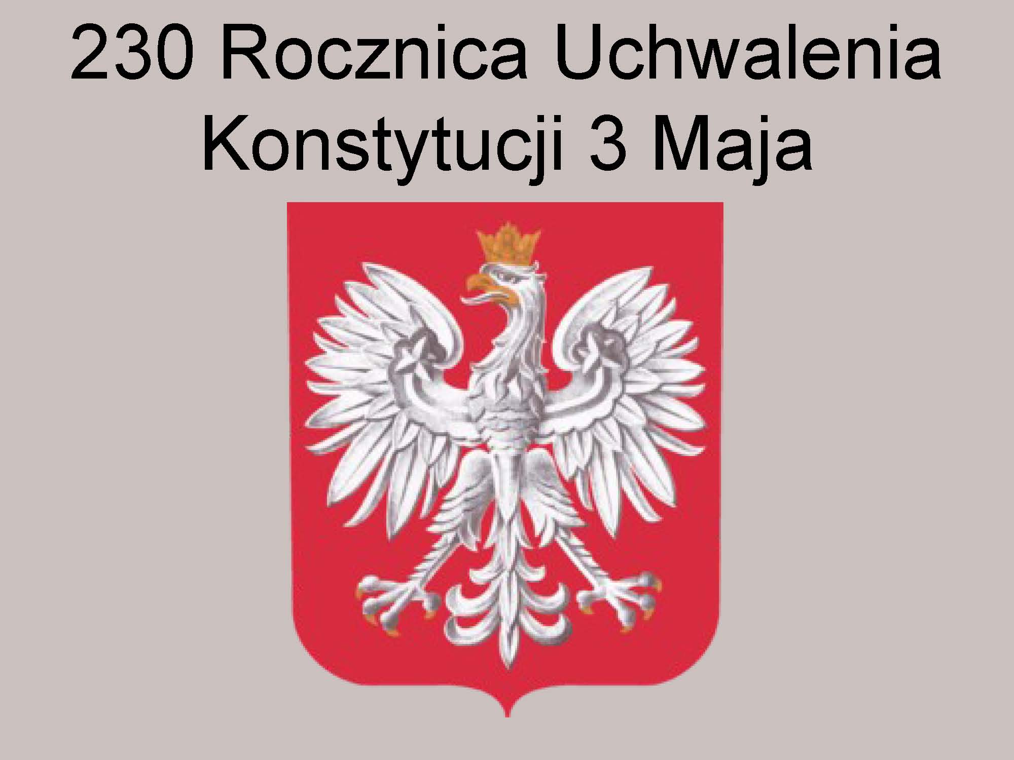 Z okazji 230 rocznicy uchwalenia pierwszej w Polsce konstytucji uczniowie naszej szkoły mieli okazję zapoznać się na godzinach z wychowawcą lub lekcjach historii z genezą , założeniami i skutkami tego ważnego w dziejach Polski wydarzenia.