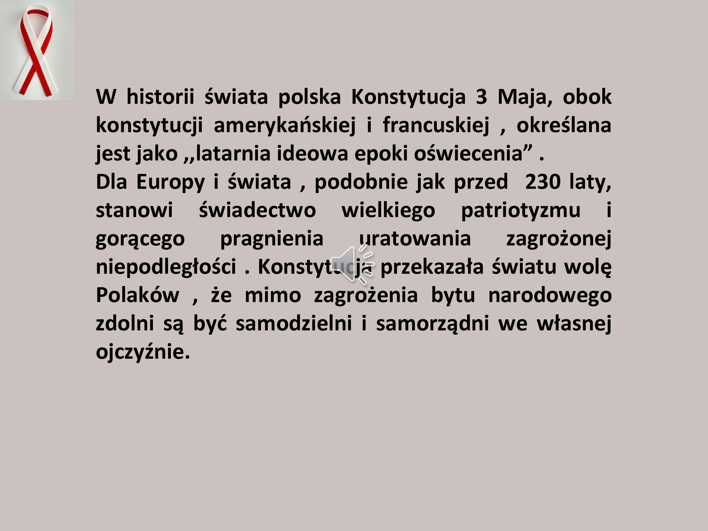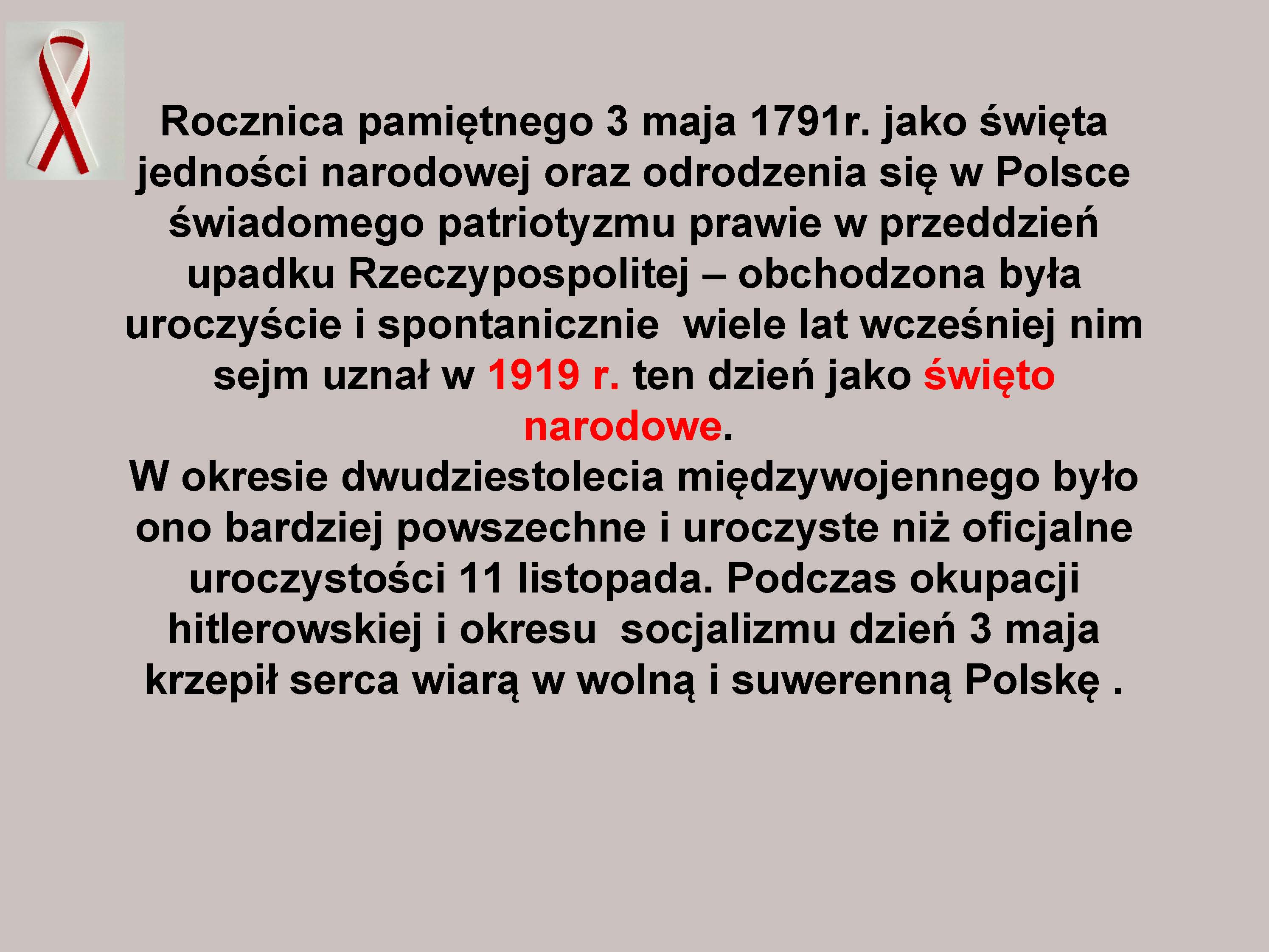 Przygotowana na tę okoliczność prezentacja zawiera, oprócz podstawowej faktografii, wiersze oraz pieśni patriotyczne z tego okresu.