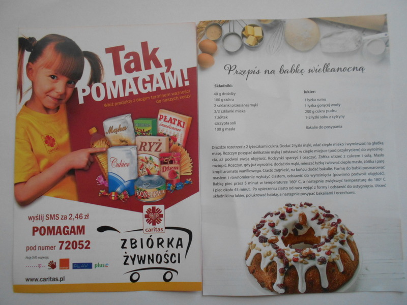 W dniach 24 – 25.03.2017 uczniowie naszej szkoły wraz z nauczycielami włączyli się w ogólnopolską akcję zbiórki żywności organizowaną przez Caritas Polska pod hasłem „Tak, pomagam!”.