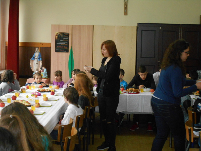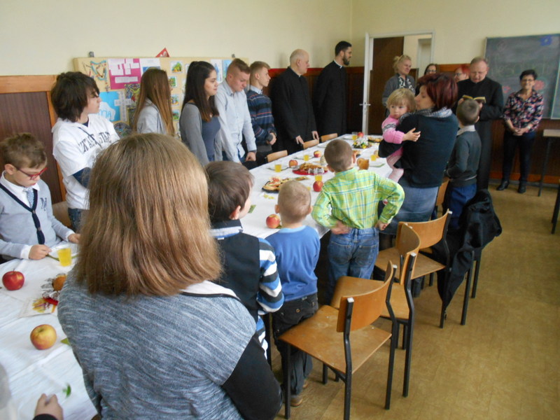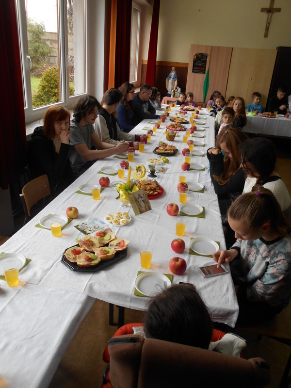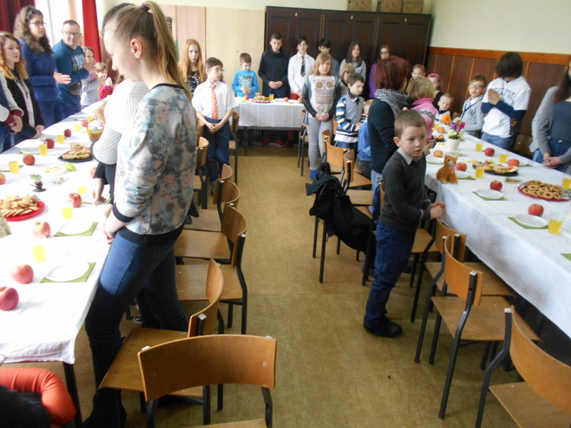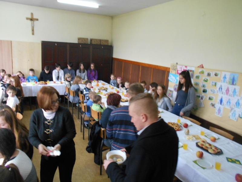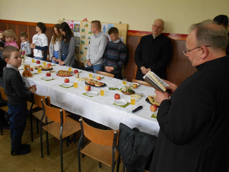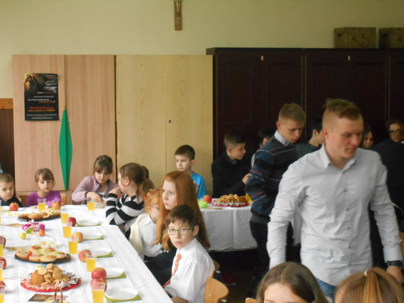 Śniadanko zaszczycili swoją obecnością kapłani z parafii na czele z księdzem proboszczem, który poprowadził modlitwę i zachęcał do częstowania przygotowanymi specjałami. Na zakończenie dzieci odbierały przygotowane paczki ze słodyczami i innymi produktami żywnościowymi  - aby były to „piękne i słodkie święta”.