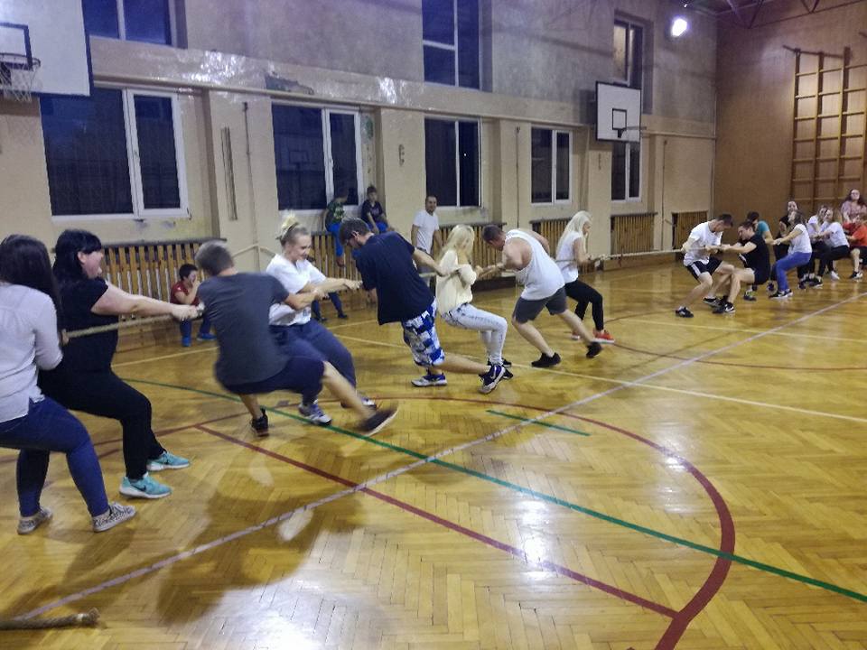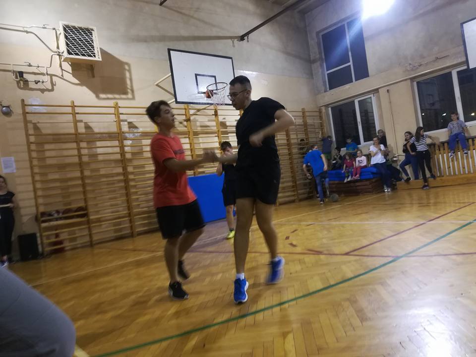 Tradycyjnie było to spotkanie towarzysko – sportowe. Rozpoczęliśmy od rozgrzewki poprowadzonej przez Łukasza z klasy 2 B T.
