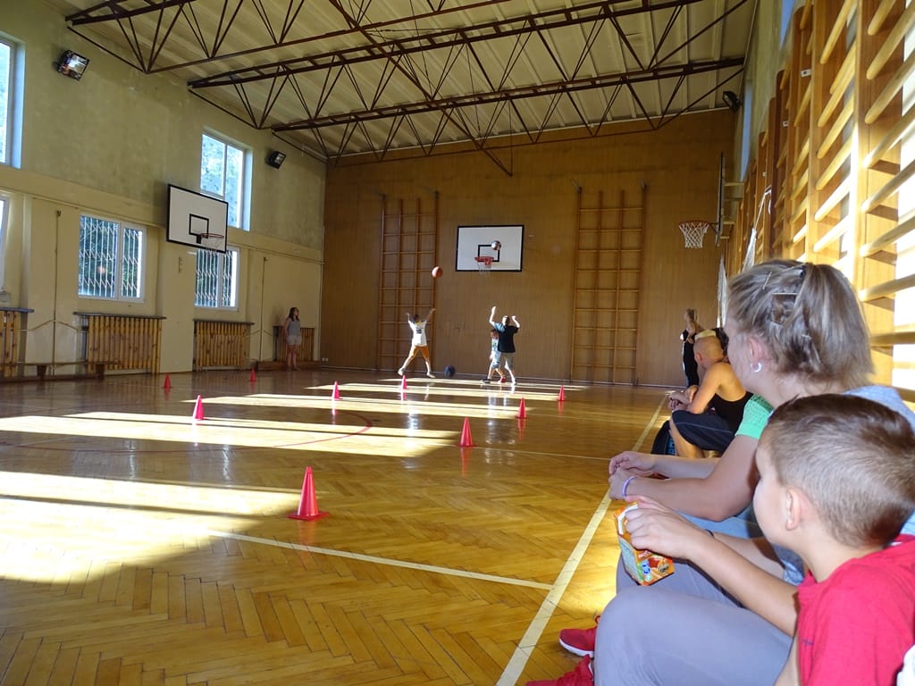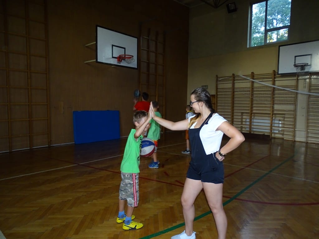 Zatem zaczęło się… Najpierw wyścigi trzech drużyn w workach. Potem tory przeszkód. Slalomy z rzutami od kosza. Treningi z piłką nożną i koszykową. Wreszcie, kulminacyjny punkt spotkania. Mecz chłopców z Ośrodka z naszymi wolontariuszami. Wszyscy bardzo zaangażowani i skupieni, pot na parkiecie, zażarty doping publiczności. I oto, ku zaskoczeniu wszystkich, chłopcy wygrywają! Radości nie było końca. W nagrodę, wszyscy, i zwycięzcy, i pokonani częstują się ogromną pizzą.
