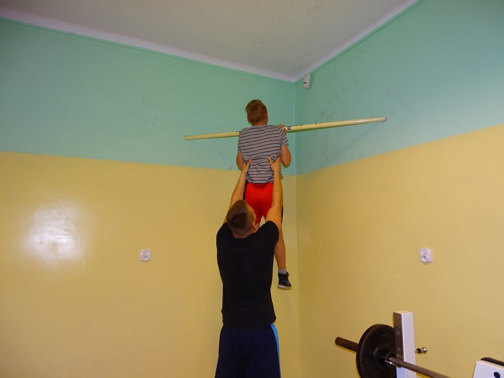 Ostatnim elementem spotkania był trening w szkolnej siłowni. Chłopcy byli zachwyceni możliwością poćwiczenia na profesjonalnym sprzęcie siłowym, pod troskliwym okiem swoich starszych kolegów z KCEZ.