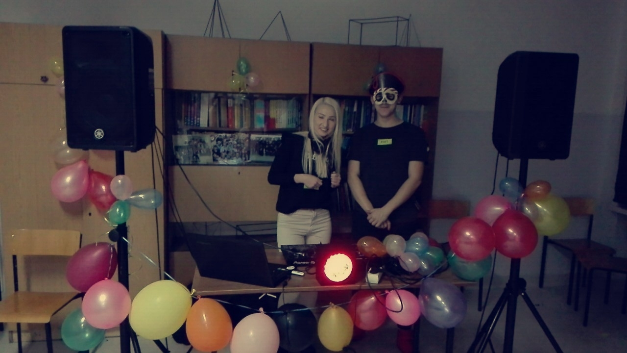 Spotkanie rozpoczęliśmy od rozgrzewki poprowadzonej przez Mateusza przy piosence Despacito. Główną atrakcją wieczoru był „Taniec z gwiazdami”. Całą oprawę muzyczną przygotowała super ekipa z klasy 2 B T: Piotr, Adam, Sebastian.