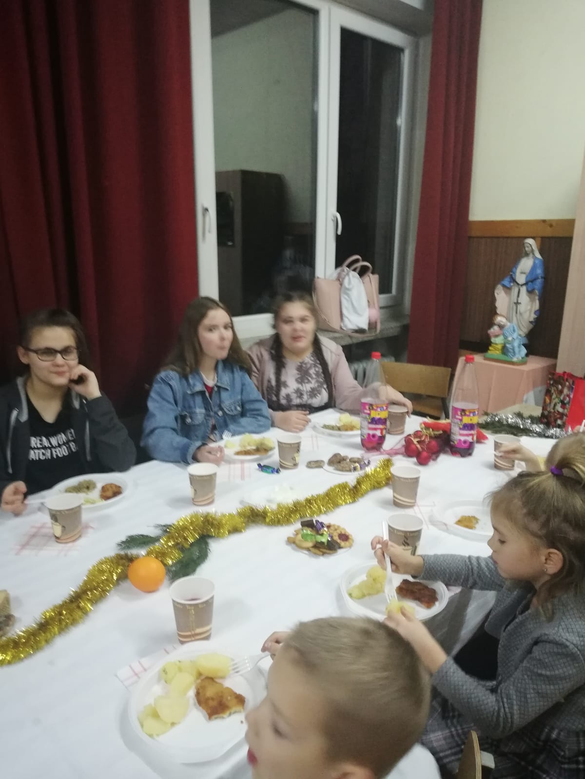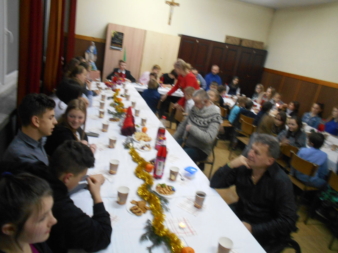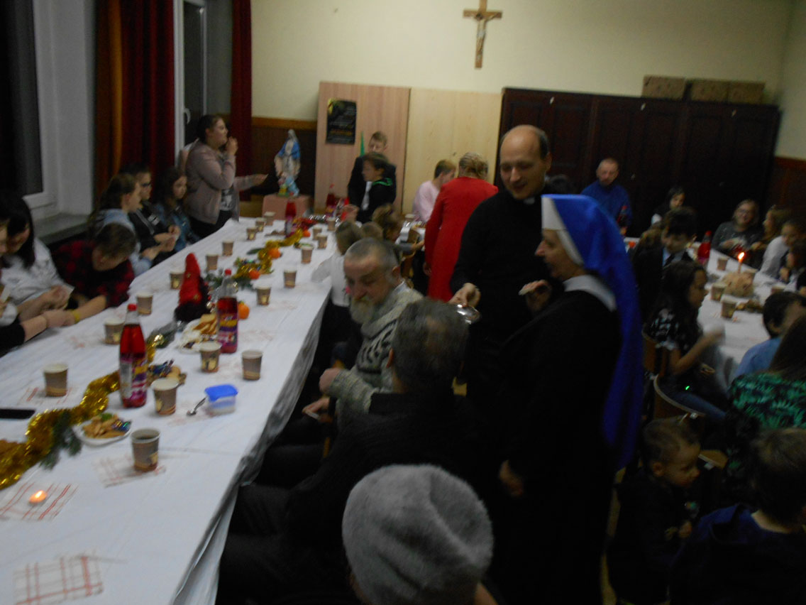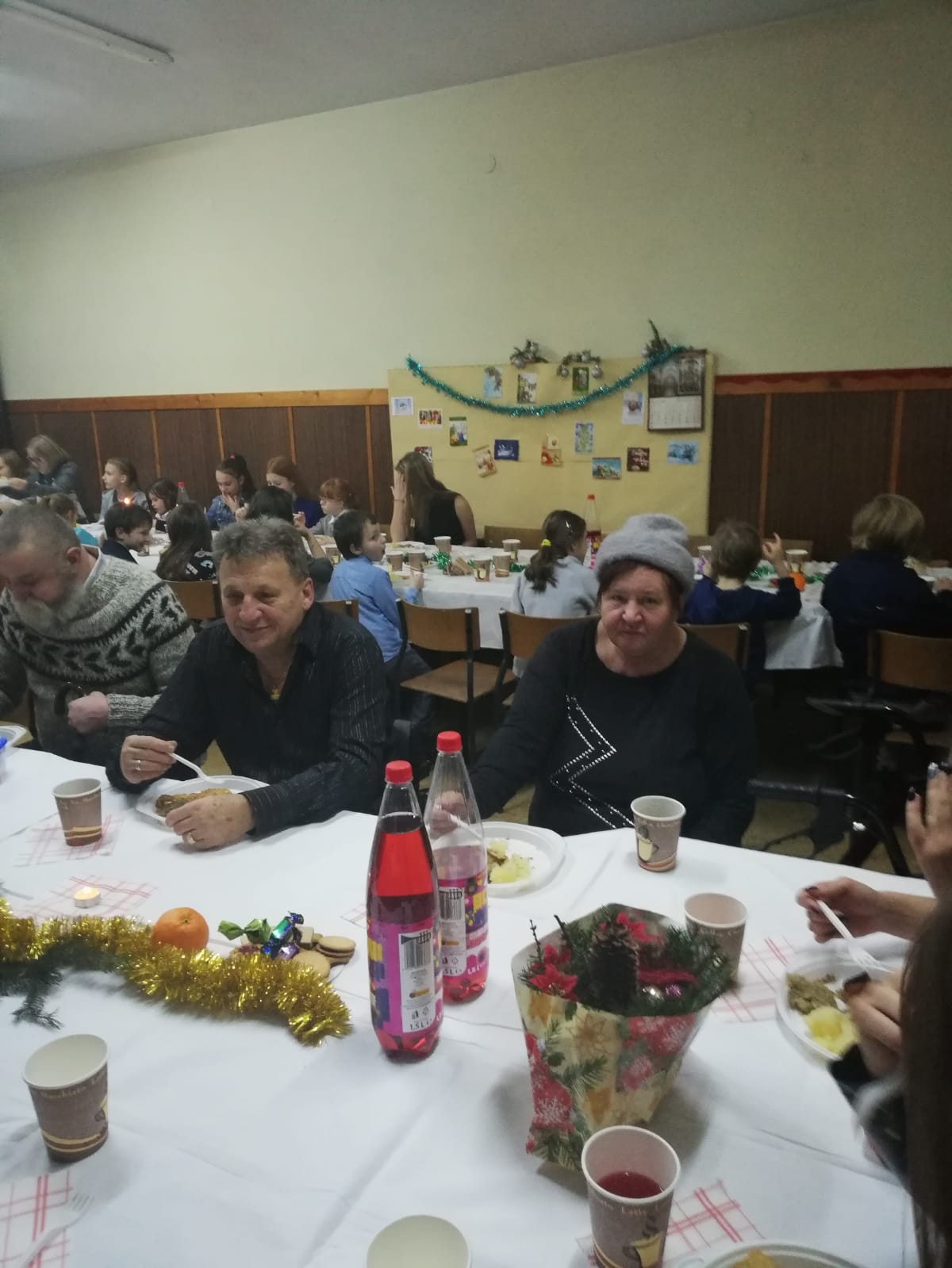 Świąteczny czas to magiczny czas pełen radości i miłości. 20 grudnia 2018 r. jak co roku w parafii św. Antoniego w Dąbrówce Małej przygotowane było spotkanie Wigilijne dla dzieci - a tym razem były zaproszone również osoby niepełnosprawne. Był także obecny ksiądz wikariusz oraz siostra zakonna (z dziećmi z Ośrodka). Wolontariusze przygotowali salkę, stoły i dekorację, aby stworzyć świąteczną atmosferę. Ksiądz proboszcz parafii św. Antoniego poprowadził modlitwę nawiązującą do tradycji Wigilijnej po której odbyło się dzielenie opłatkiem. Z zaprzyjaźnionej restauracji dostarczone były produkty składające się na Wigilijny posiłek – królowała ryba i kapusta oraz ziemniaki. Na stołach znalazły się także słodycze i pomarańcze. Po posiłku przyszedł czas na kolędy a na zakończenie uroczystości dzieci otrzymały świąteczne paczki.