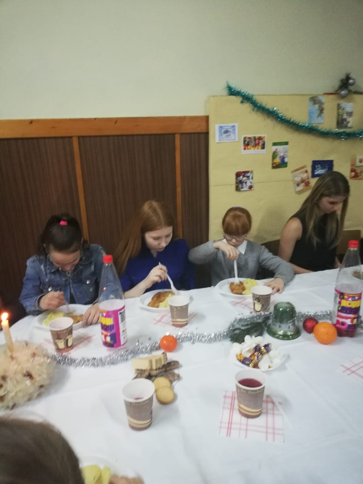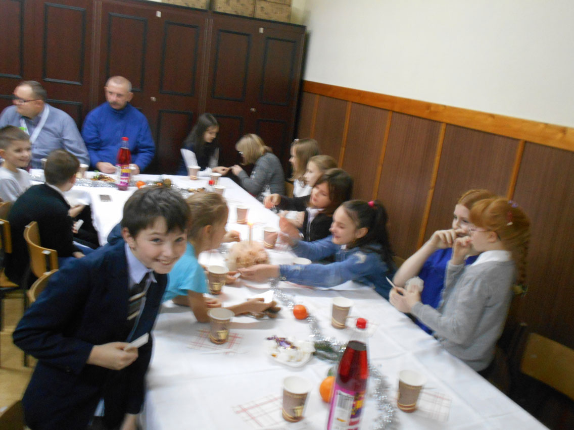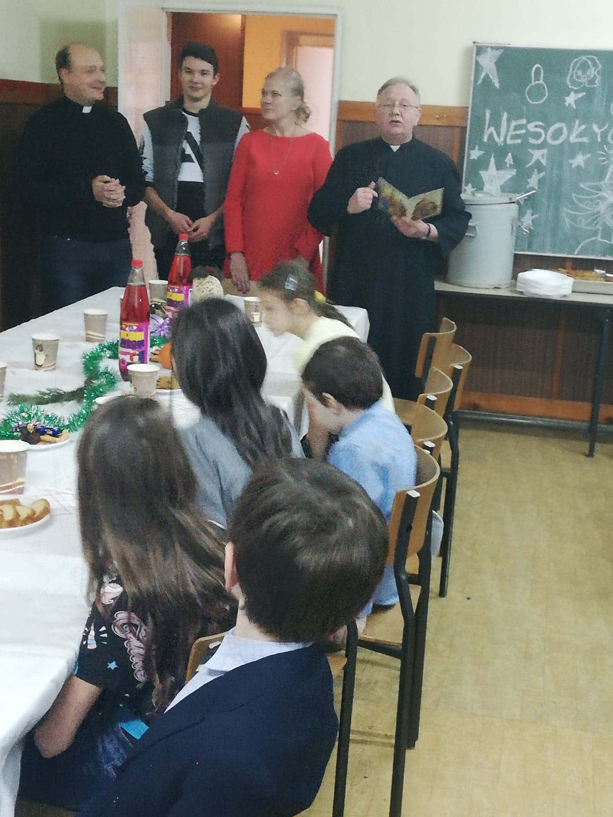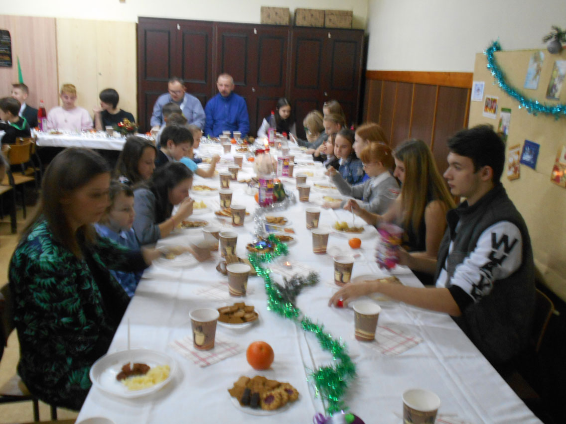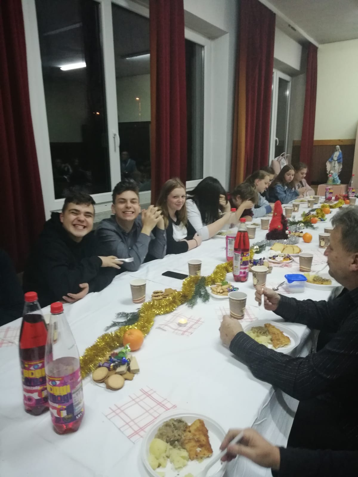 Świąteczny czas to magiczny czas pełen radości i miłości. 20 grudnia 2018 r. jak co roku w parafii św. Antoniego w Dąbrówce Małej przygotowane było spotkanie Wigilijne dla dzieci - a tym razem były zaproszone również osoby niepełnosprawne. Był także obecny ksiądz wikariusz oraz siostra zakonna (z dziećmi z Ośrodka). Wolontariusze przygotowali salkę, stoły i dekorację, aby stworzyć świąteczną atmosferę. Ksiądz proboszcz parafii św. Antoniego poprowadził modlitwę nawiązującą do tradycji Wigilijnej po której odbyło się dzielenie opłatkiem. Z zaprzyjaźnionej restauracji dostarczone były produkty składające się na Wigilijny posiłek – królowała ryba i kapusta oraz ziemniaki. Na stołach znalazły się także słodycze i pomarańcze. Po posiłku przyszedł czas na kolędy a na zakończenie uroczystości dzieci otrzymały świąteczne paczki.