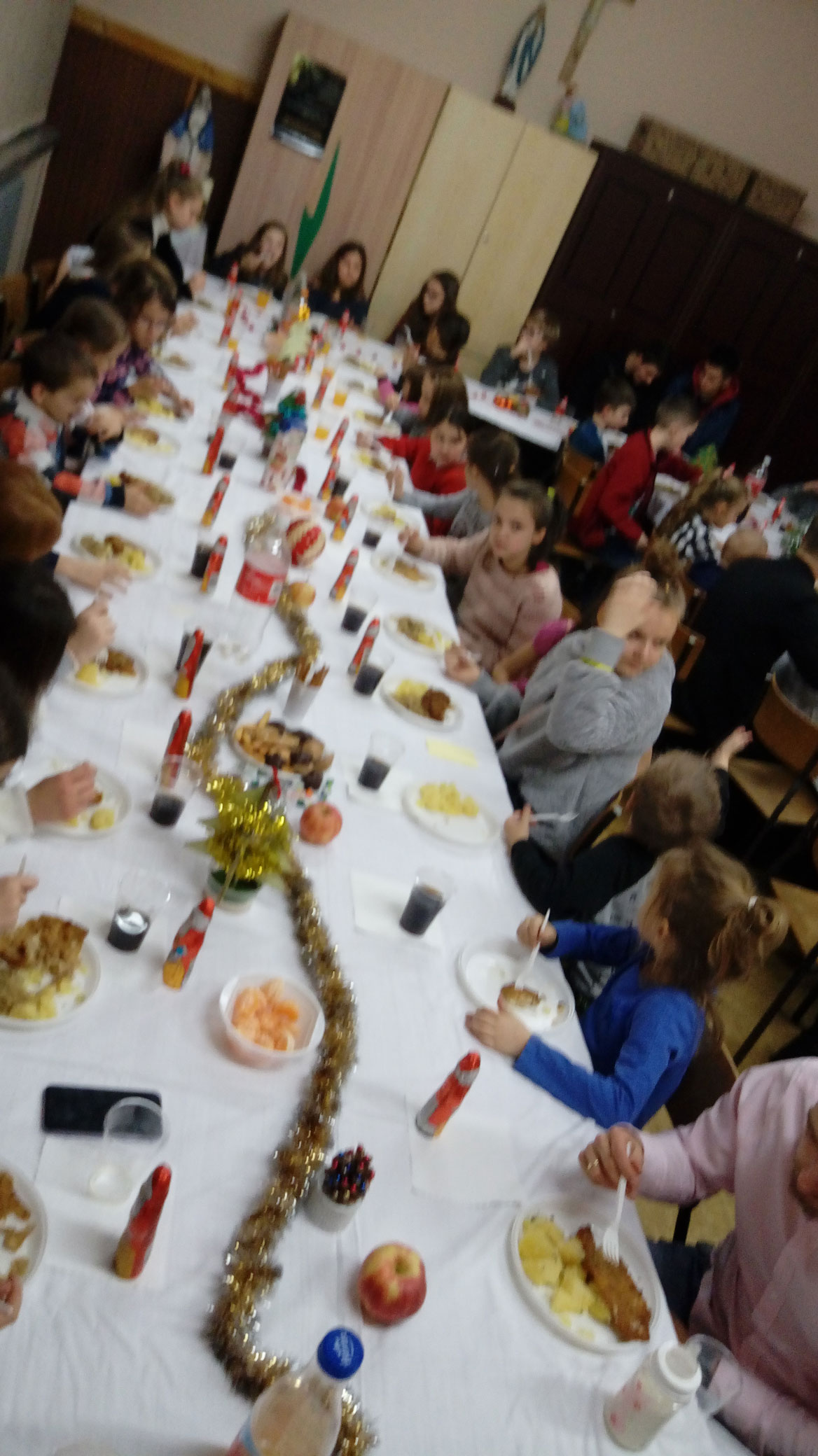 20 grudnia 2019 r. jak co roku uczniowie z Katowickiego Centrum Edukacji Zawodowej wraz z nauczycielami właczyli się w przygotowania i organizację Wigilii dla dzieci z parafii św. Antoniego oraz Ośrodka Szkolno – Wychowawczego w Dąbrówce Małej.