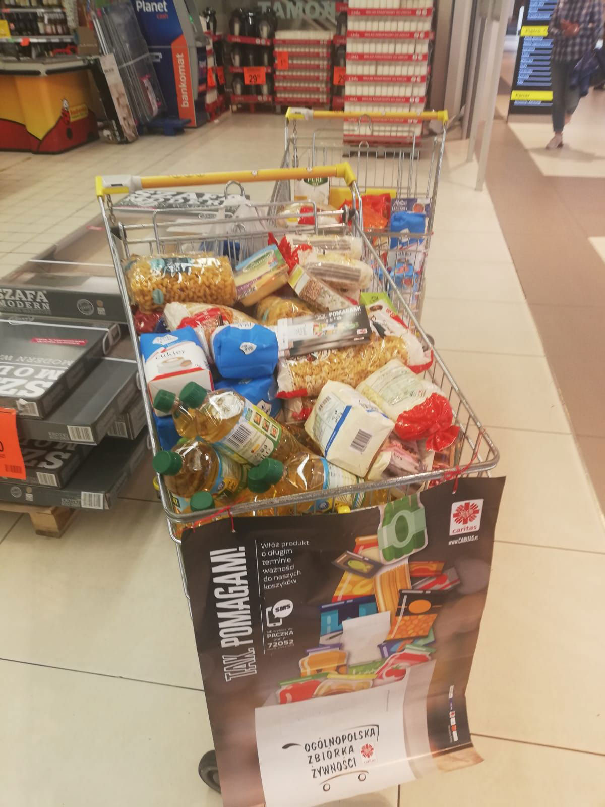 Tradycyjnie nasza szkoła włączyła się do tej akcji przeprowadzając zbiórkę w supermarkecie Carrefour. Ze względu na sytuację pandemiczną tym razem brali w niej udział tylko nauczyciele. W koszach Caritas znalazły się mleko, mąka, cukier, makaron, ryż, konserwy, kawa, słodycze… Zebrane artykuły zostały przekazane potrzebującym w postaci paczek.