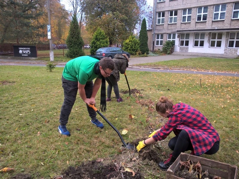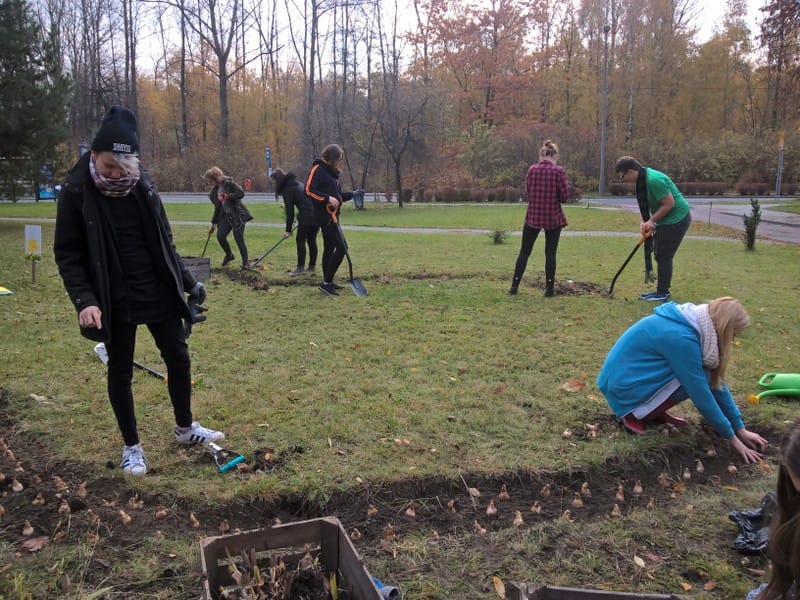 W ramach akcji posadziliśmy 100 cebulek narcyzów przed naszą szkołą. Czekamy na wiosnę – wtedy pola zakwitną.