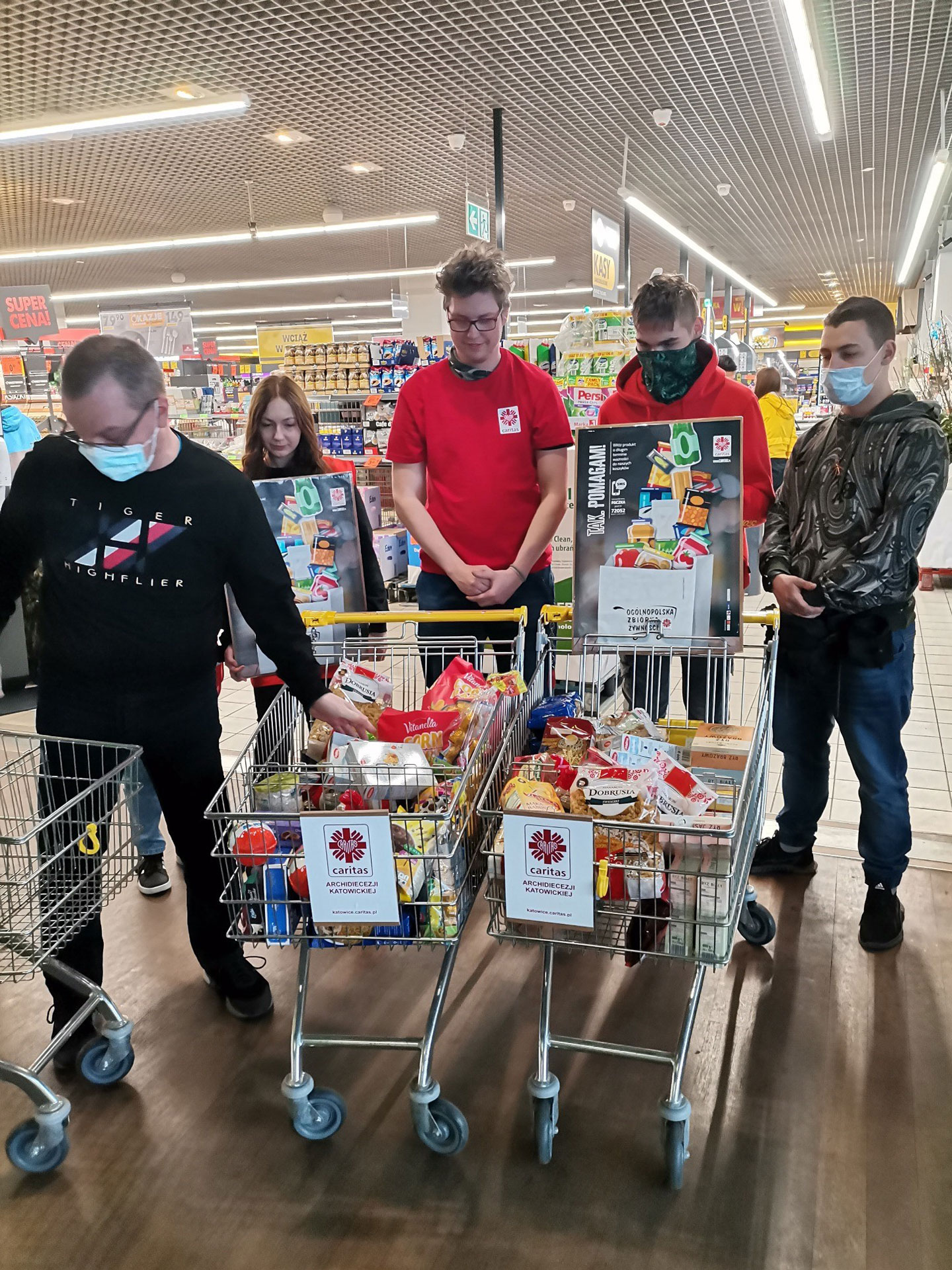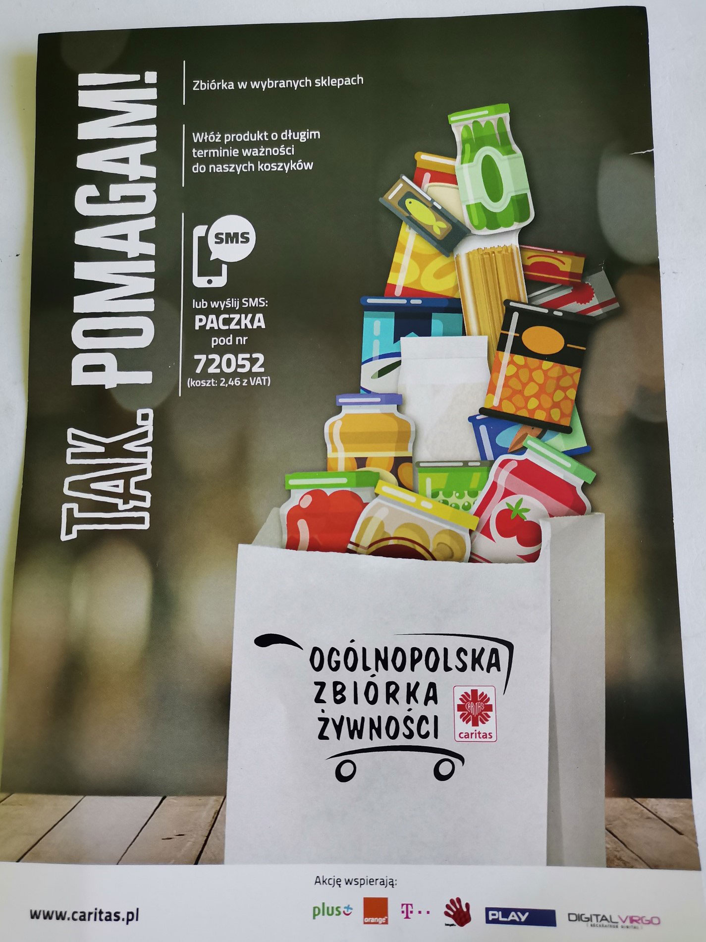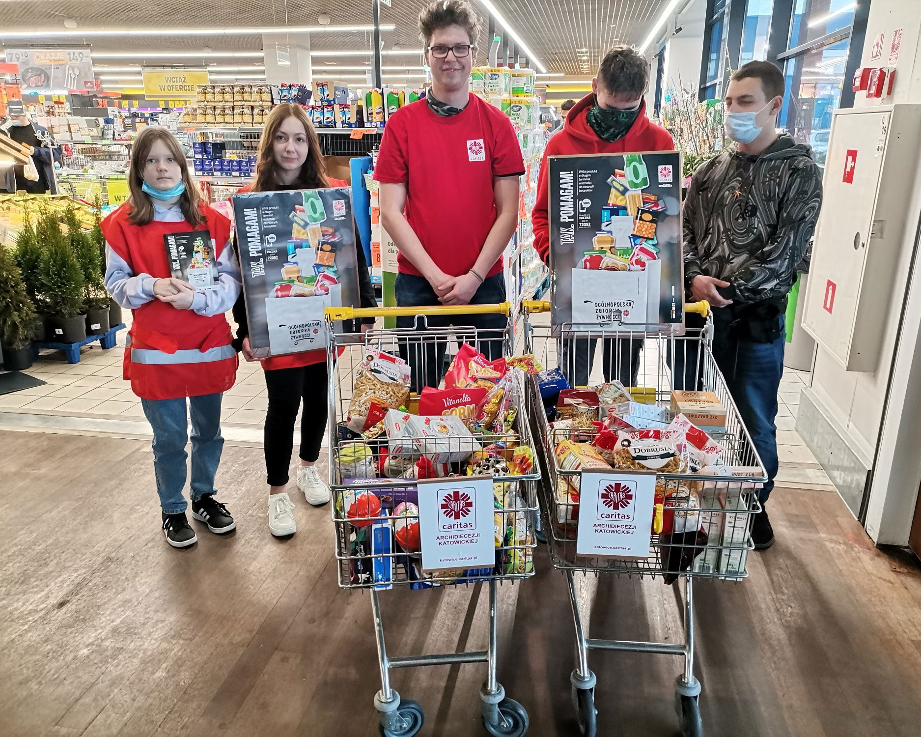 Tradycyjnie już nasza szkoła KCEZ włączyła się w ogólnopolską akcję Caritas „Tak pomagam”. W dniach 25 i 26 marca 2022 r została przeprowadzona zbiórka żywności w 2 dyskontach Biedronki leżących na terenie Dąbrówki Małej. W akcji wzięli udział nauczyciele oraz uczniowie: Dagmara z kl. 4 B, Wiktoria i Kamil z kl. 1 Ap, Mateusz, Kamil i Szymon z 3 ap BS1S a także uczniowie z Zespołu Szkolno - Przedszkolnego nr 3. Zebraliśmy prawie 264 kg produktów, którymi zostały obdarowane osoby znajdujące się w trudnej sytuacji materialnej z parafii św. Antoniego w Dąbrówce Małej.
