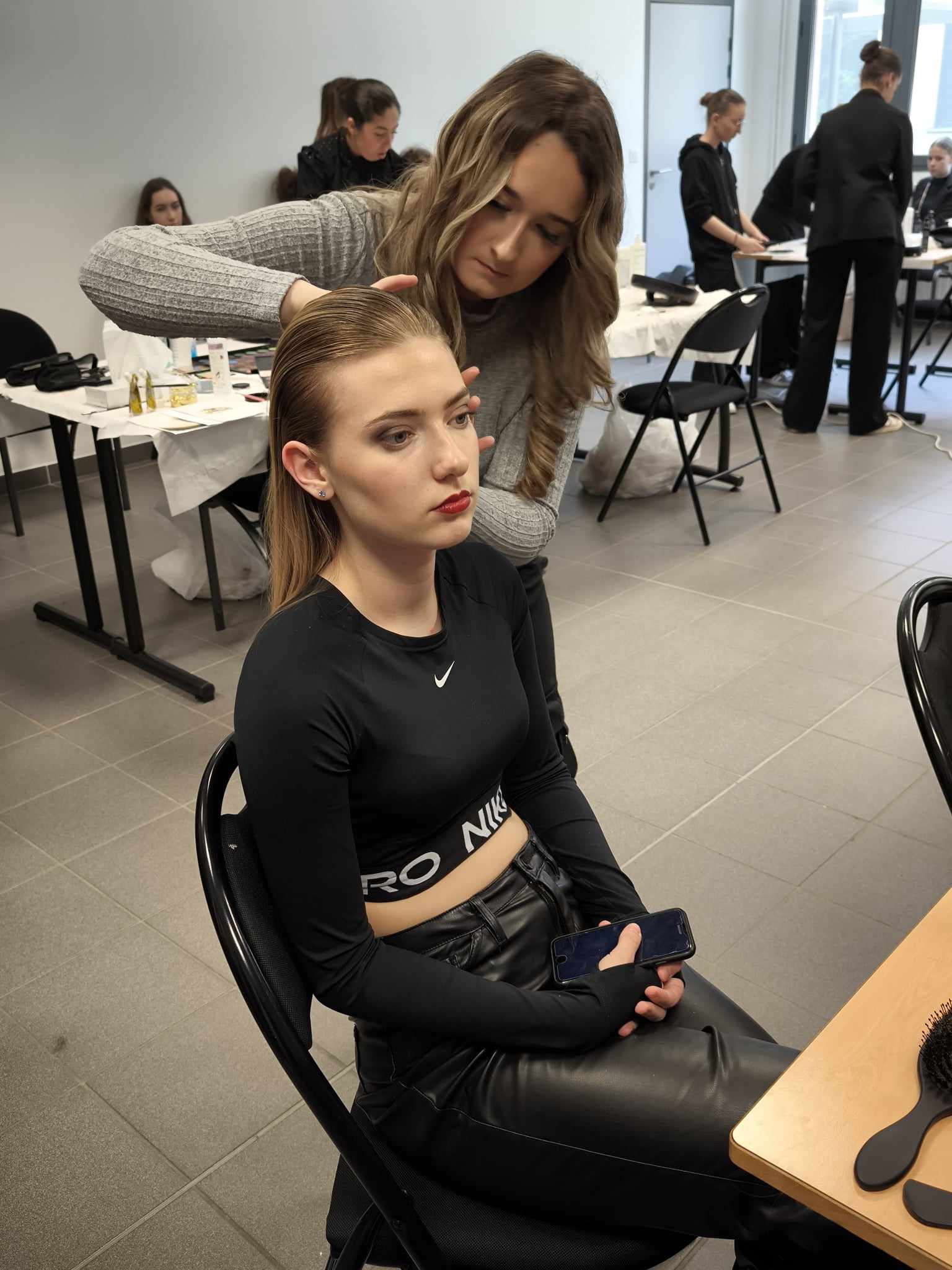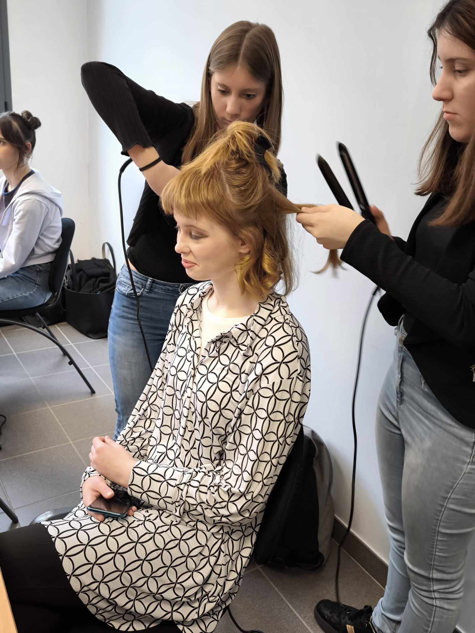 W kolejnych dniach naszej wizyty w Saint Etienne trwały przygotowania do pokazów mody: próby makijażu, fryzur i choreografii. Uwieńczeniem był 30 Jubileuszowy pokaz RETROSPEKTIVE na którym mogliśmy zaprezentować prace wykonane przez naszych uczniów. Nasze kreacje zostały stworzone w myśl upcyklingu z modeli wykonanych na przełomie 30 lat w Liceum Adrien-Testud. W ramach współpracy międzynarodowej, każde państwo miało do dyspozycji ten sam zestaw ubrań i dodatków do stworzenia modeli.