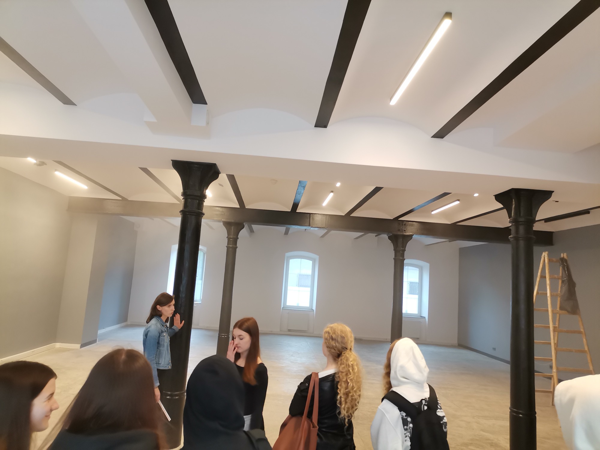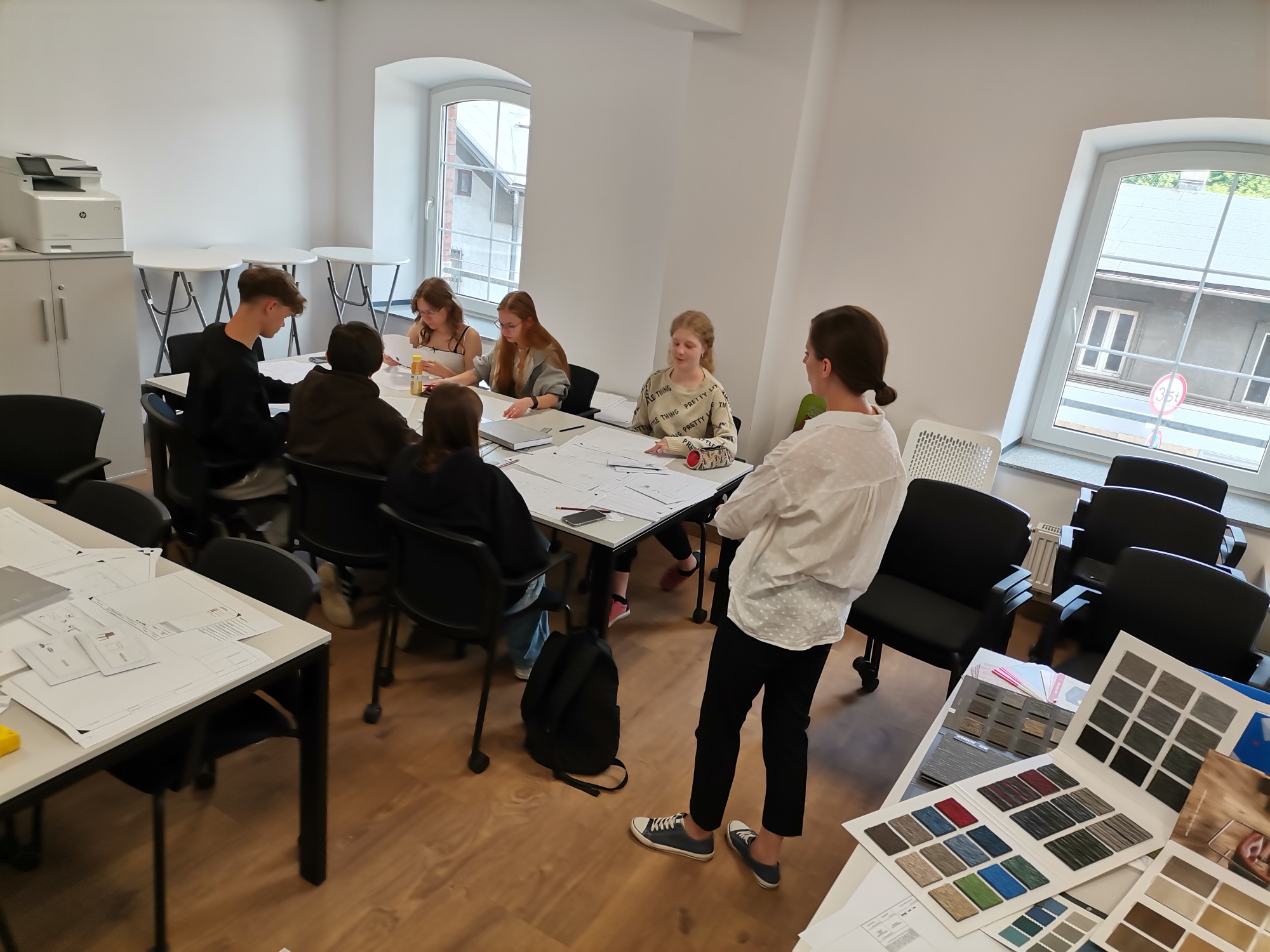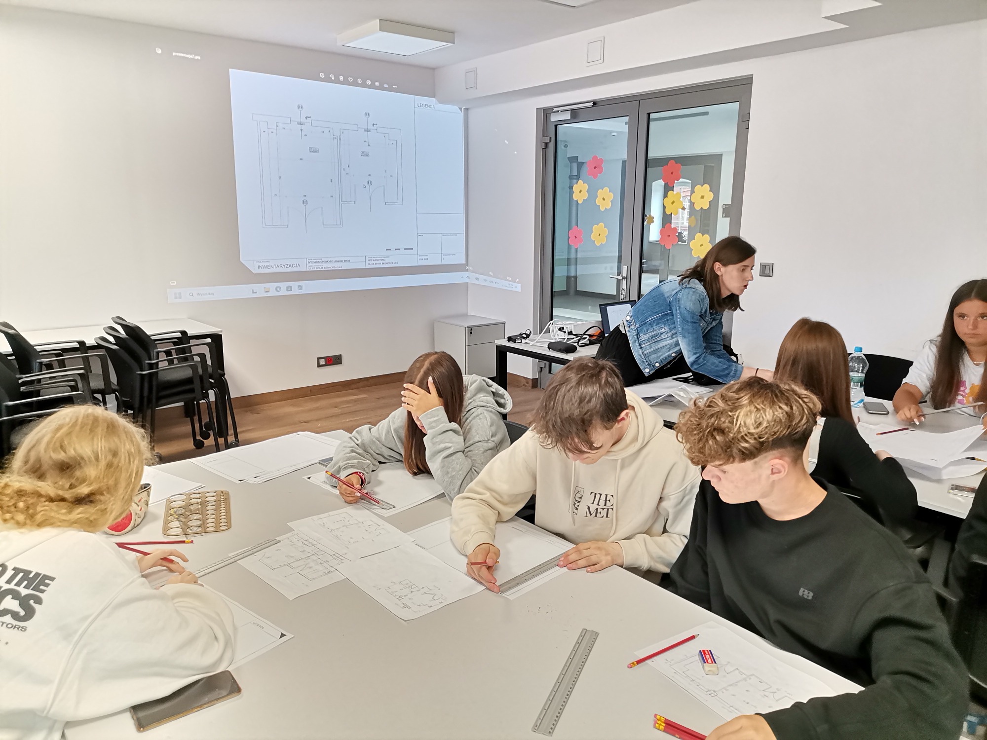 3 i 5 czerwca 2024 r. uczennice i uczniowie klasy 1 Fp z grupy techników architektury wnętrz uczestniczyła w warsztatach w Browarze Mokrskich w Katowicach – Szopienicach. (Szlak wcześniej został już przetarty przez klasę 1 Ep TAW). W pierwszej części spotkania p. Martyna - architekt wnętrz - oprowadziła młodzież po terenie Browaru opowiadając o historii tego miejsca, o funkcjach poszczególnych budynków wcześniej i obecnie, o przeprowadzanych pracach rewitalizacyjnych i konserwatorskich. Młodzież miała możliwość zapoznania się z remontem jednej z kamienic i zakresem przeprowadzanych tam prac. Była też możliwość zobaczenia różnych zachowanych detali współgrających z obecnymi wymaganiami technicznymi i funkcjonalnymi w udostępnianych najemcom pomieszczeniach. W kolejnej części spotkania młodzież przygotowała inwentaryzację pomieszczenia - salki gimnastycznej oraz dwóch sąsiadujących ze sobą pomieszczeń, które docelowo można połączyć. Po przeprowadzeniu pomiarów pomieszczeń uczniowie wykonali projekt instalacji i przystąpili do wykonania projektu aranżacji wnętrza. Mogli skorzystać z różnych przygotowanych katalogów. Ta część zajęć okazała się znacznie ciekawsza i przyjemniejsza niż początkowe pomiary inwentaryzacyjne. Na zakończenie warsztatów młodzież prezentowała swoje prace z omówieniem swoim, jak i pani Martyny. Uzyskane informacje, jak i wskazówki na pewno przyczynią się do lepszego zrozumienia zawodu architekta wnętrz.