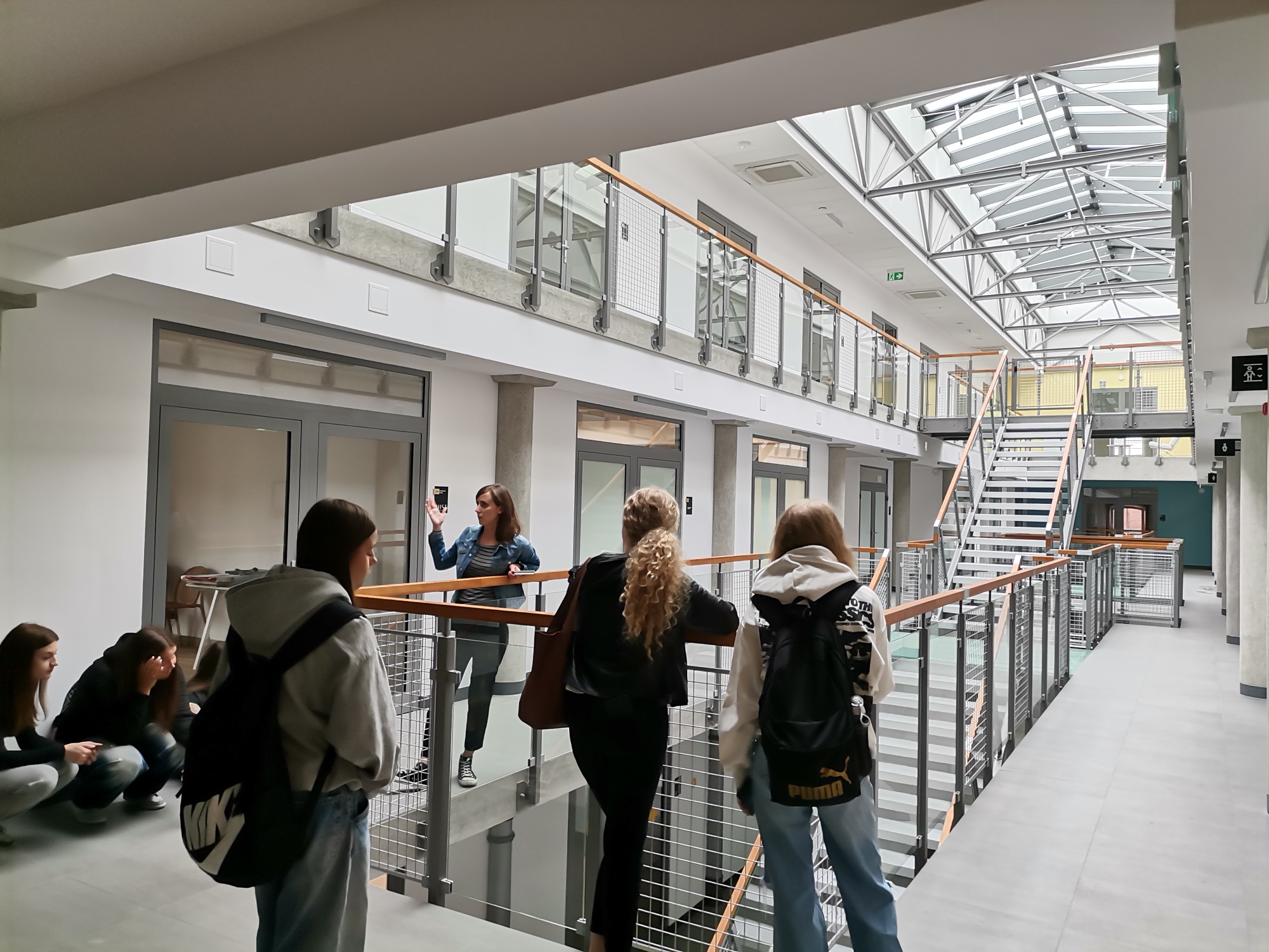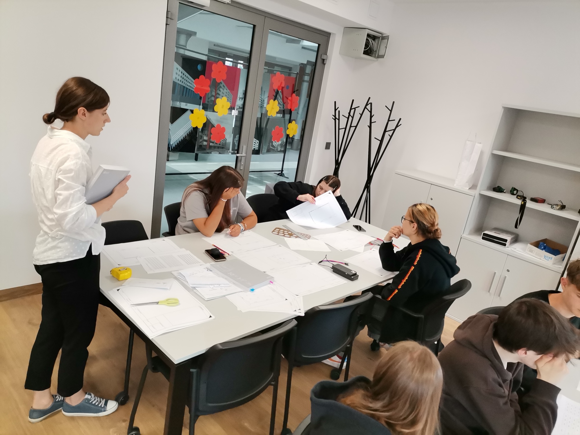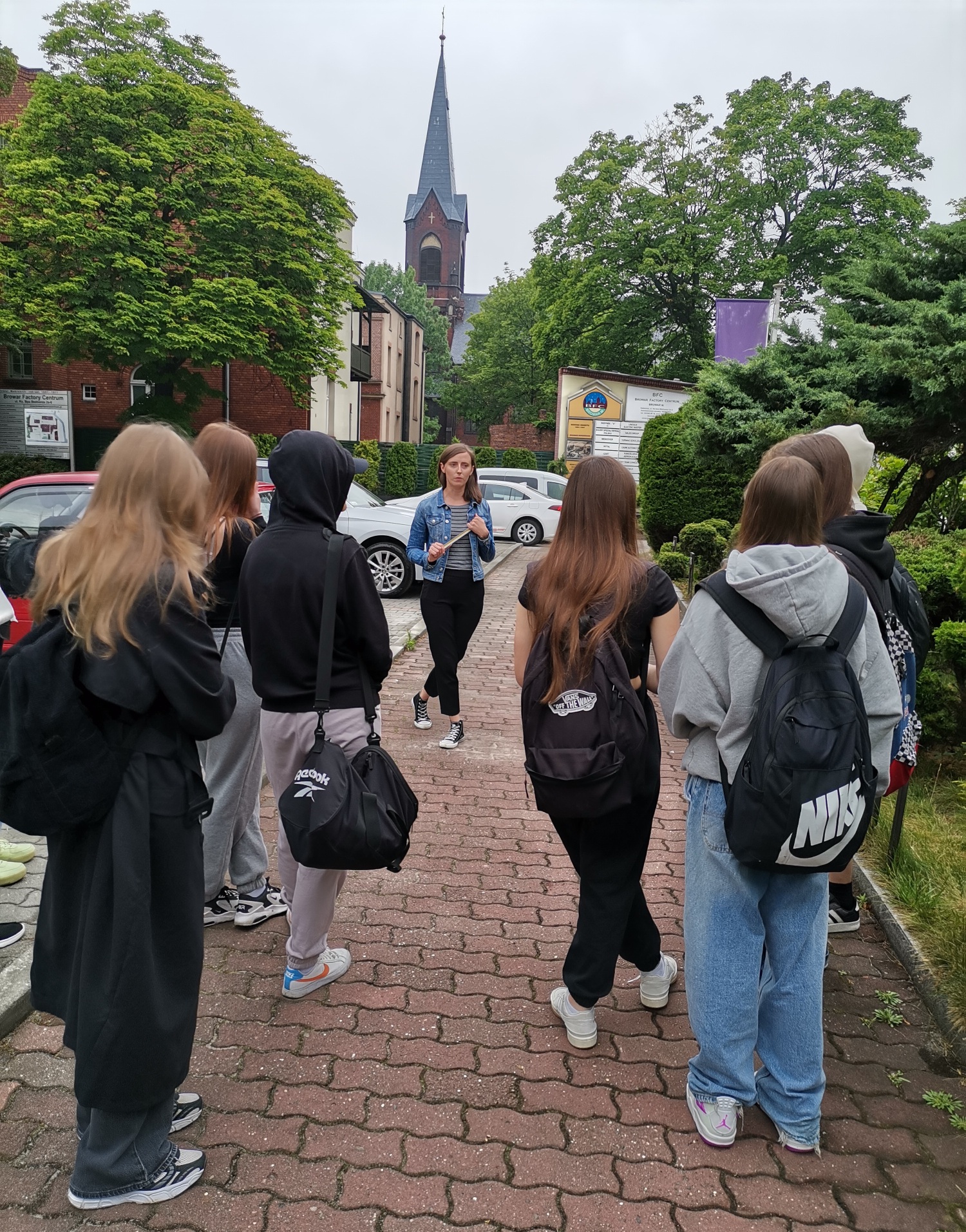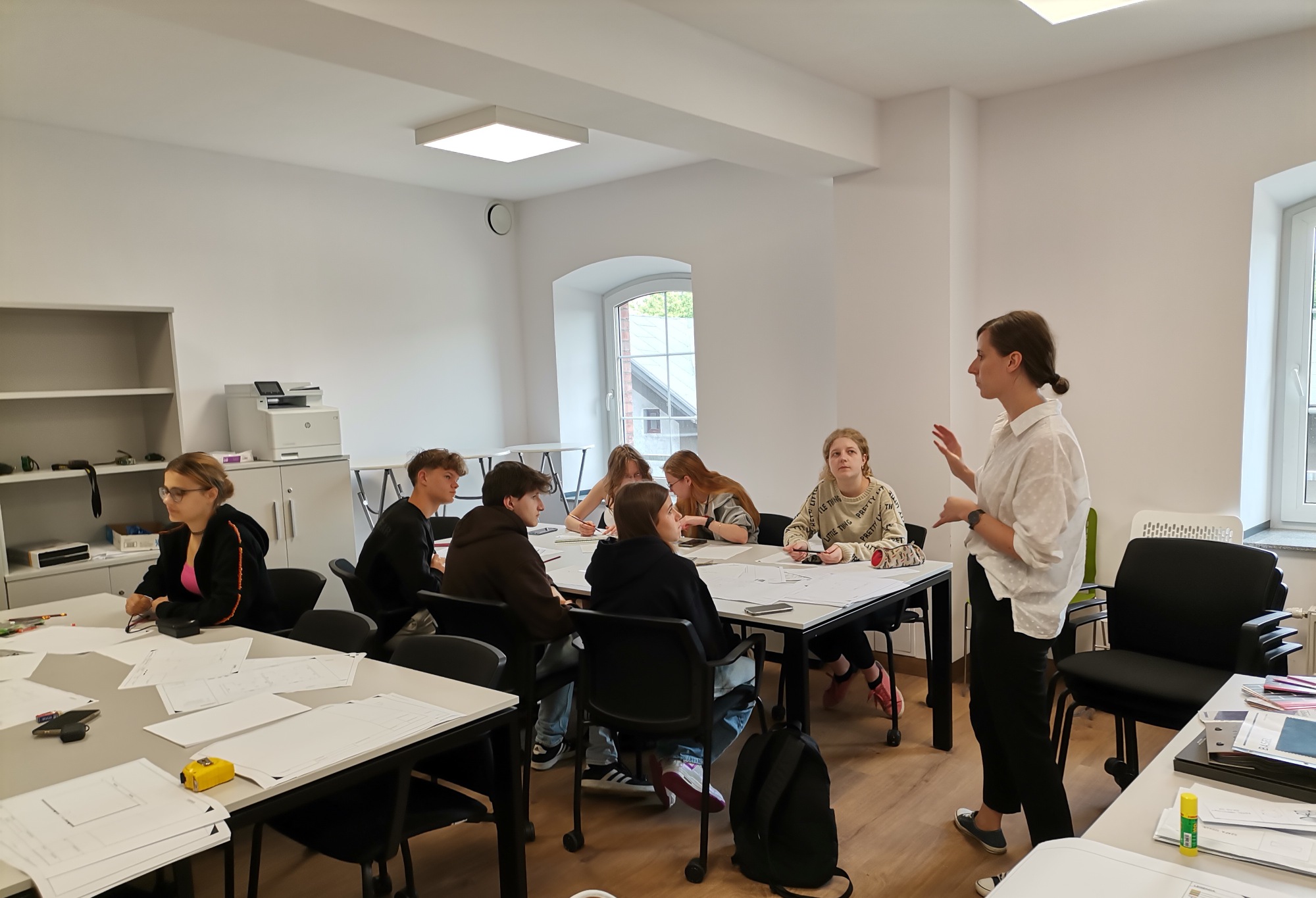 3 i 5 czerwca 2024 r. uczennice i uczniowie klasy 1 Fp z grupy techników architektury wnętrz uczestniczyła w warsztatach w Browarze Mokrskich w Katowicach – Szopienicach. (Szlak wcześniej został już przetarty przez klasę 1 Ep TAW). W pierwszej części spotkania p. Martyna - architekt wnętrz - oprowadziła młodzież po terenie Browaru opowiadając o historii tego miejsca, o funkcjach poszczególnych budynków wcześniej i obecnie, o przeprowadzanych pracach rewitalizacyjnych i konserwatorskich. Młodzież miała możliwość zapoznania się z remontem jednej z kamienic i zakresem przeprowadzanych tam prac. Była też możliwość zobaczenia różnych zachowanych detali współgrających z obecnymi wymaganiami technicznymi i funkcjonalnymi w udostępnianych najemcom pomieszczeniach. W kolejnej części spotkania młodzież przygotowała inwentaryzację pomieszczenia - salki gimnastycznej oraz dwóch sąsiadujących ze sobą pomieszczeń, które docelowo można połączyć. Po przeprowadzeniu pomiarów pomieszczeń uczniowie wykonali projekt instalacji i przystąpili do wykonania projektu aranżacji wnętrza. Mogli skorzystać z różnych przygotowanych katalogów. Ta część zajęć okazała się znacznie ciekawsza i przyjemniejsza niż początkowe pomiary inwentaryzacyjne. Na zakończenie warsztatów młodzież prezentowała swoje prace z omówieniem swoim, jak i pani Martyny. Uzyskane informacje, jak i wskazówki na pewno przyczynią się do lepszego zrozumienia zawodu architekta wnętrz.