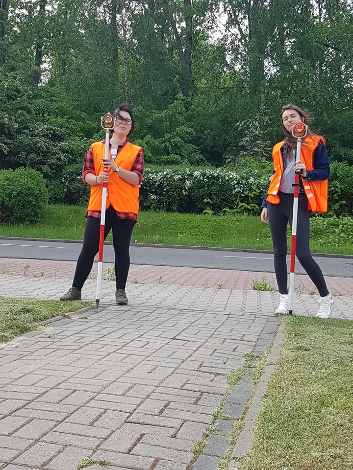Innym razem odwiedziły nas dzieci z przedszkola, dla których w ramach wspólnej zabawy przygotowaliśmy tor przeszkód zbudowany między innymi ze sprzętu geodezyjnego. Maluchy były wniebowzięte.