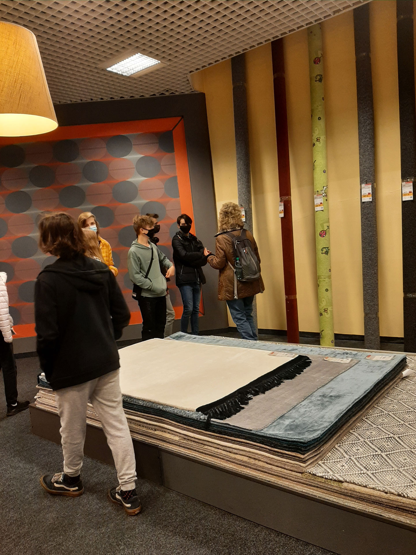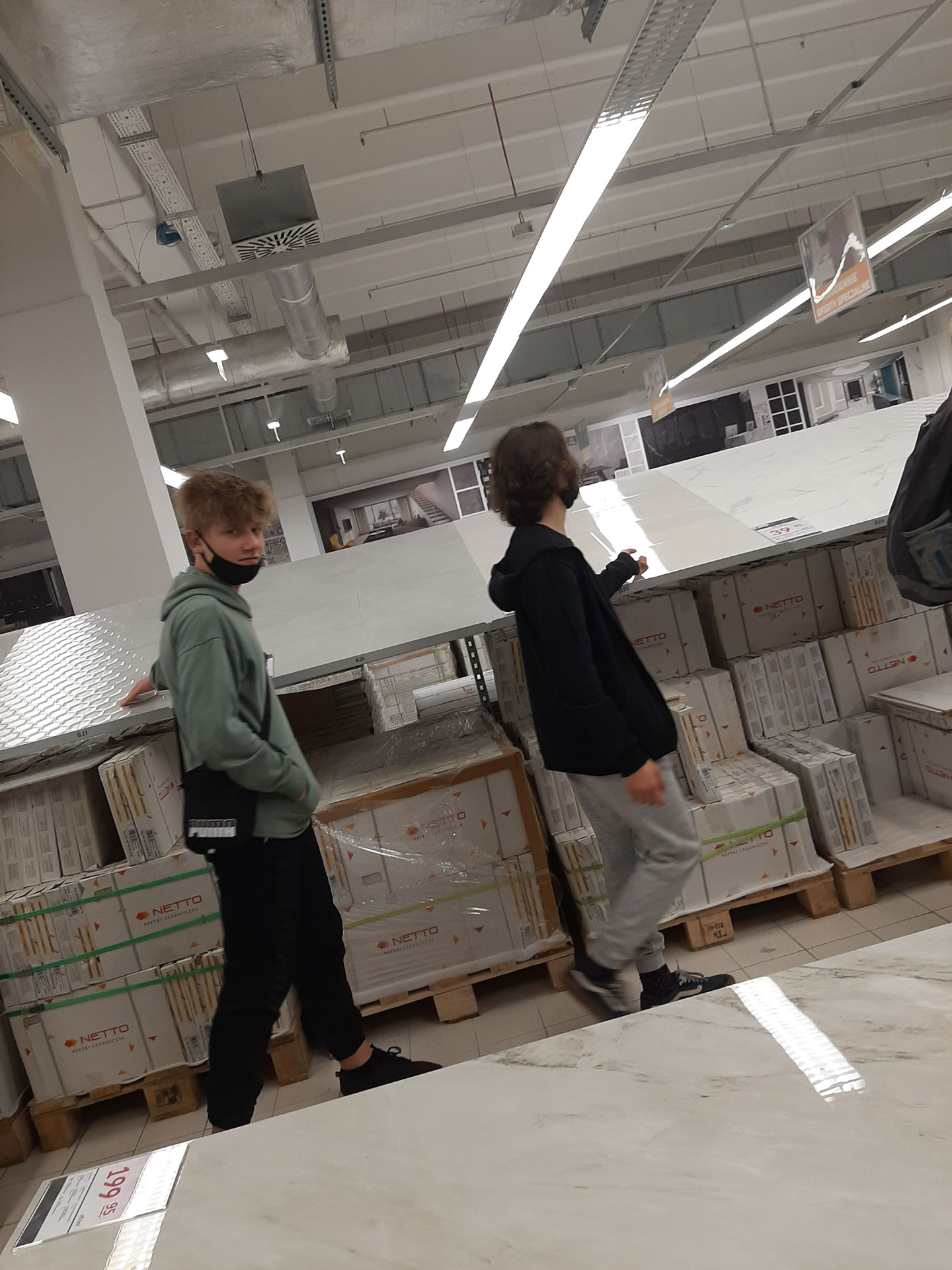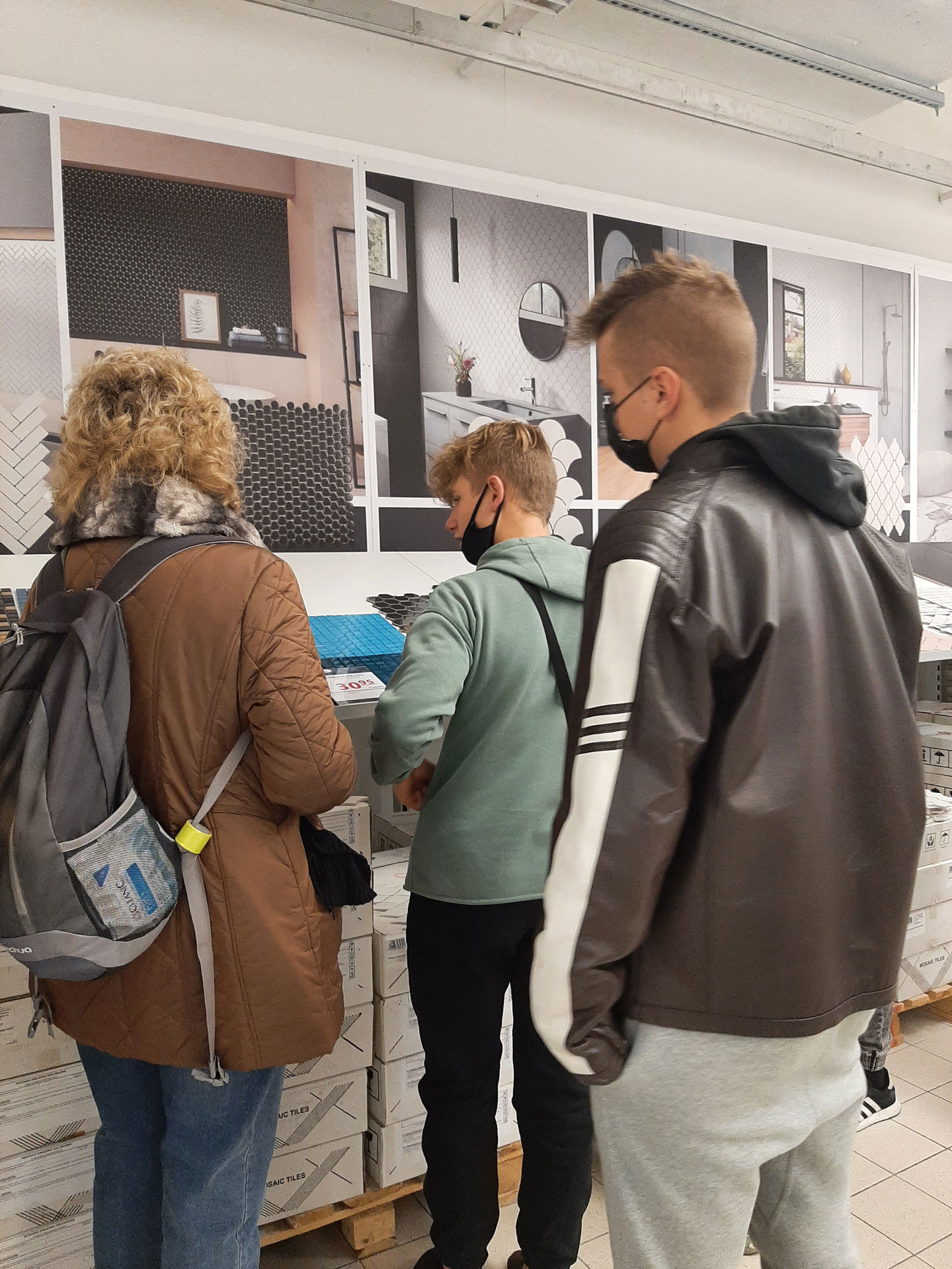 Kontynuując w tym półroczu wyjścia klas budowlanych do marketów budowlanych, również klasa 1 Ap TB uczestniczyła w takim wyjściu, które miało na celu zapoznanie z materiałami wykończeniowymi. W „Cortinie” zlokalizowanej w „Agacie” (od ponad 30 lat oferują najwyższej klasy płytki producentów z całego świata produkowanych tylko i wyłącznie według włoskiej technologii, wzmocnionej niemiecką solidnością i popartą francuską wyobraźnią)  - uczniowie mieli możliwość zaobserwowania różnych rodzajów płytek i płyt ceramicznych łącznie z przykładowym zastosowaniem. Natomiast w sklepie obok poznali różnego rodzaju wykładziny podłogowe, zarówno dywanowe jak i z tworzyw sztucznych. Zainteresowanie wzbudziły także dywany.