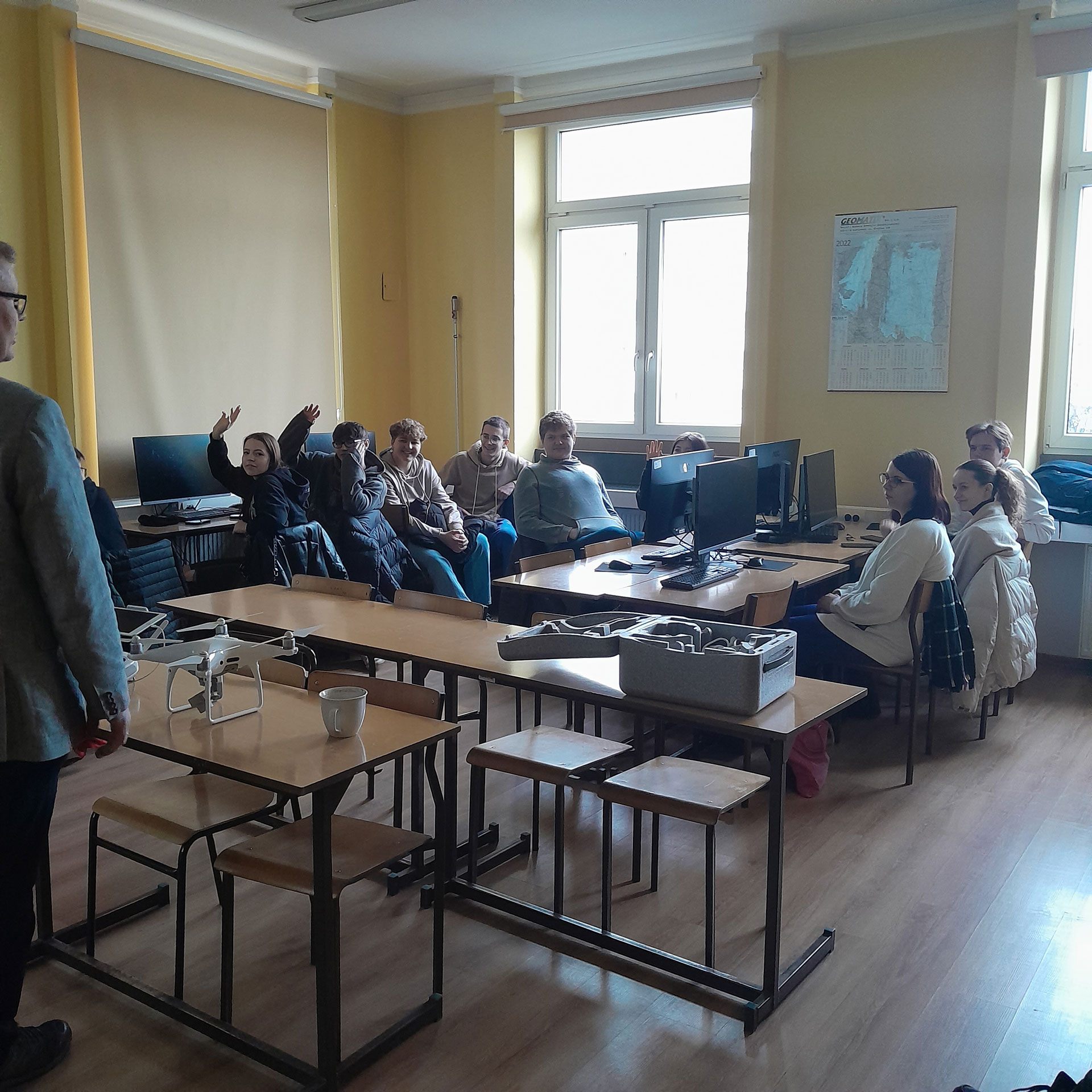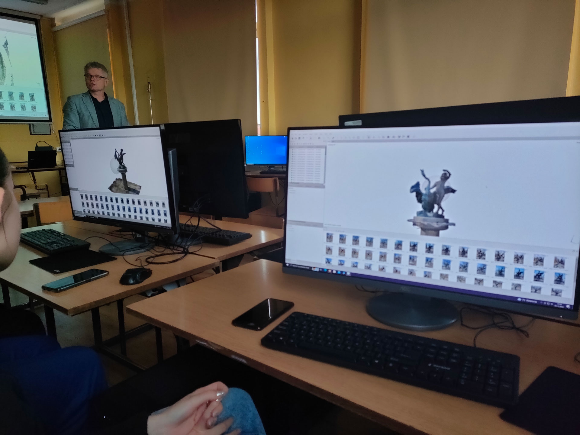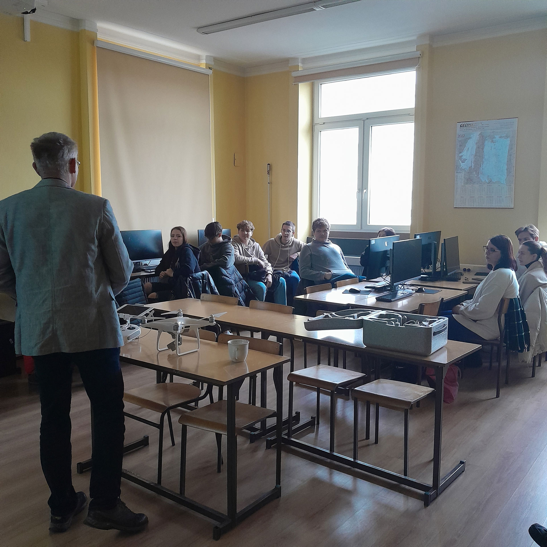Klasa IVA i II Ap w dniu 7.12. uczestniczyły w wykładach i warsztatach w Katedrze Geodezji Wydziału Górnictwa i Geologii. Młodzież wysłuchała wykładów dot. nowoczesnych technik pomiarowych z wykorzystaniem dronów, skanerów i form opracowania. Następnie samodzielnie zmagali się z chmurą pkt otrzymanych w wyniku skaningu fontanny. Próbowali również w pracowni pod okiem dr Macieja Pomykoła stworzyć własny projekt chmury pkt - sprzęt geodezyjny z wykorzystaniem zdjęć wykonanych telefonem.