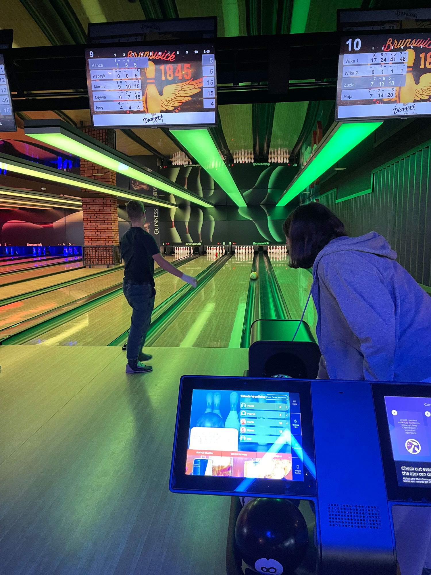 Pełni energii i dobrego humoru uczniowie kl. 2Gp podczas wyjścia integracyjnego. Były kręgle, wizyta w McDonald's oraz spacer do Galerii Artystów zlokalizowanej na placu Grunwaldzkim w Katowicach.