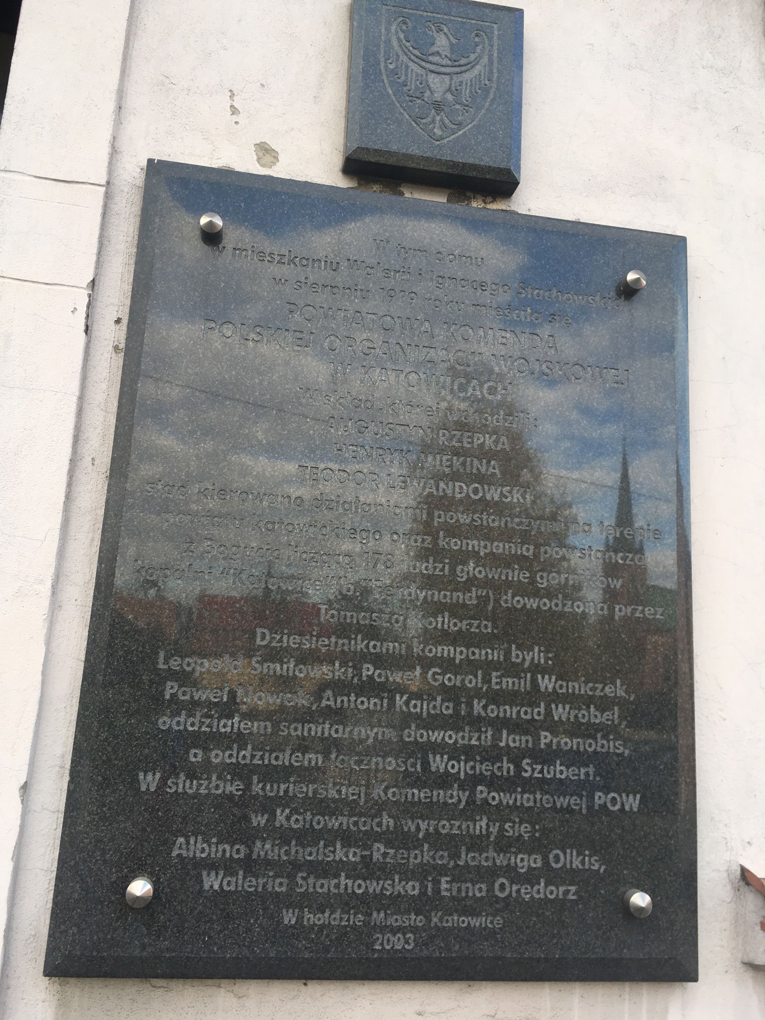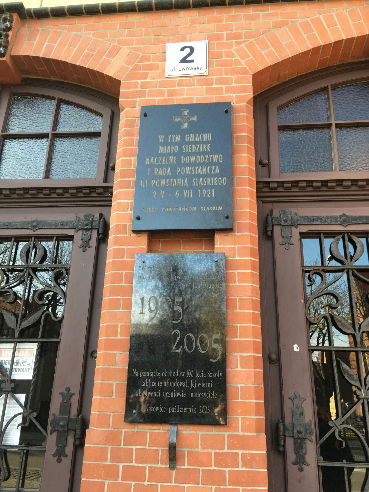 | Katowice | Katowice-Szopienice, ul Lwowska 2, VI Liceum Ogólnokształcące im. Jana Długosza, (ściana frontowa, przy wejściu) | Tablica na budynku, w którym podczas III Powstania Śląskiego mieściła się siedziba Naczelnego Dowództwa i Rady Powstańczej |