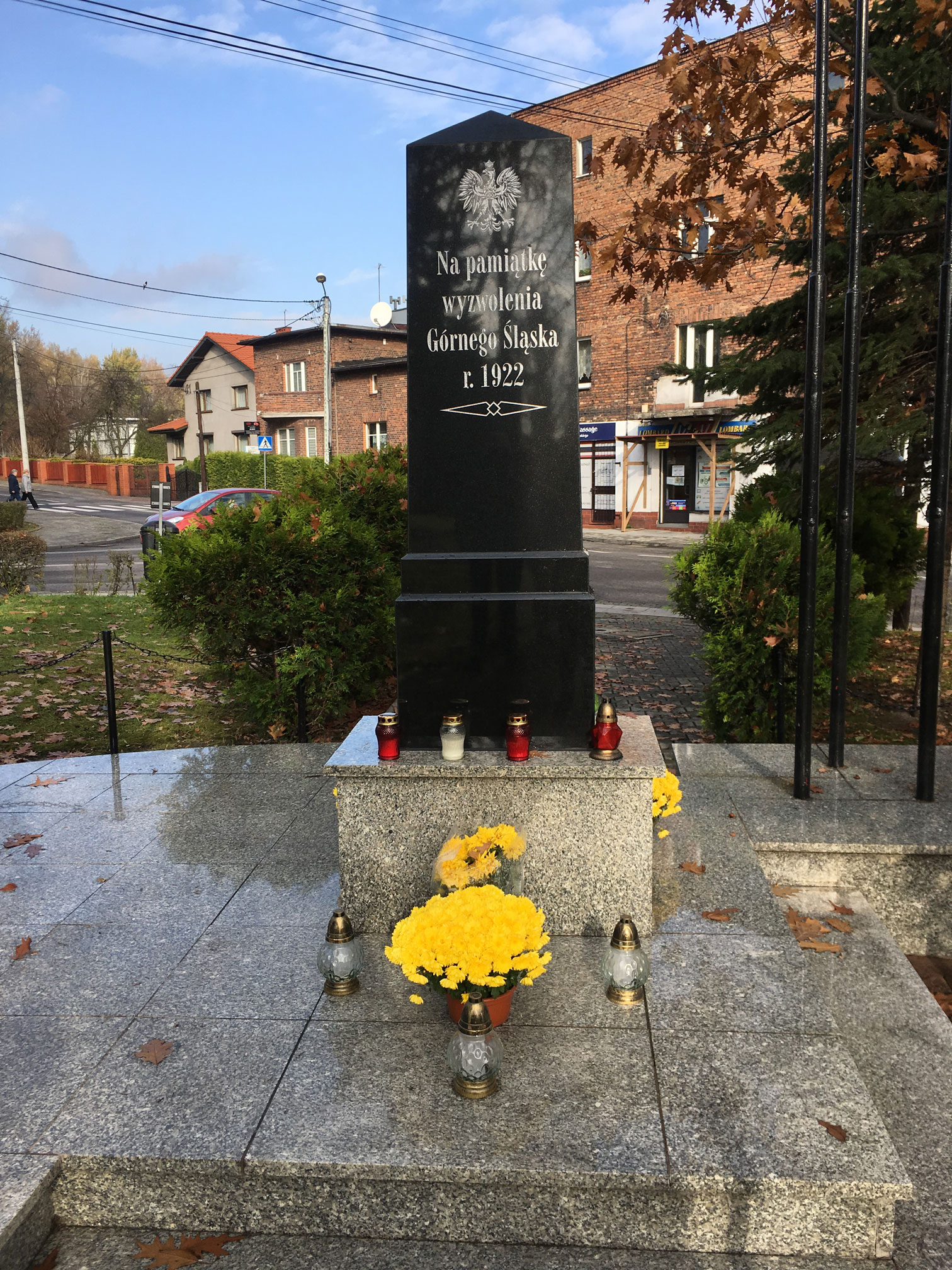 | Katowice | Katowice - Nikiszowiec ul. Zamkowa, skwer (przy Przedszkolu Nr 63). | Pomnik ku czci bohaterów Powstań Śląskich. (w miejscu gdzie od 1922 roku stał także pomnik zburzony przez hitlerowców we wrześniu 1939 roku). Nowy obelisk po II wojnie światowej zlokalizowano na skwerze przy ulicy Zamkowej. |